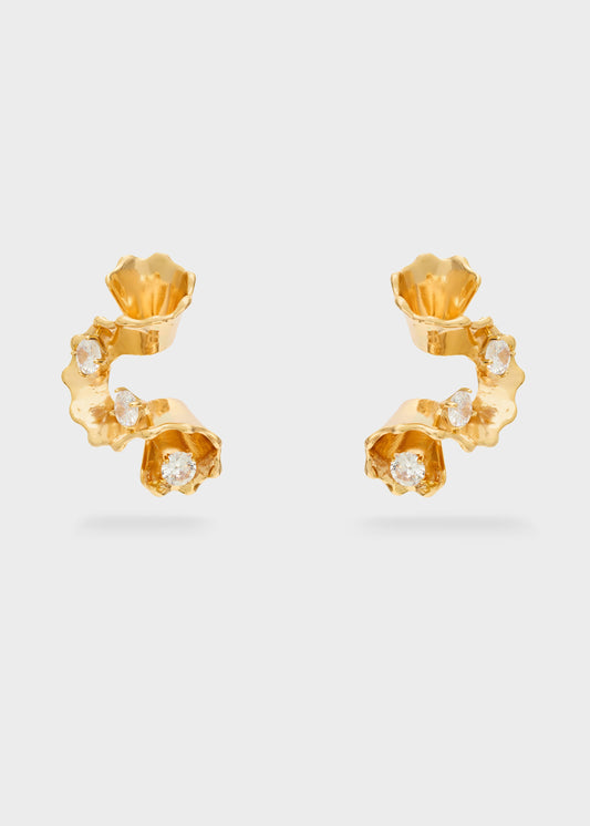 Orecchini half flowers con pietre oro