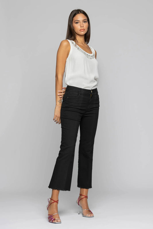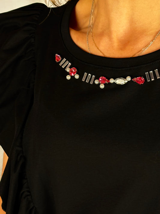 In offertaT-shirt nera con dettagli gioiello sul collo