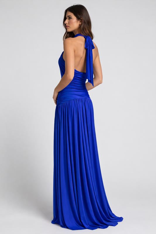 Abito lungo stampato - Annodato dietro al collo