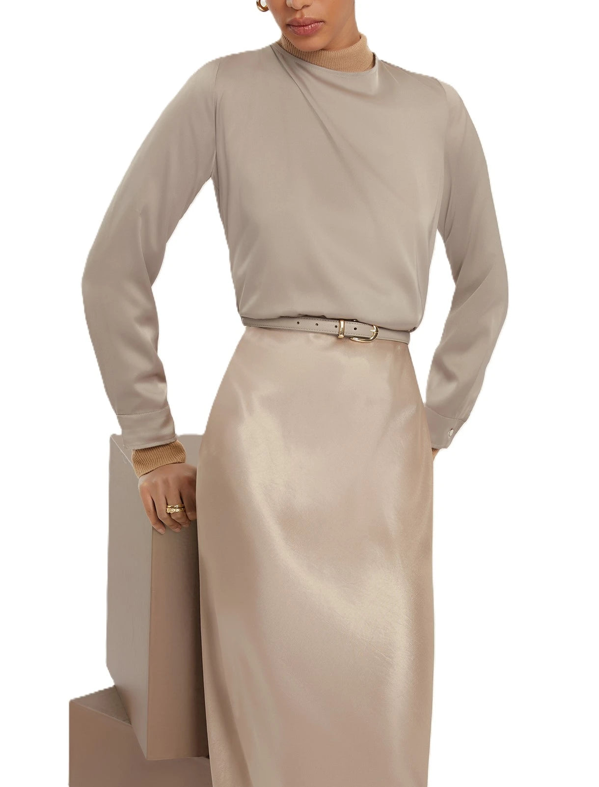 Eleganza essenziale e sofisticata si fondono in questa blusa a manica lunga, un capo pensato per aggiungere un tocco di lusso discreto a ogni outfit.