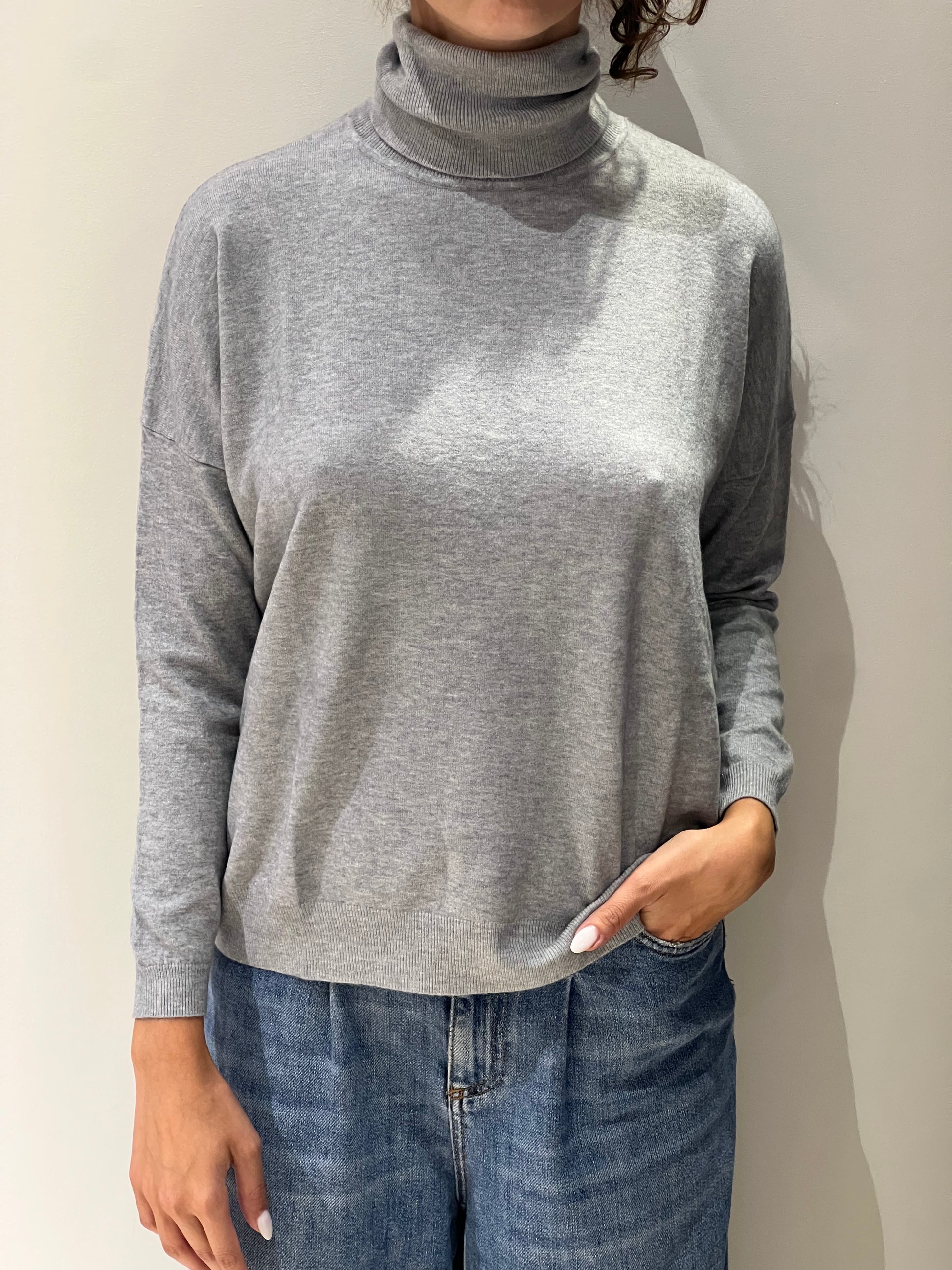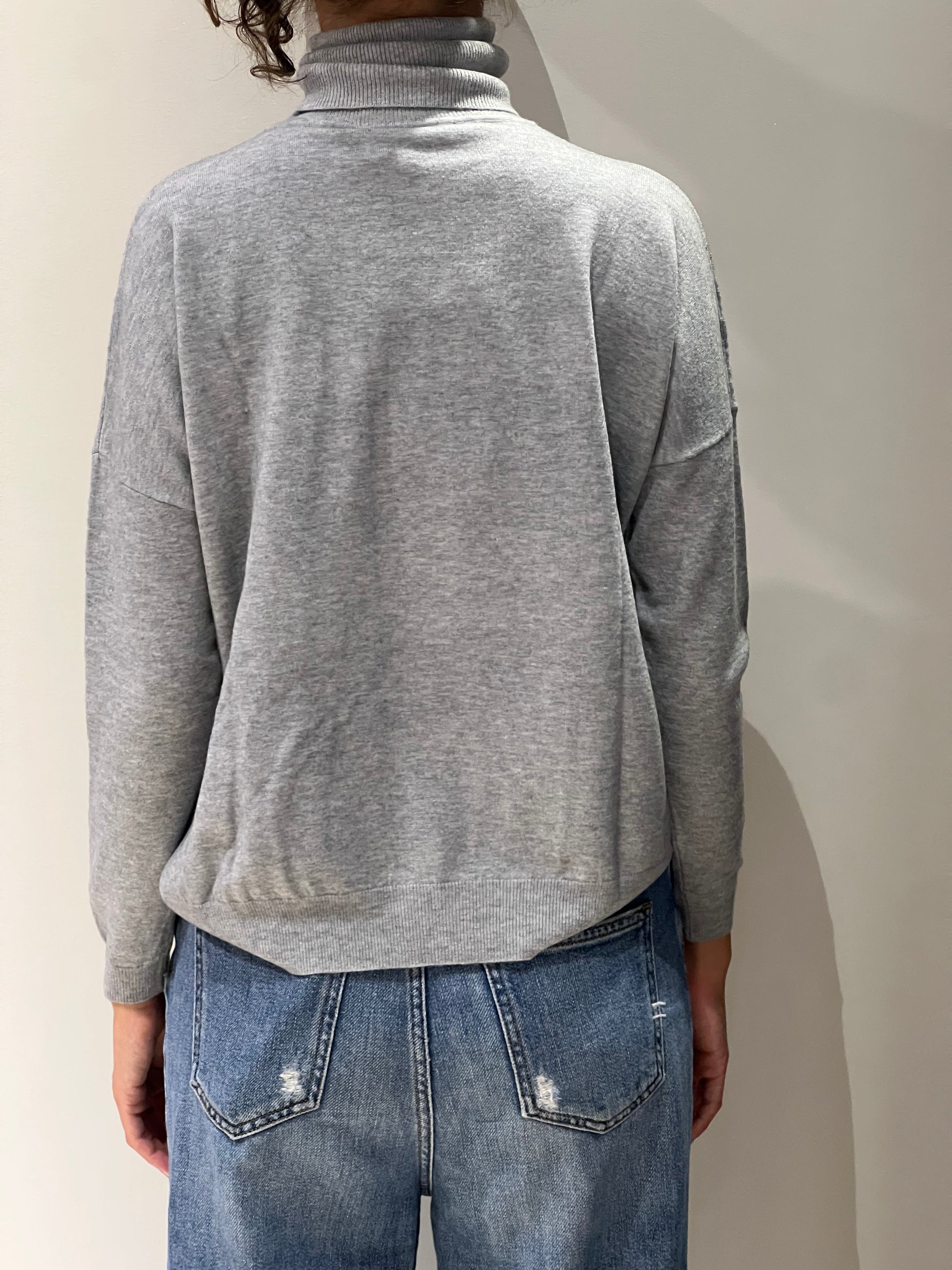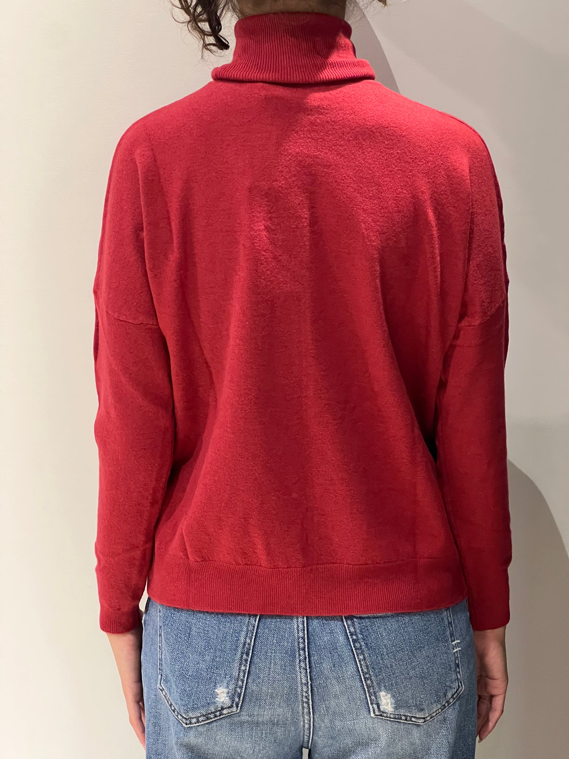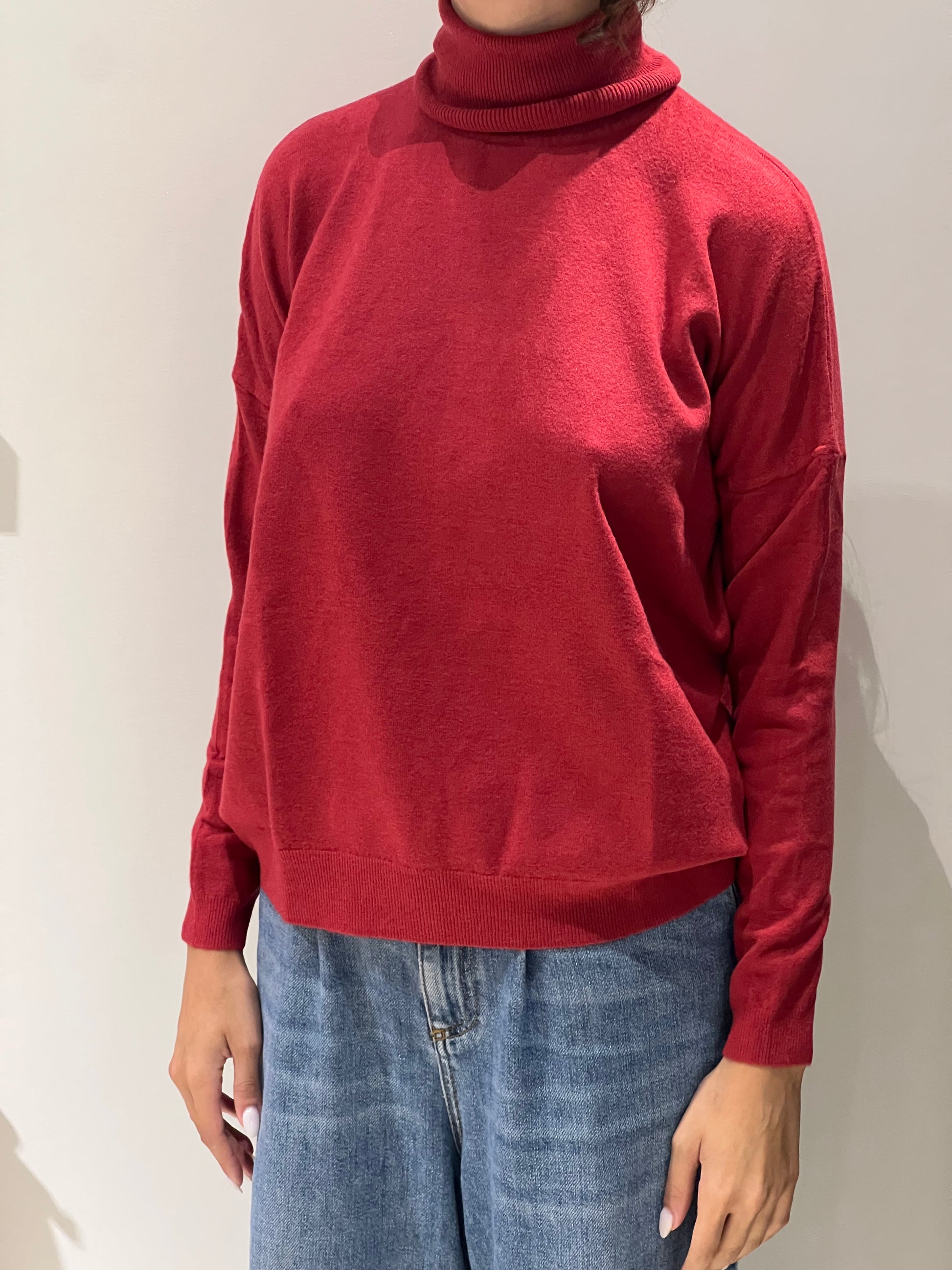 Dolcevita oversize rosso e grigio.