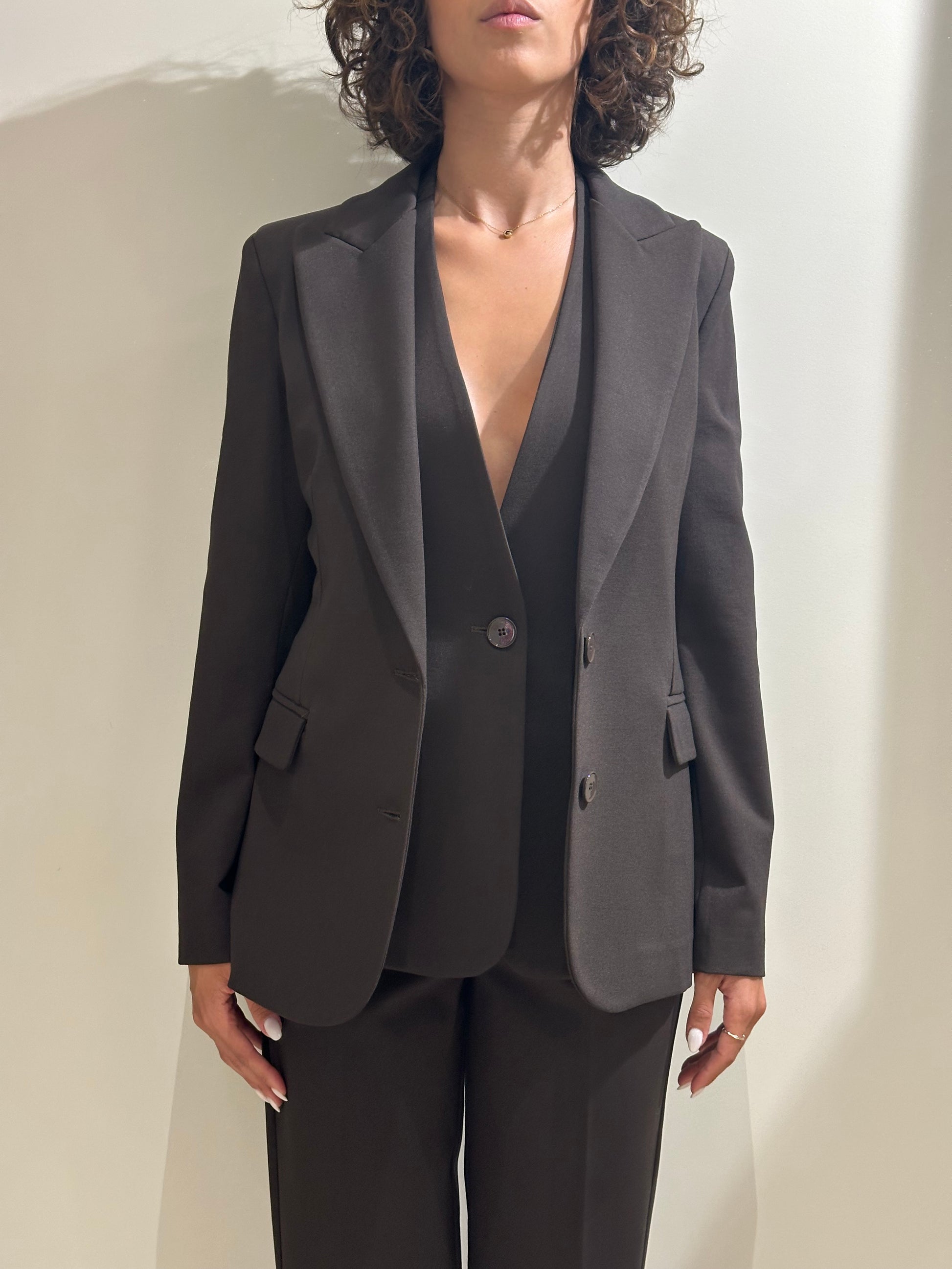 Giacca in punto milano ad un petto. 2 bottoni, elasticizzata e avvitata.
