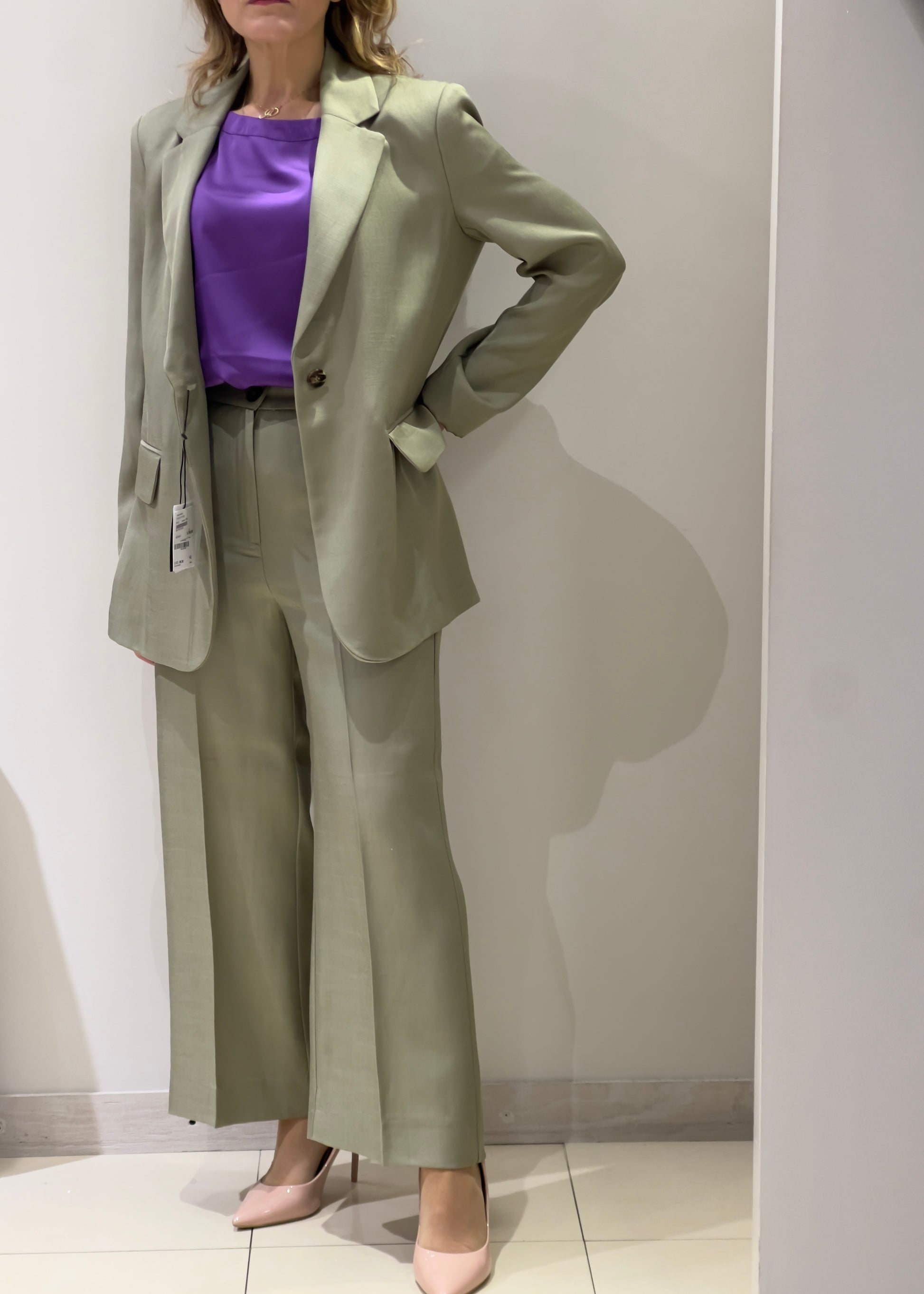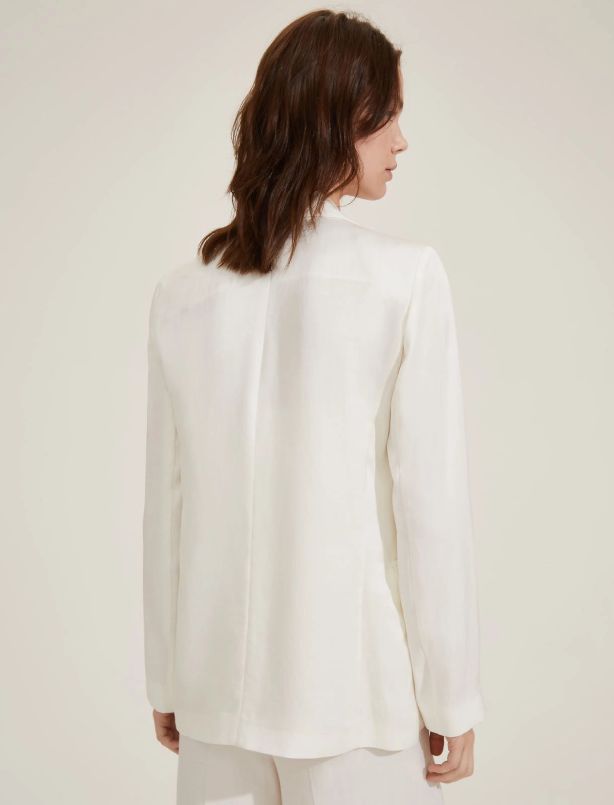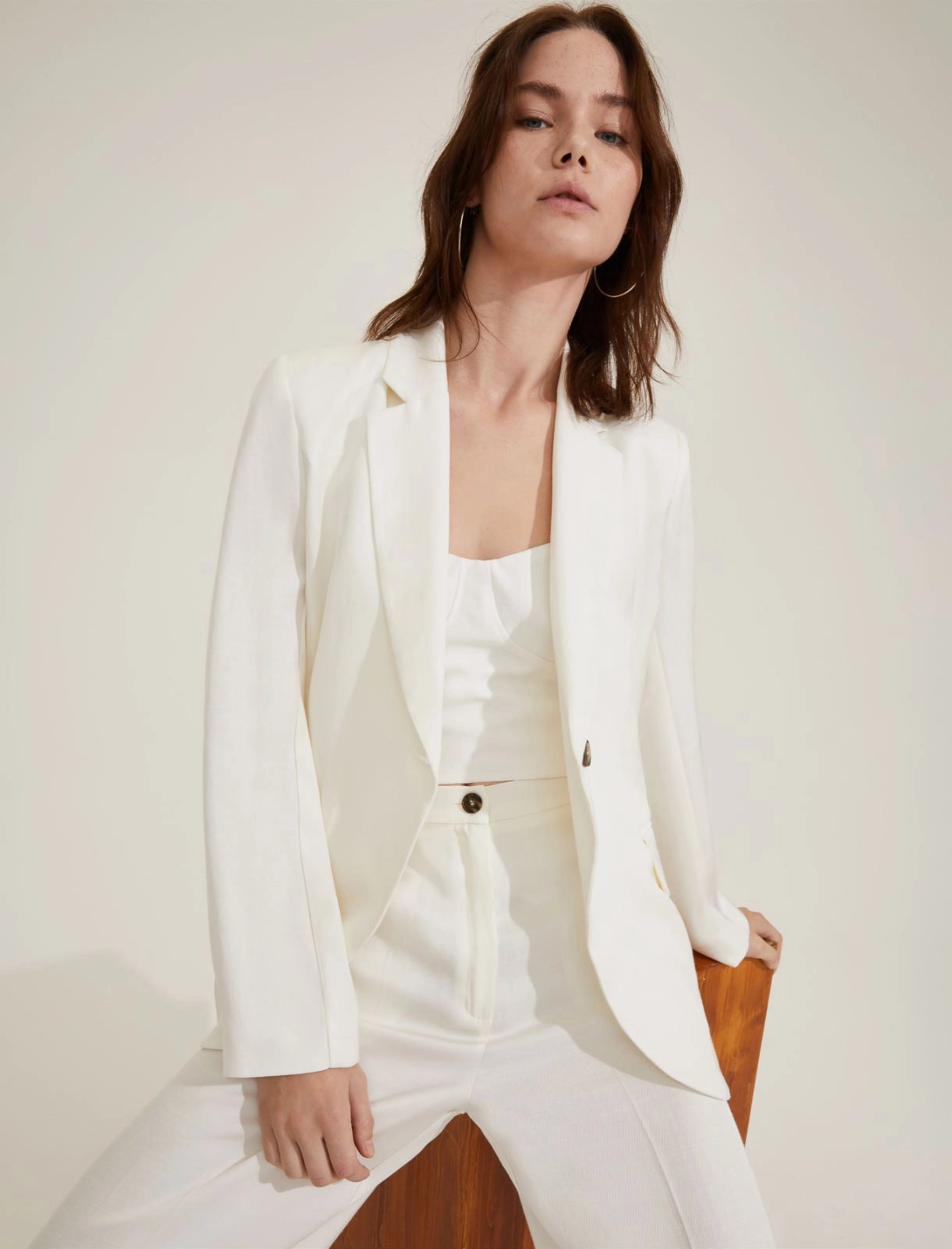 Blazer fluido dal cuore versatile, con linea semi aderente e tutta la freschezza del lino in trama. Abbinalo ad una t-shirt, alle bluse stampate e ai pantaloni più easy, sarai sempre perfetta.