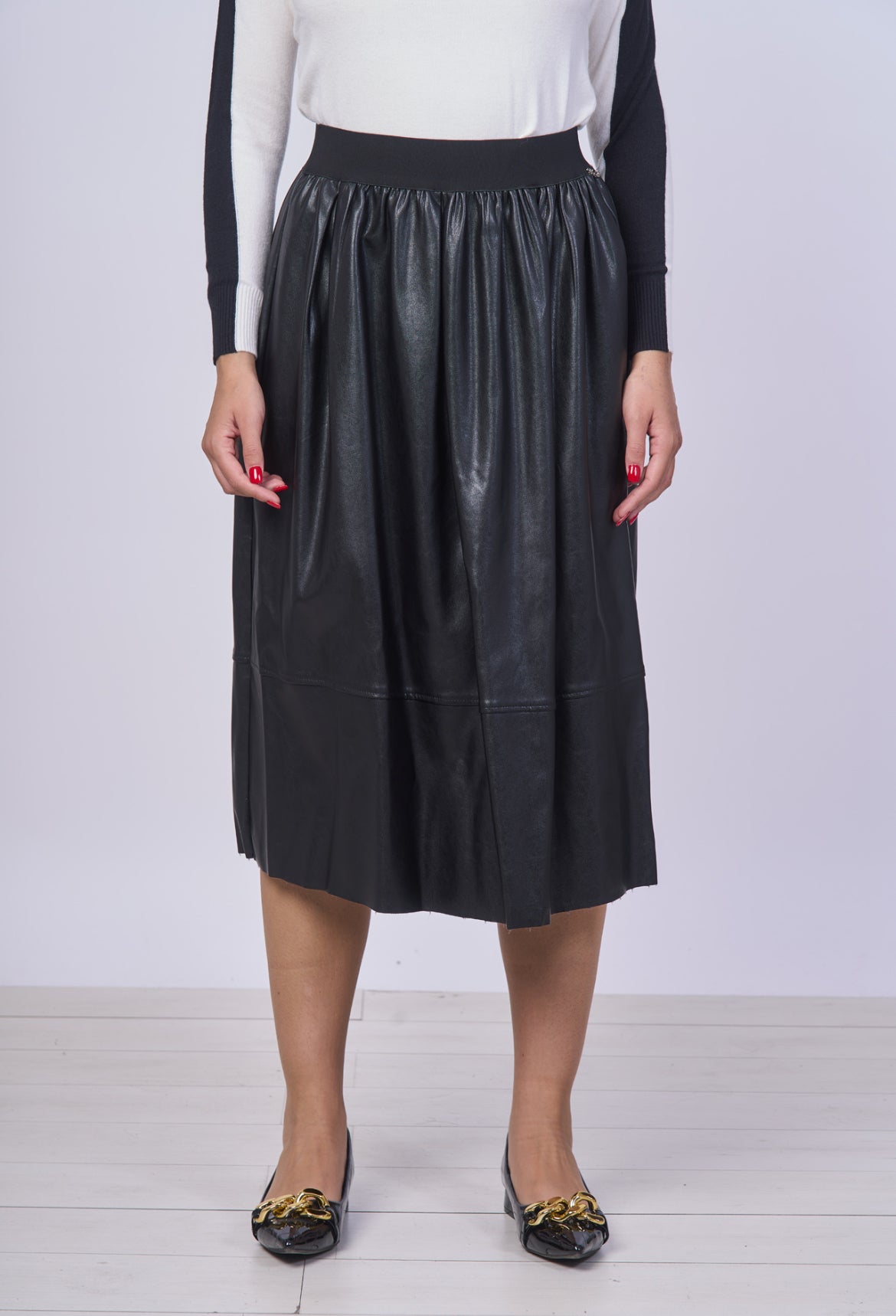 Questa gonna longuette è un must-have per il tuo guardaroba, un capo che unisce eleganza e grinta. La silhouette a ruota e le ampie pieghe creano movimento e un look sofisticato, mentre il materiale in ecopelle aggiunge un tocco moderno e audace. La vita alta slancia la figura, rendendo questa gonna versatile e adatta a ogni occasione. Puoi abbinarla a un top a maniche lunghe per un look da giorno, oppure a una camicetta elegante per un’uscita serale. Le gonne sono un elemento fondamentale per creare outfit sempre alla moda.