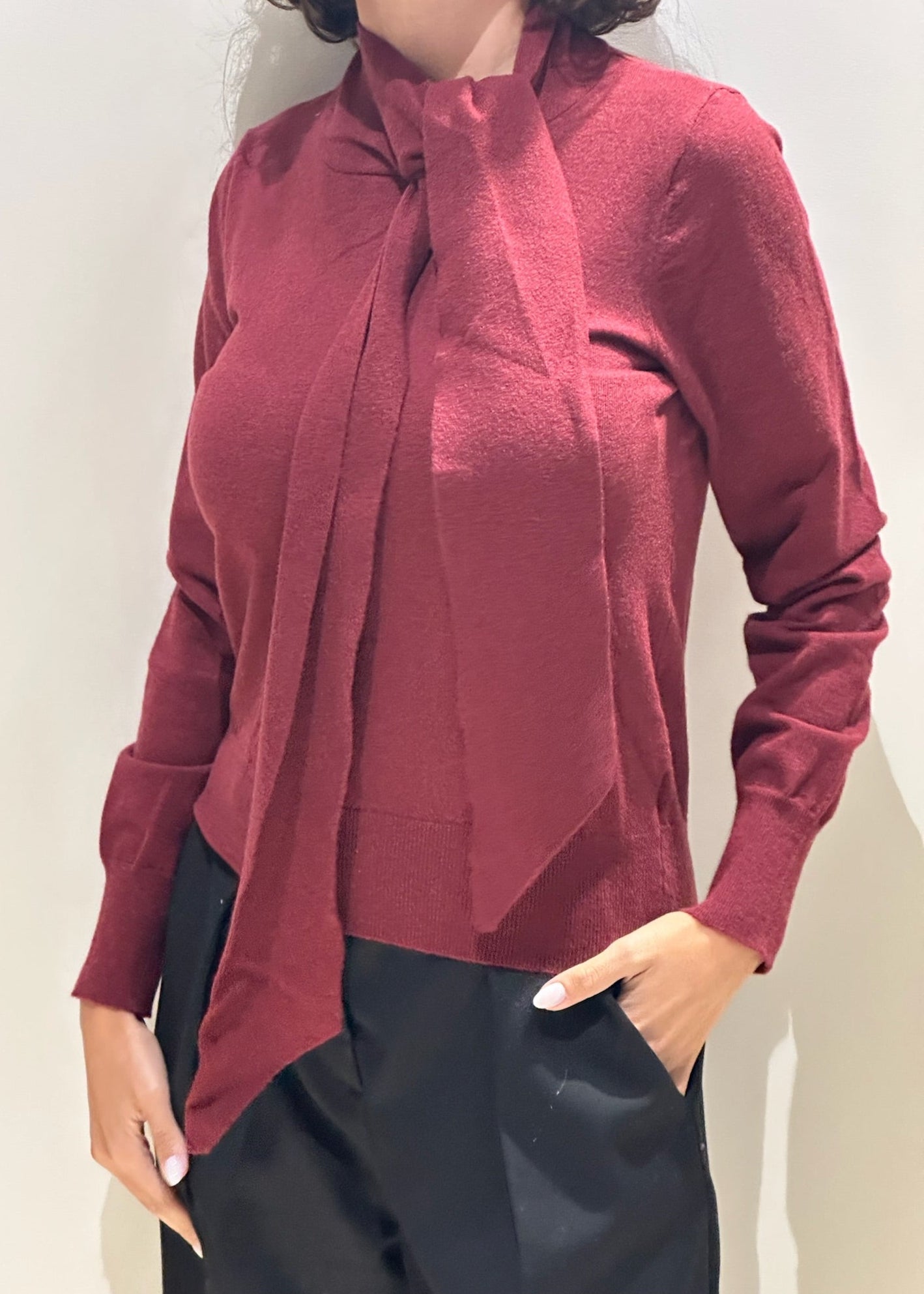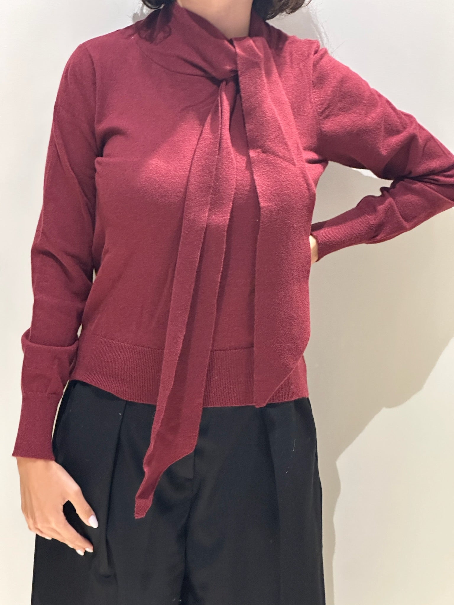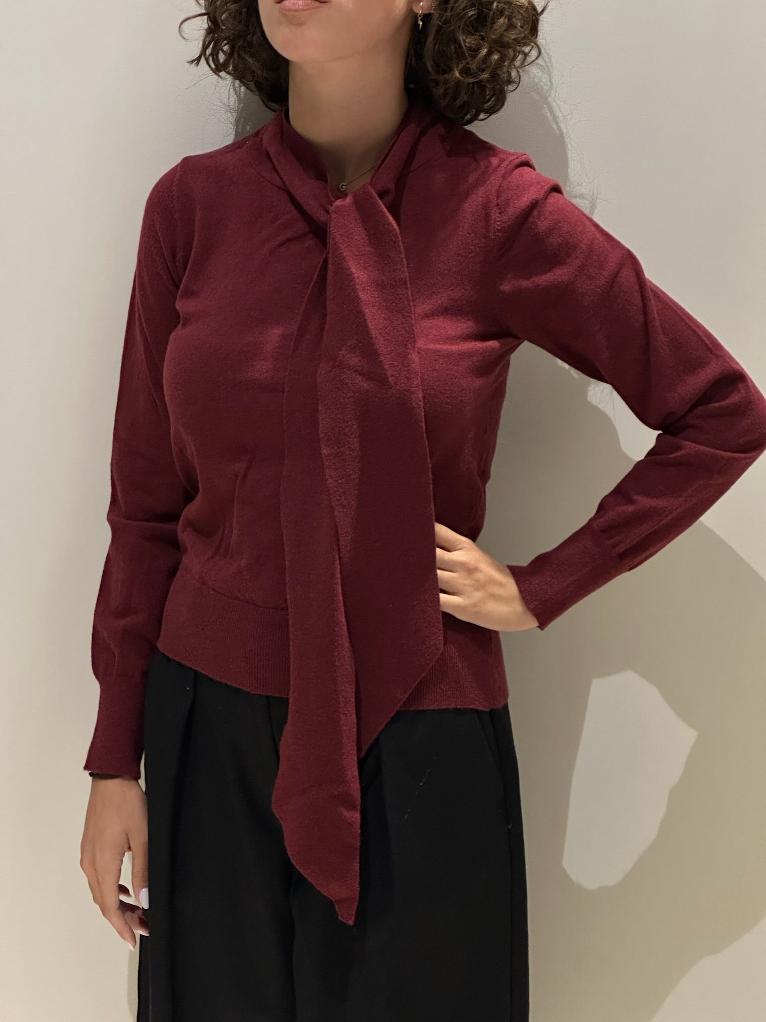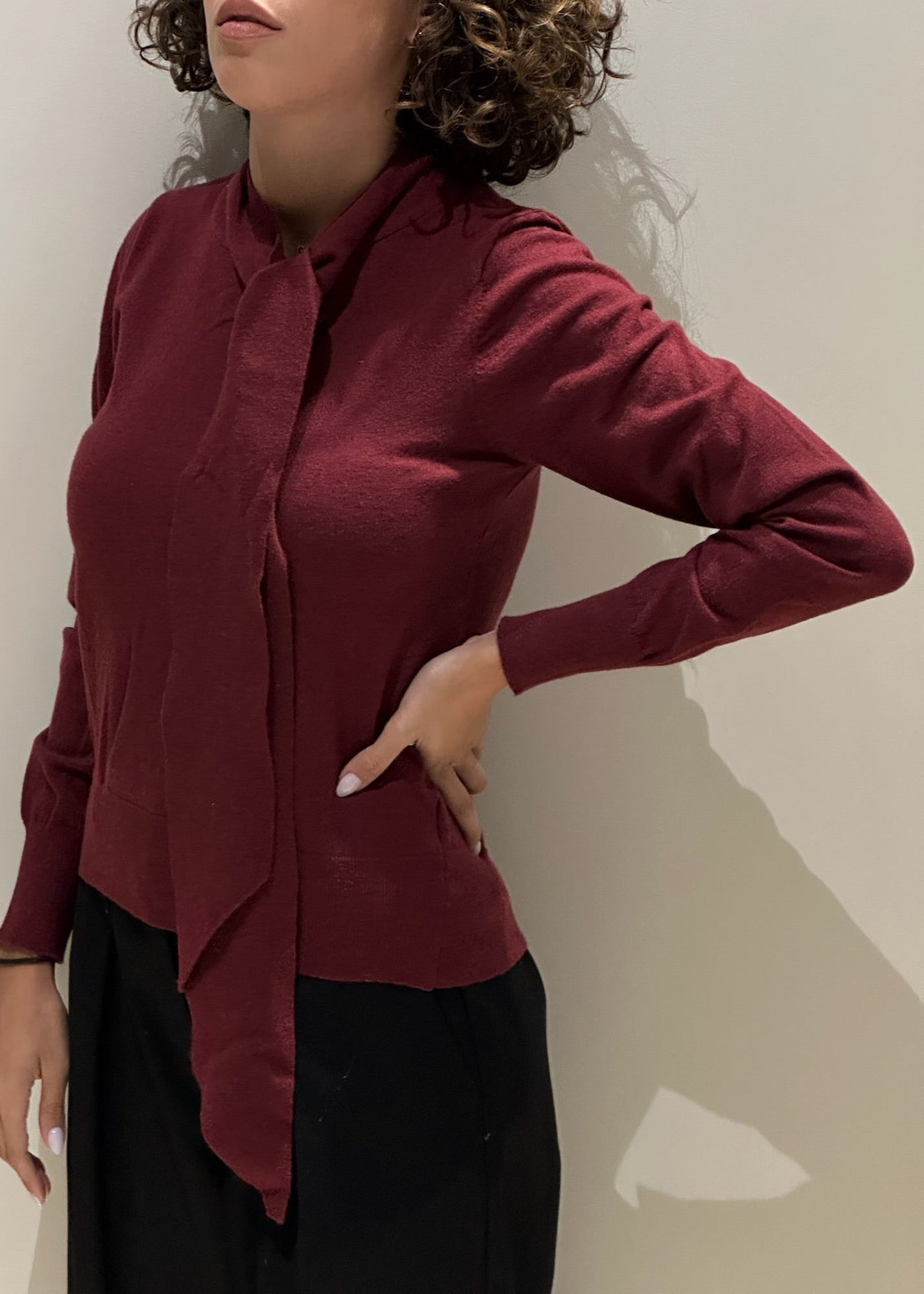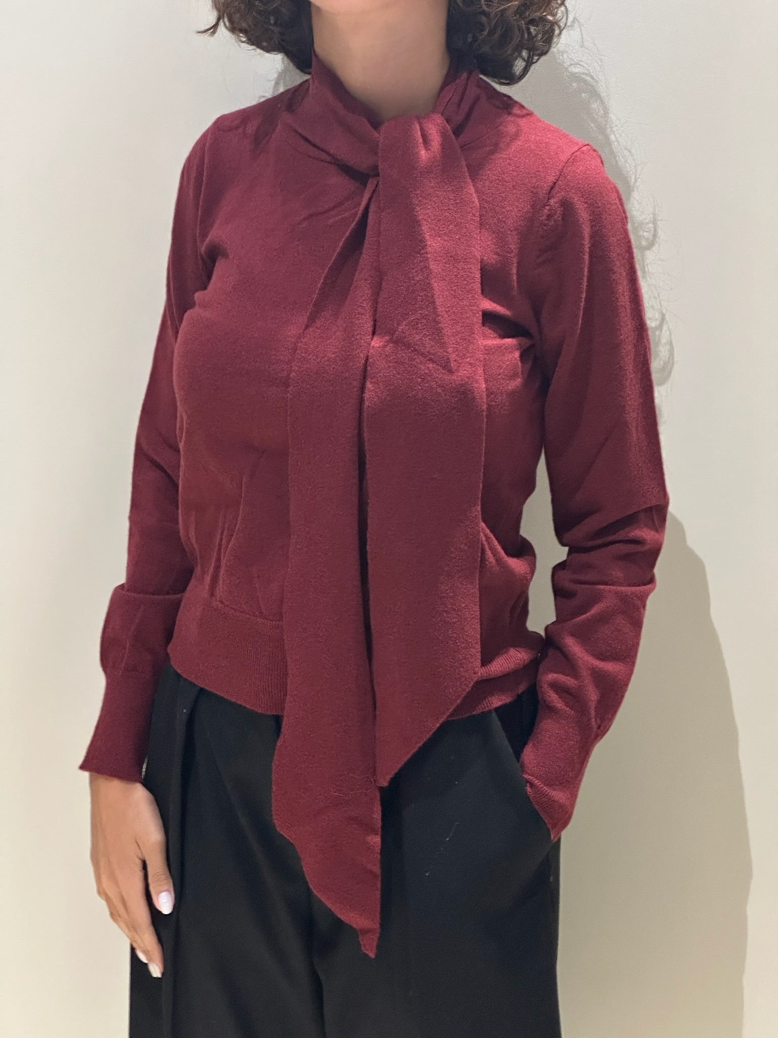 Eleva il tuo stile con questa maglia in maglia fine color cammello, un capo che unisce eleganza e comfort. Il suo punto forte è il collo alto con un fiocco sartoriale che può essere annodato a piacere, aggiungendo un tocco di sofisticata femminilità al tuo look. Realizzata con una vestibilità perfetta che valorizza la silhouette, è il capo ideale per un outfit da ufficio o per una serata speciale.