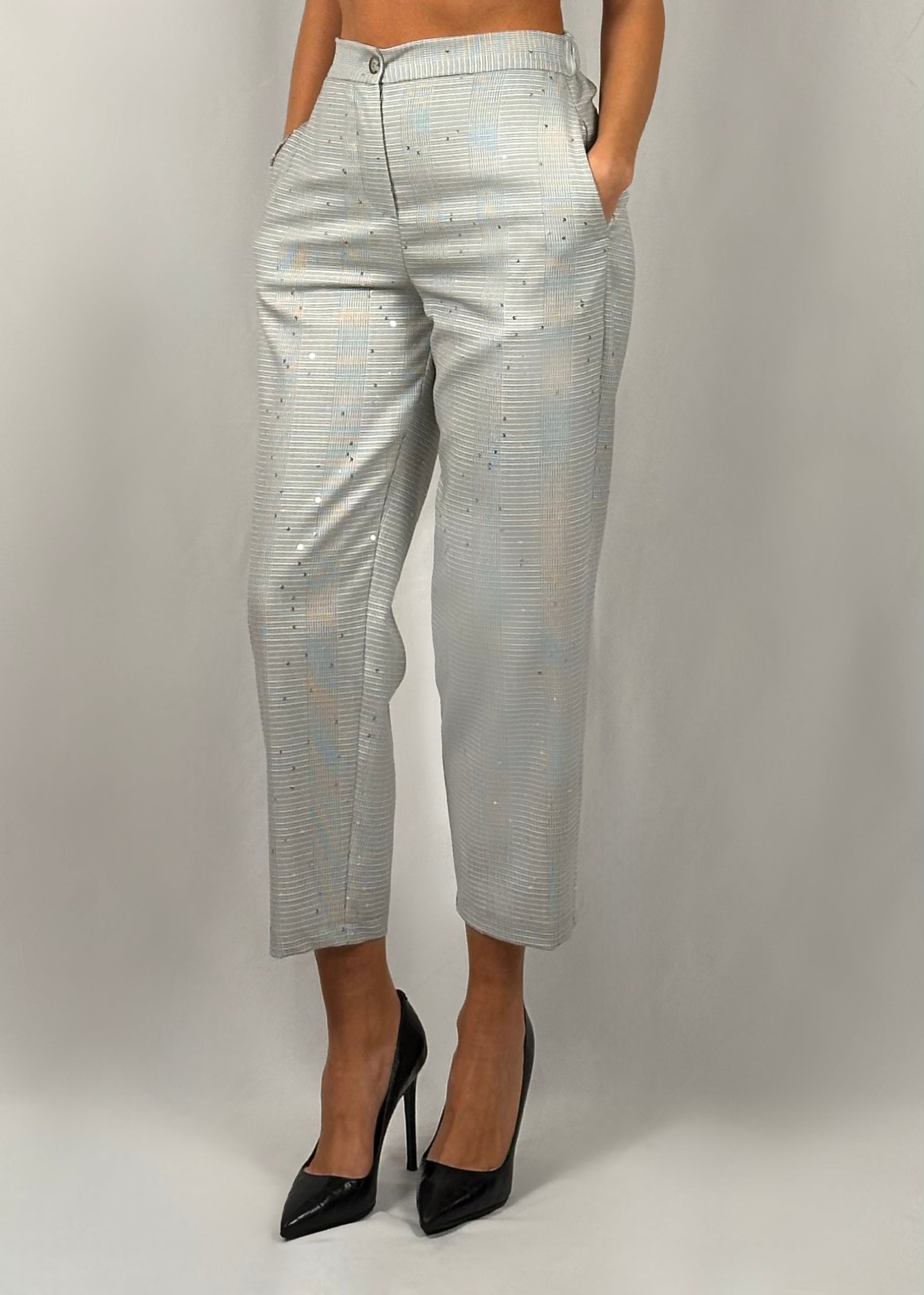 Pantalone Vicolo principe galles con Pailettes, chiusura frontale con bottone, passanti in vita, tasche laterali. Completa il look con la giacca coordinata: TD0294