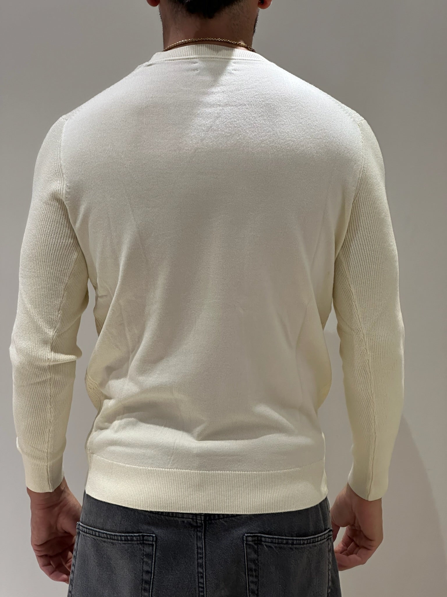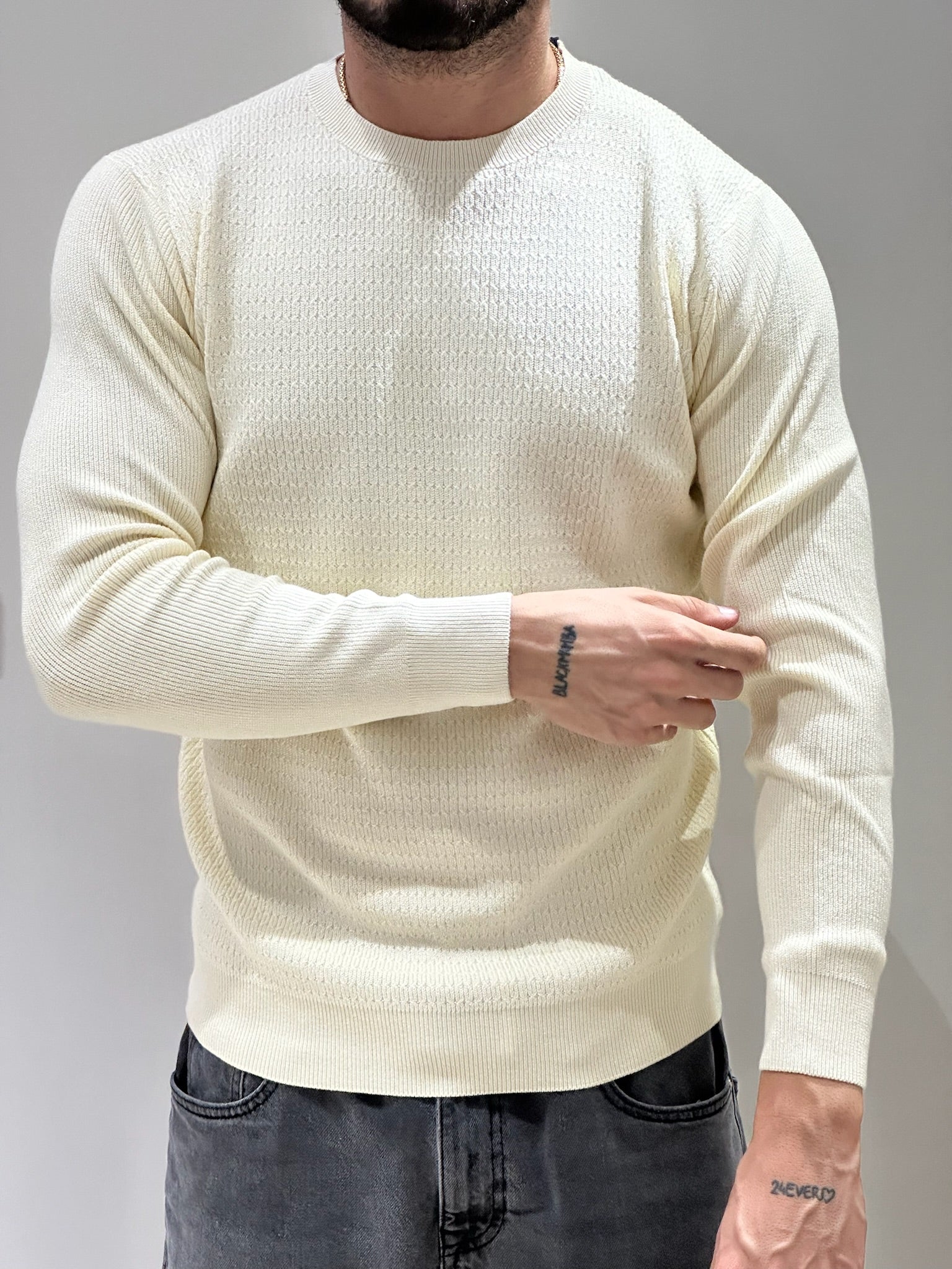 Il maglioncino girocollo Basic è un capo versatile e confortevole, perfetto per ogni occasione. Realizzato in morbido cotone misto, offre una vestibilità leggera e piacevole sulla pelle. La linea essenziale e pulita si adatta a diversi stili, dall’elegante al casual. Disponibile in due eleganti varianti di colore: panna, per un look raffinato e luminoso, e blu, ideale per un outfit sobrio e sofisticato. Il taglio regolare e i dettagli minimalisti lo rendono un capo indispensabile nel guardaroba, facile da abbinare sia con jeans che con pantaloni classici.