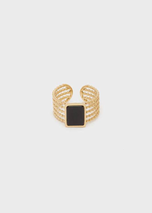 Anello regolabile pietra nera acc.ino oro