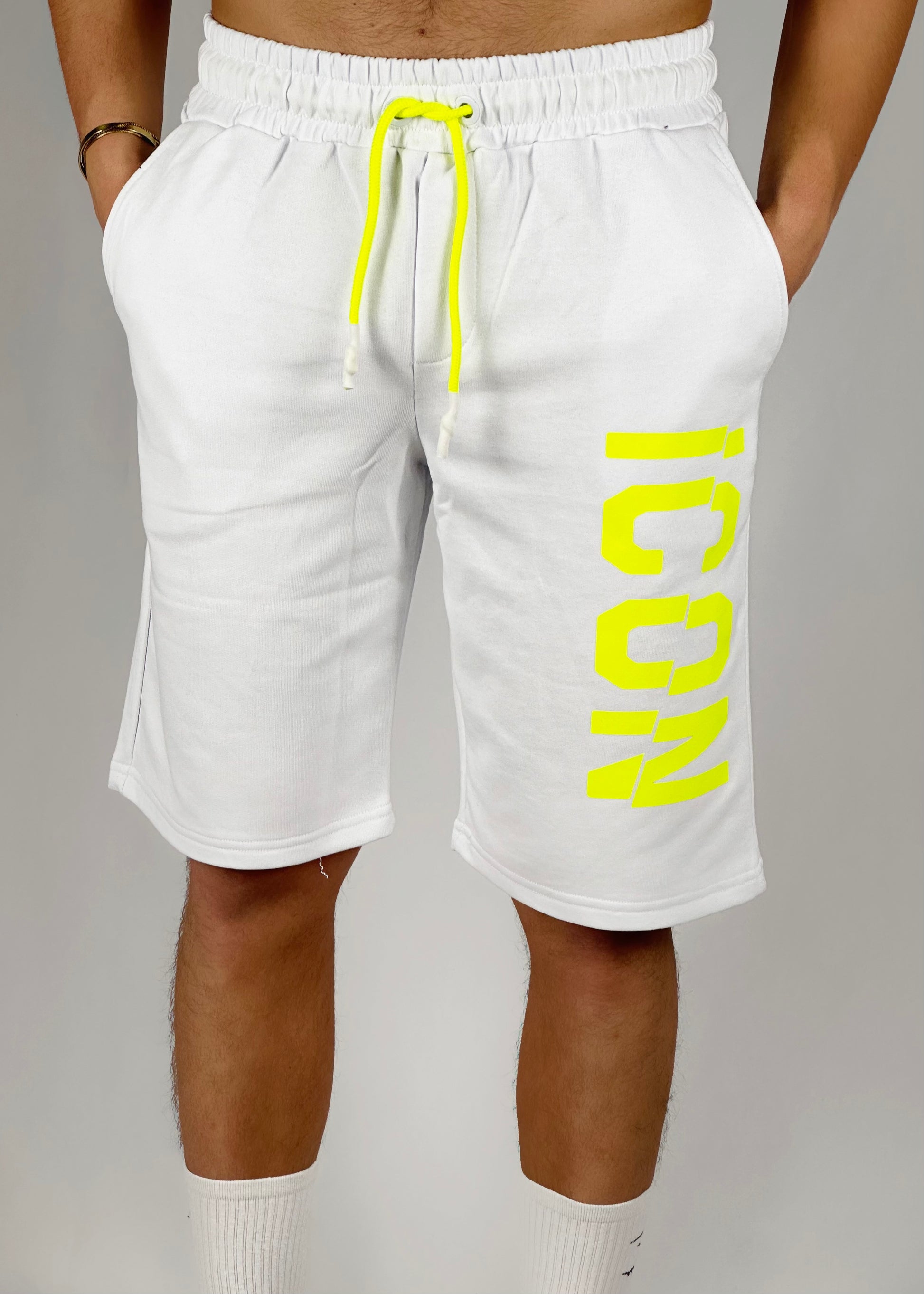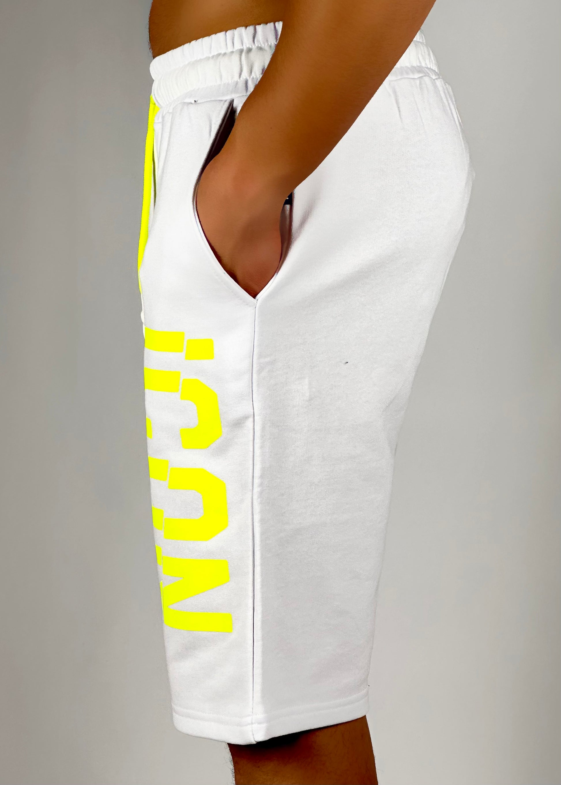 Il pantaloncino bianco in morbido cotone si distingue per la sua semplicità raffinata arricchita da dettagli vivaci. Con una scritta "icon" verticale sulla coscia in un vibrante giallo fluorescente, il pantaloncino cattura lo sguardo con la sua eleganza contemporanea. Un laccio giallo fluorescente, dalla lunghezza moderata, aggiunge un tocco di giocosità e praticità al capo. Realizzato con materiali di alta qualità, assicura comfort e stile per le tue giornate estive. Questo pantaloncino incarna l'equilibrio tra la sobrietà e l'audacia, perfetto per chi vuole distinguersi con classe e originalità.