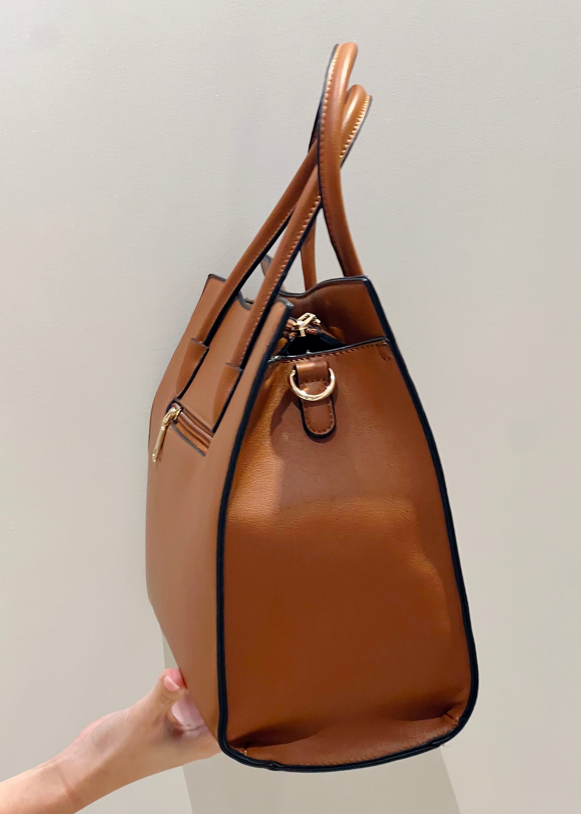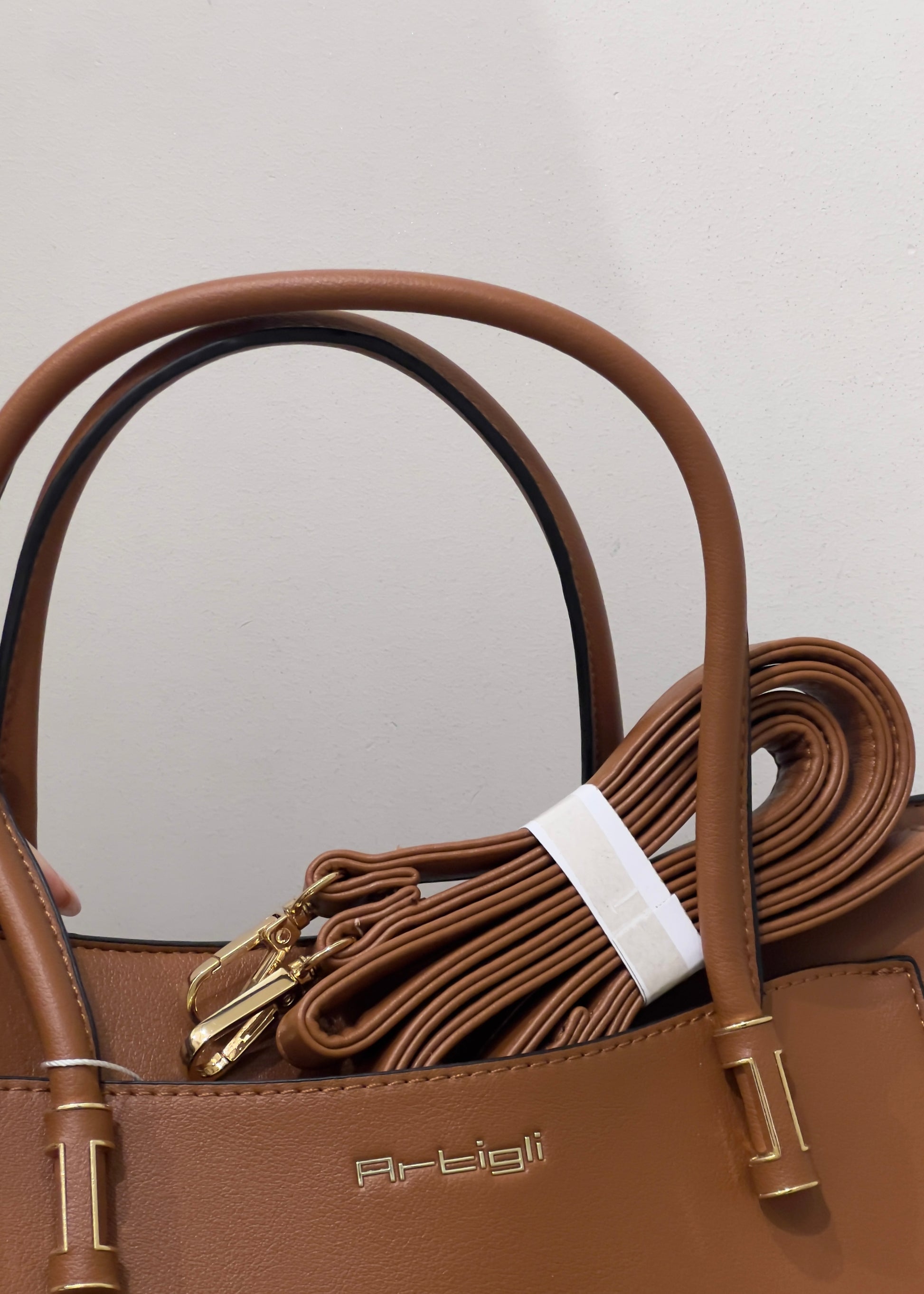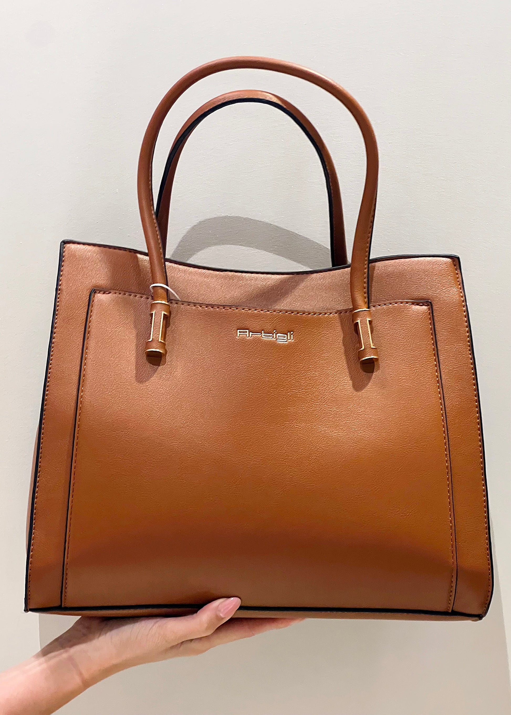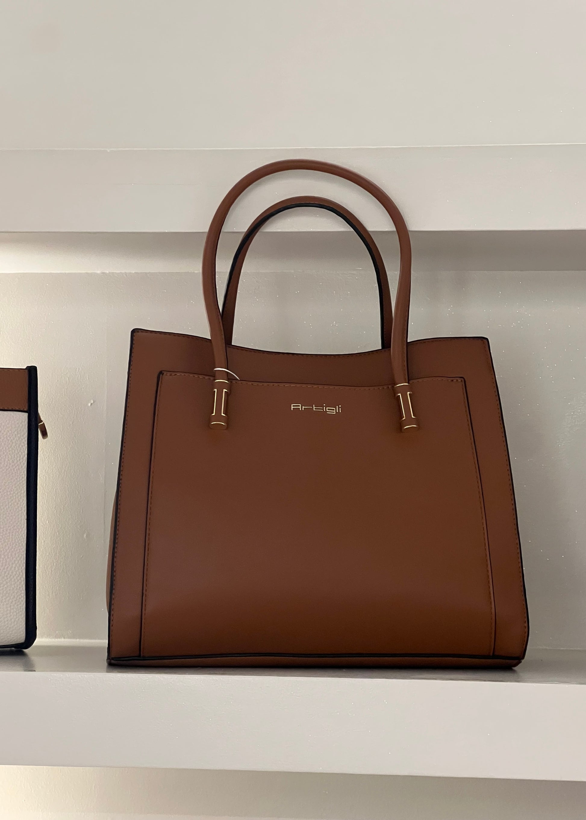 Questa borsa color cuoio con scritta oro è l'accessorio perfetto per ogni occasione. Realizzata con materiali di alta qualità, offre un design elegante e resistente. Il manico comodo e resistente permette di portare la borsa con stile e comodità, mentre il colore e la scritta dorata la rendono unica e di classe.