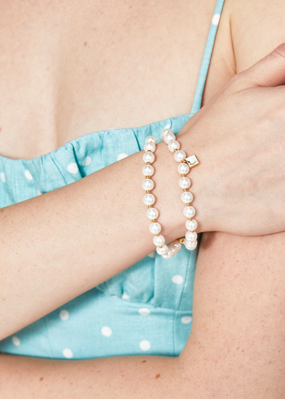 Bracciale dal design minimalista ma elegante, caratterizzato da una serie di perle che si incastrano in modo armonioso. Un accessorio versatile che si adatta facilmente a qualsiasi look, dalla moda casual a quella elegante, dando un tocco raffinato e moderno al tuo outfit.