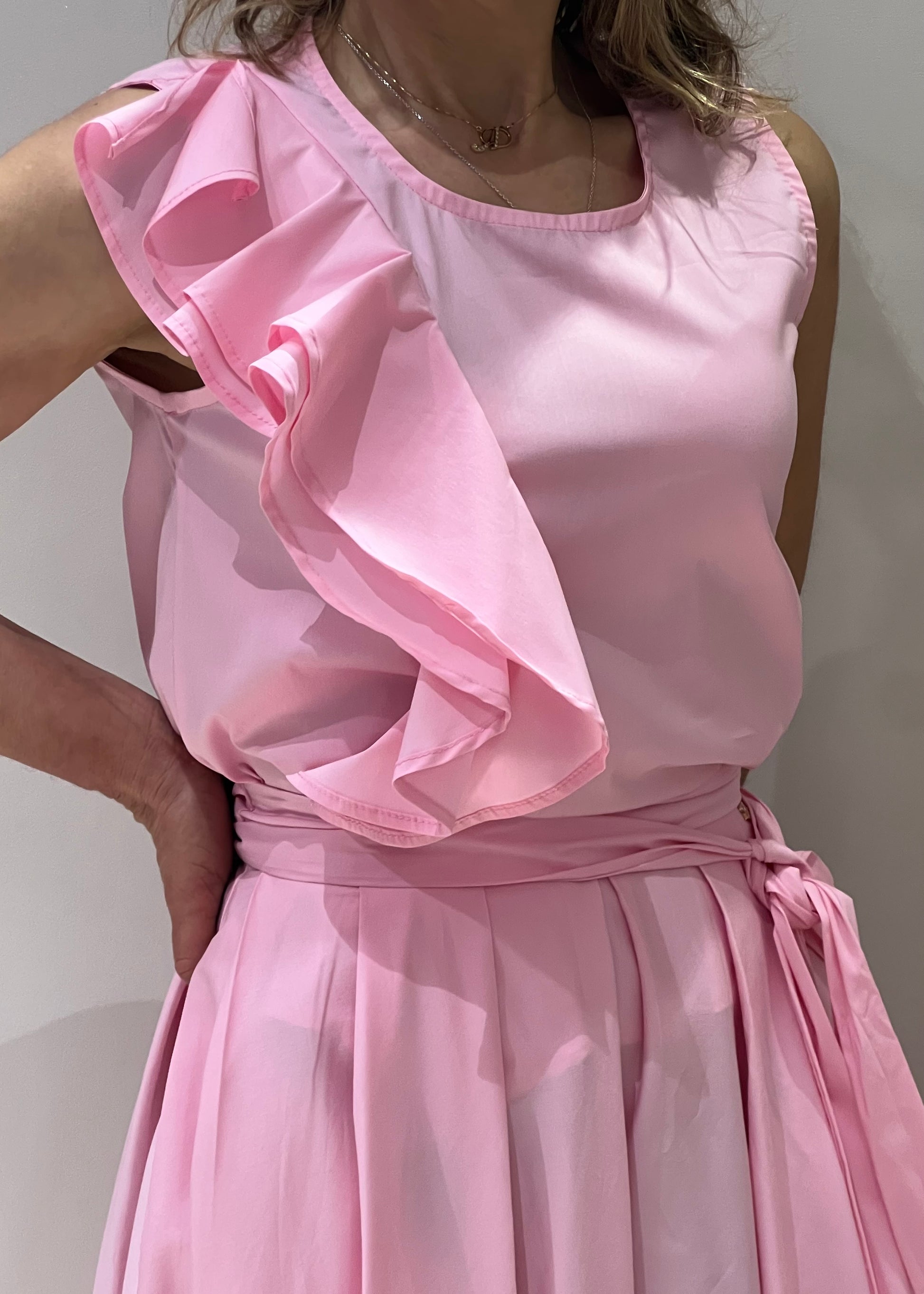 Camicia con volantino rosa.