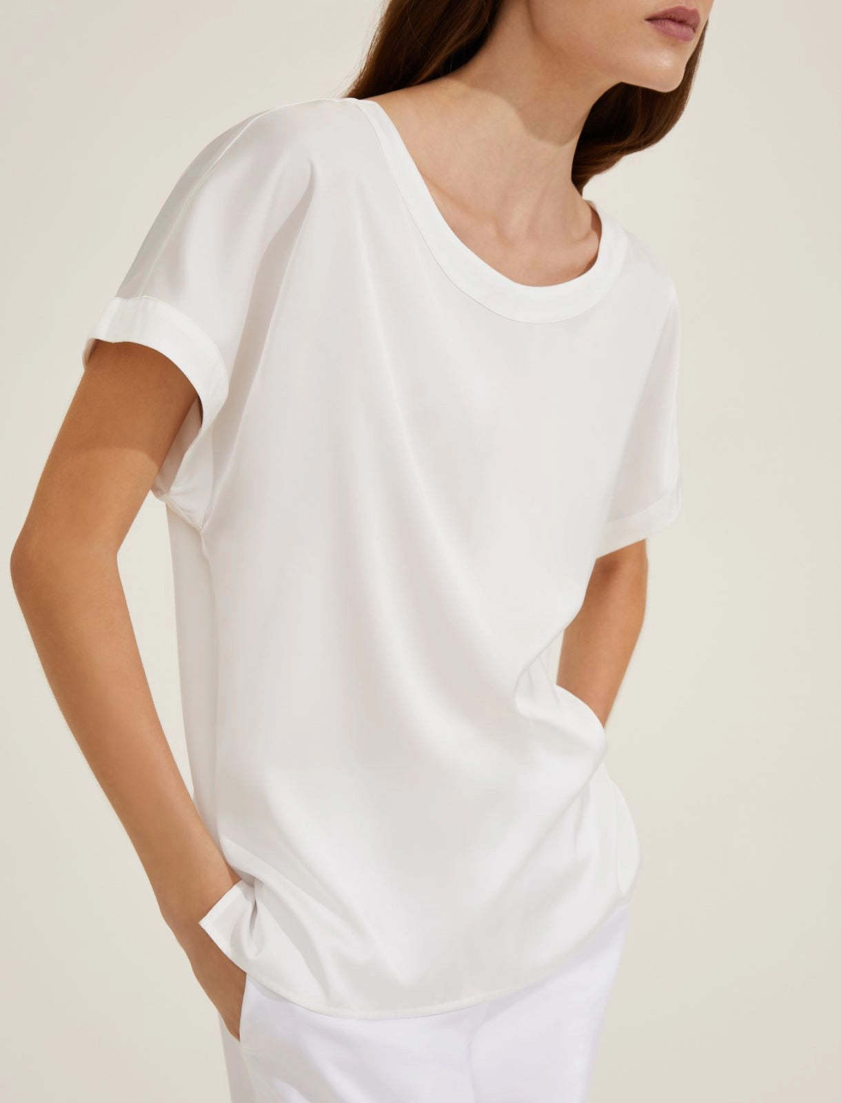 Vero essential del guardaroba, la blusa in raso leggero si presta a comporre infiniti look, dai più rilassati con maglie e joggers fino ai business con blazer e pants sartoriali.