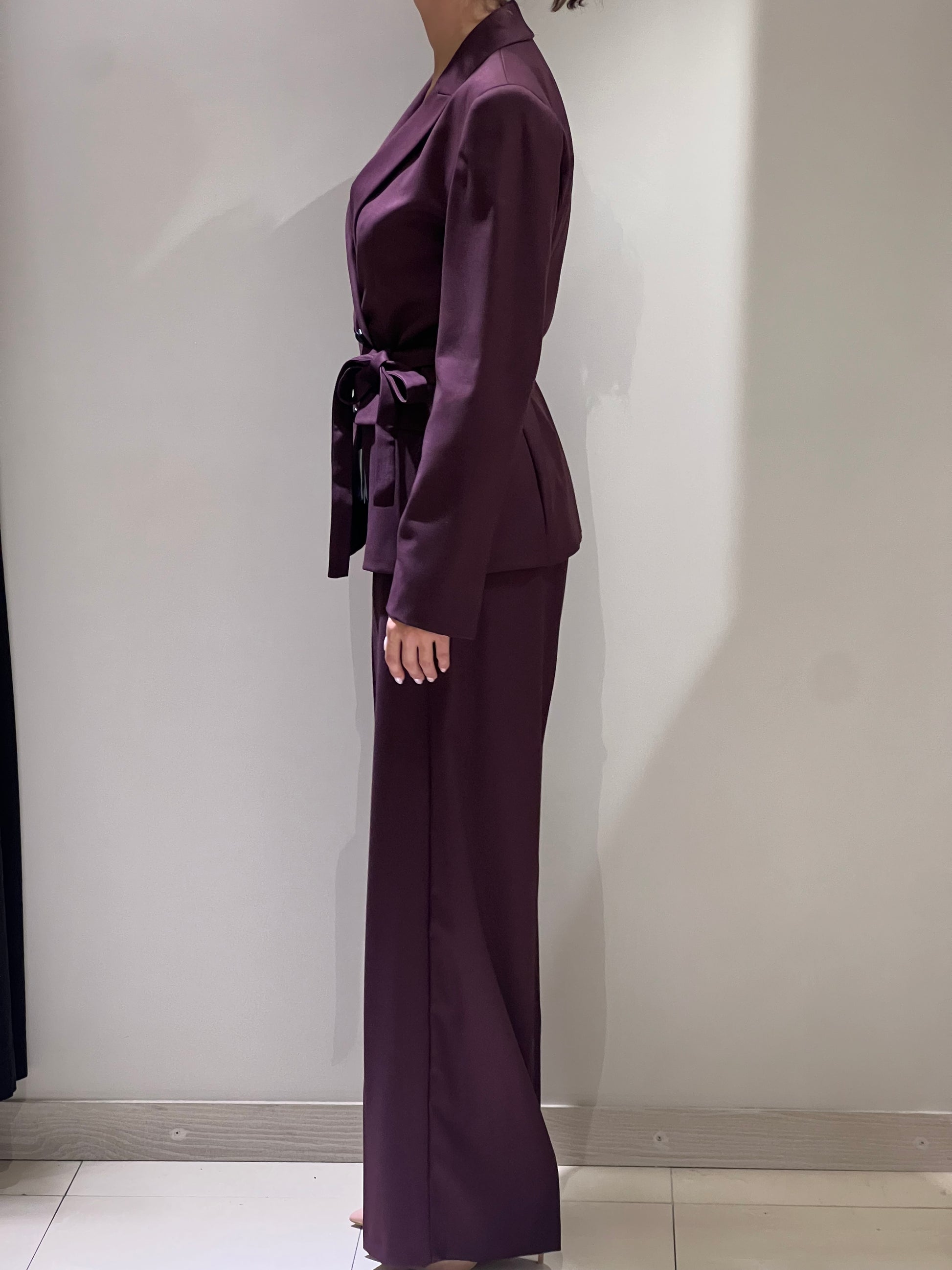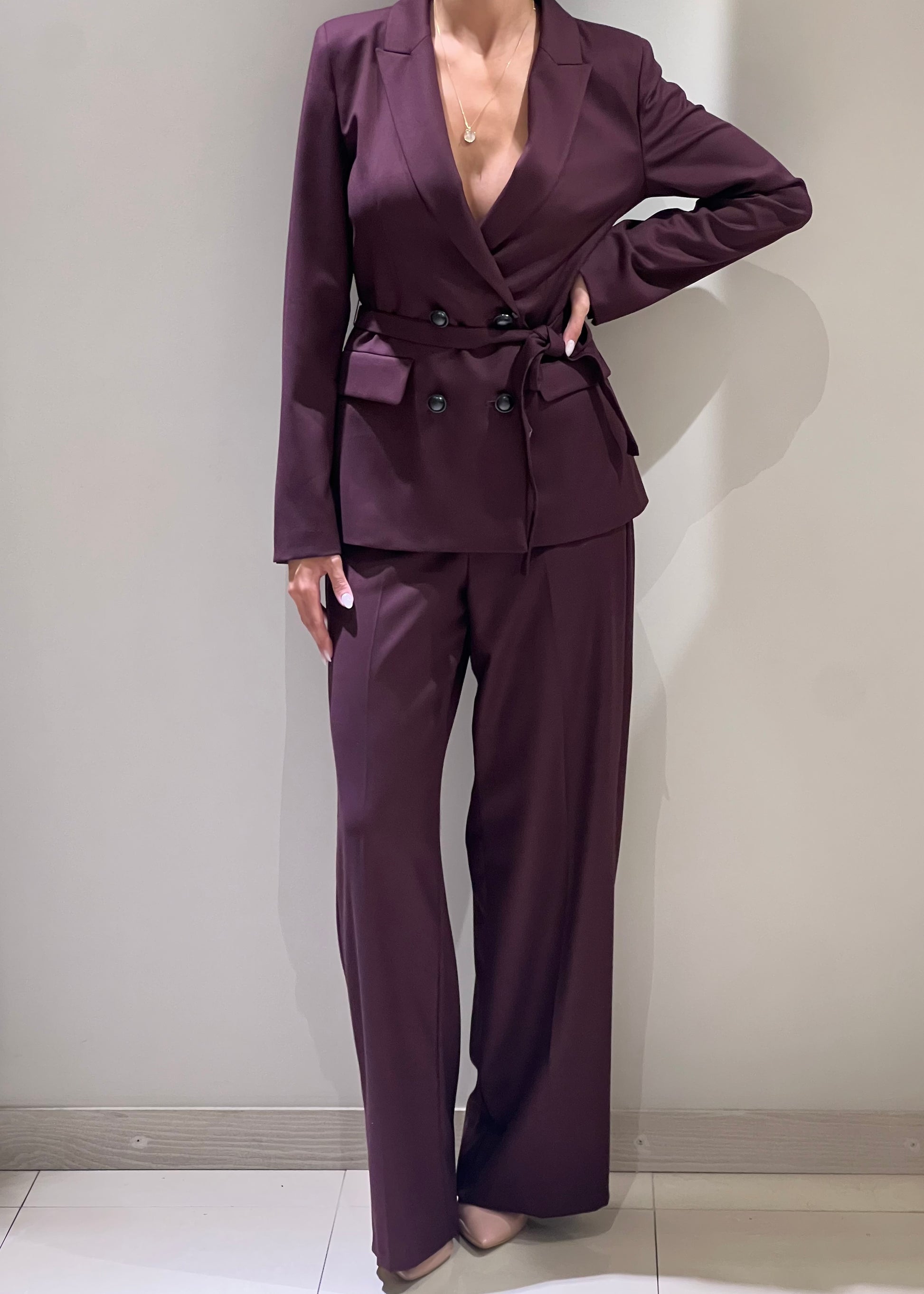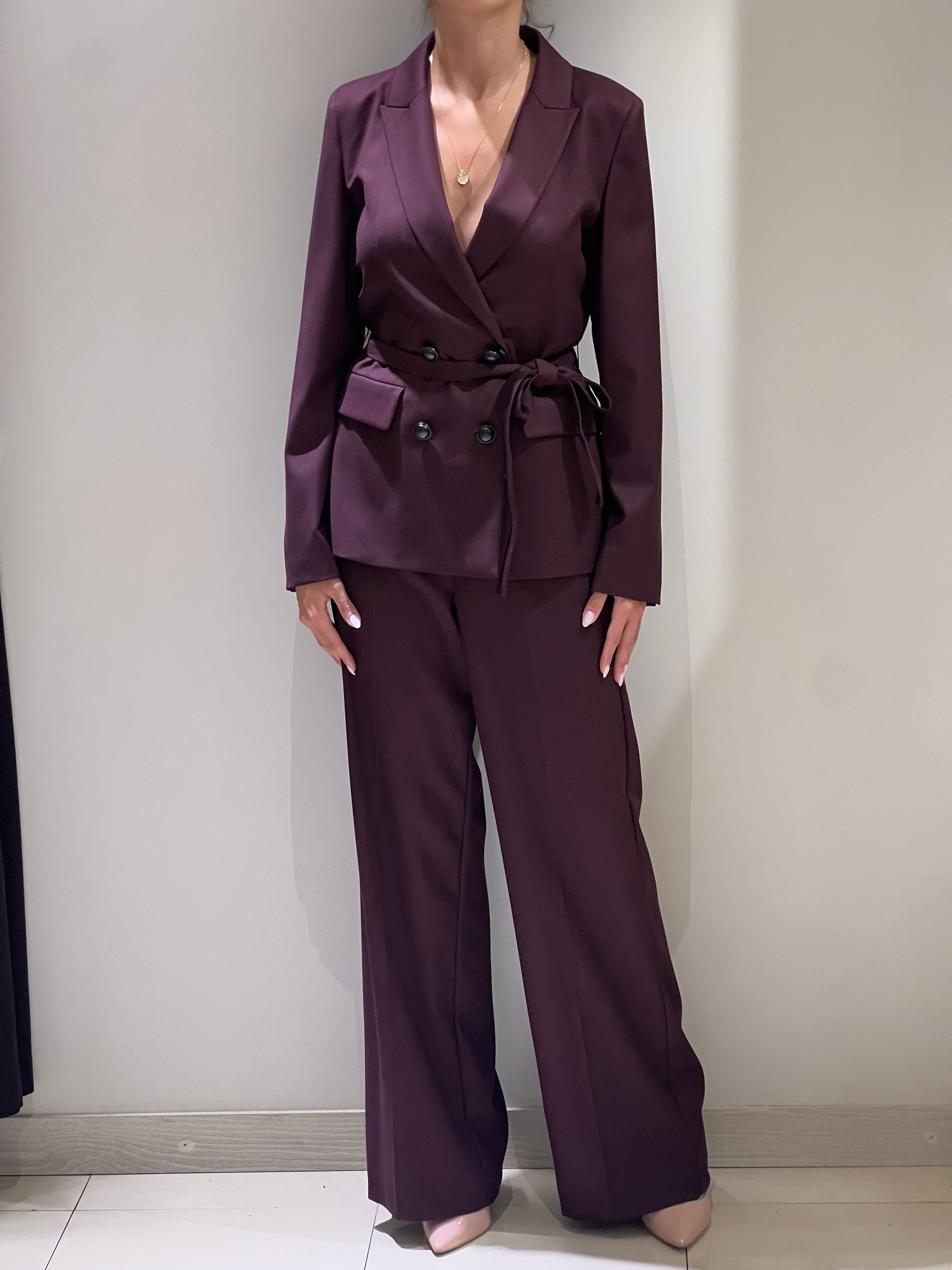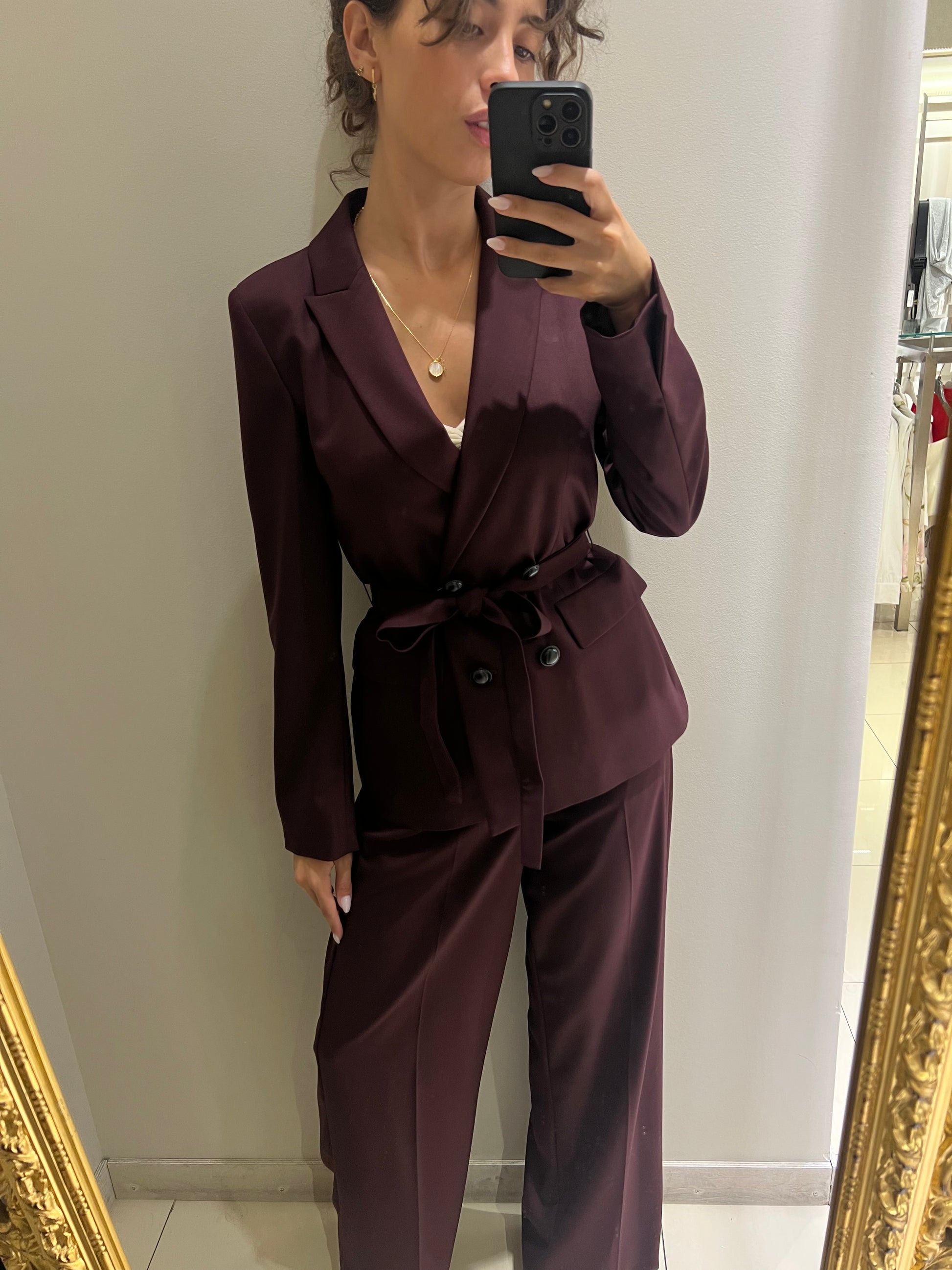 Morbida flanella, taglio doppiopetto, una cintura per stringere e definire la silhouette: il nuovo blazer si presta ad abbinamenti eleganti con i pants coordinati. Aggiungi pochette e sandali per un city look sofisticato.