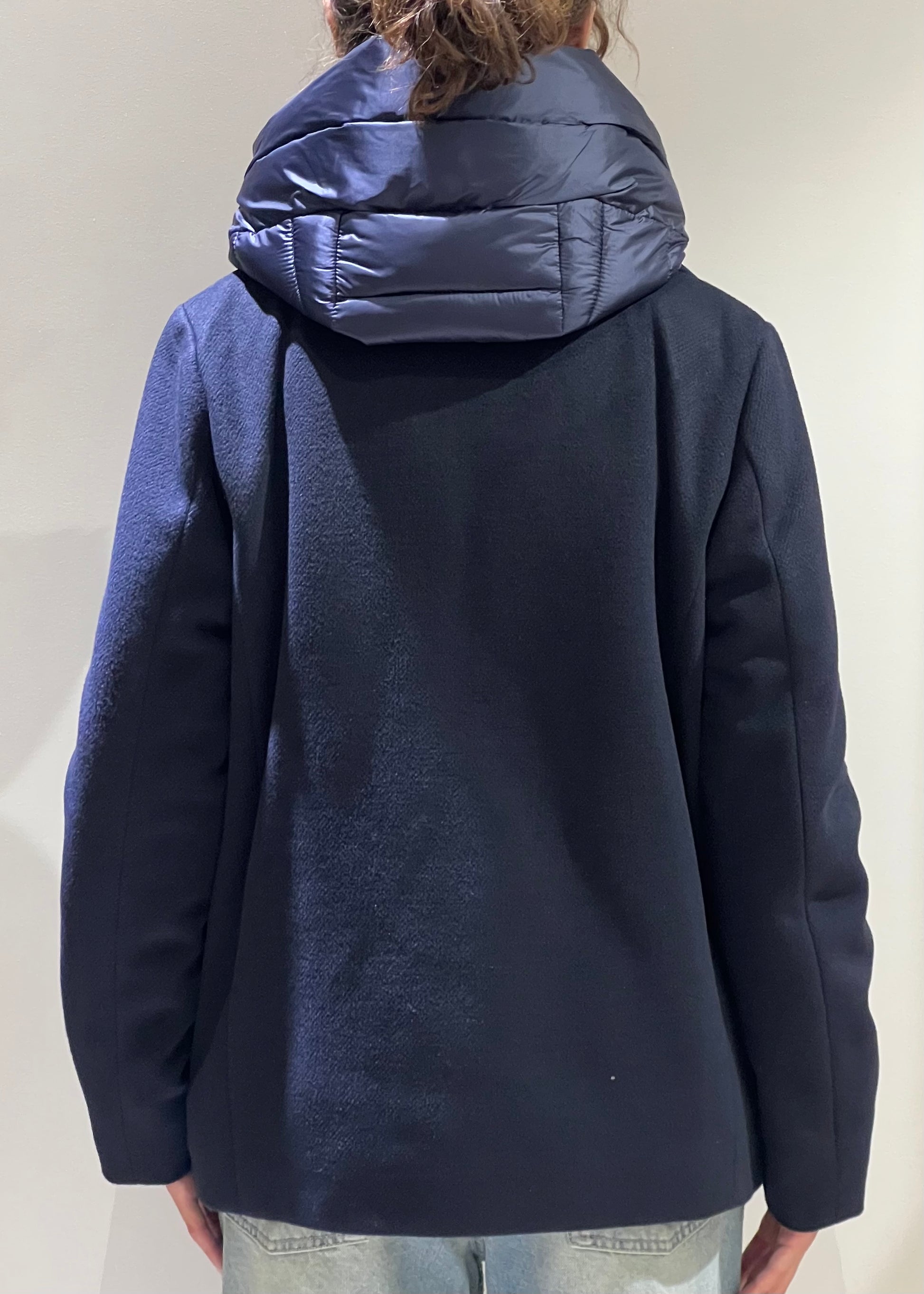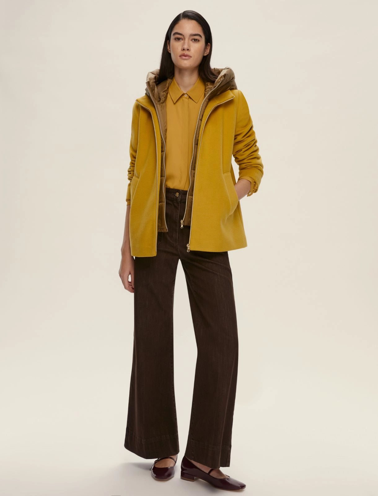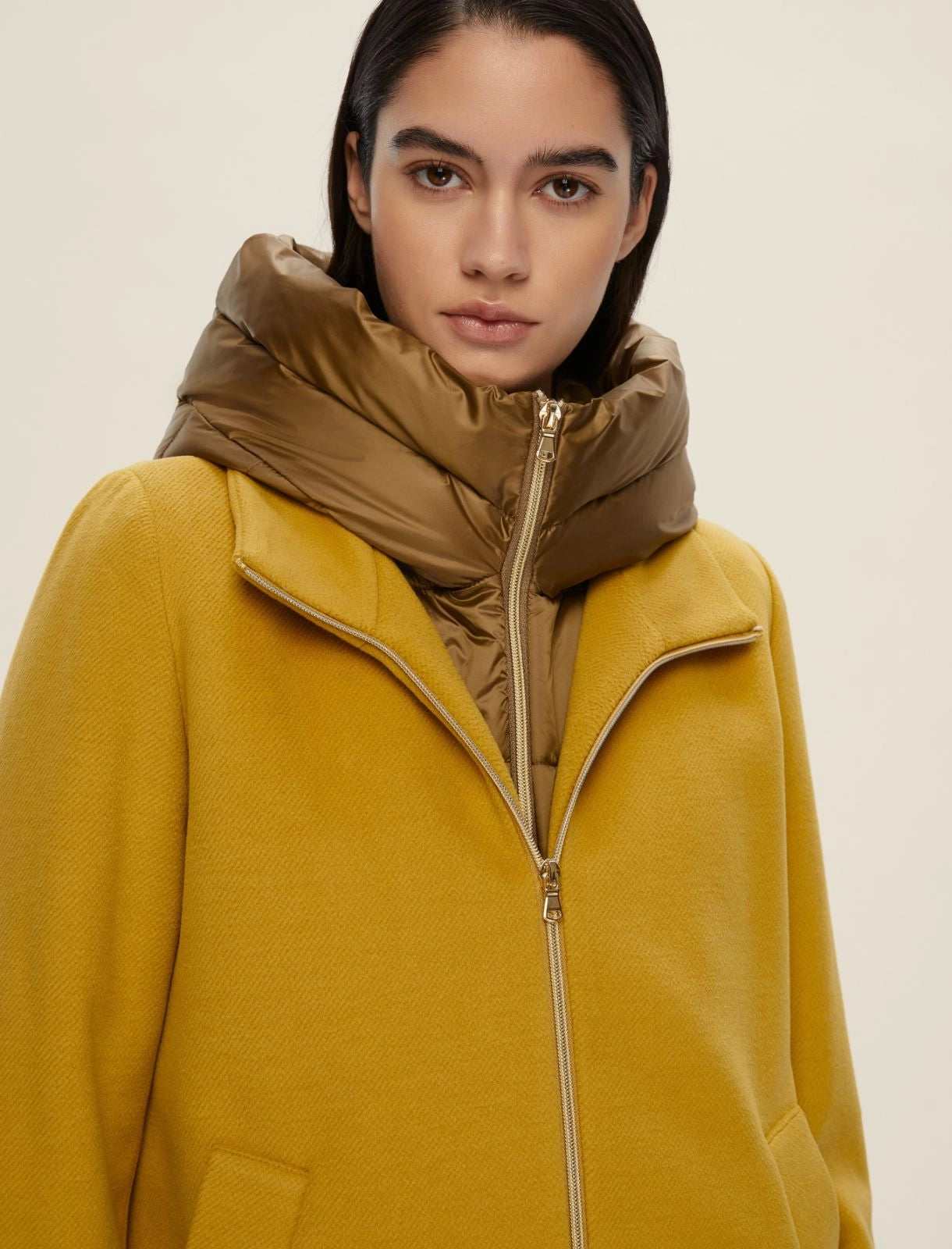 Compatto e trasformabile, questo giaccone in panno soft coniuga funzionalità e stile urbano. La pettorina e il cappuccio in tessuto antigoccia si possono rimuovere, svelando un design più essenziale.