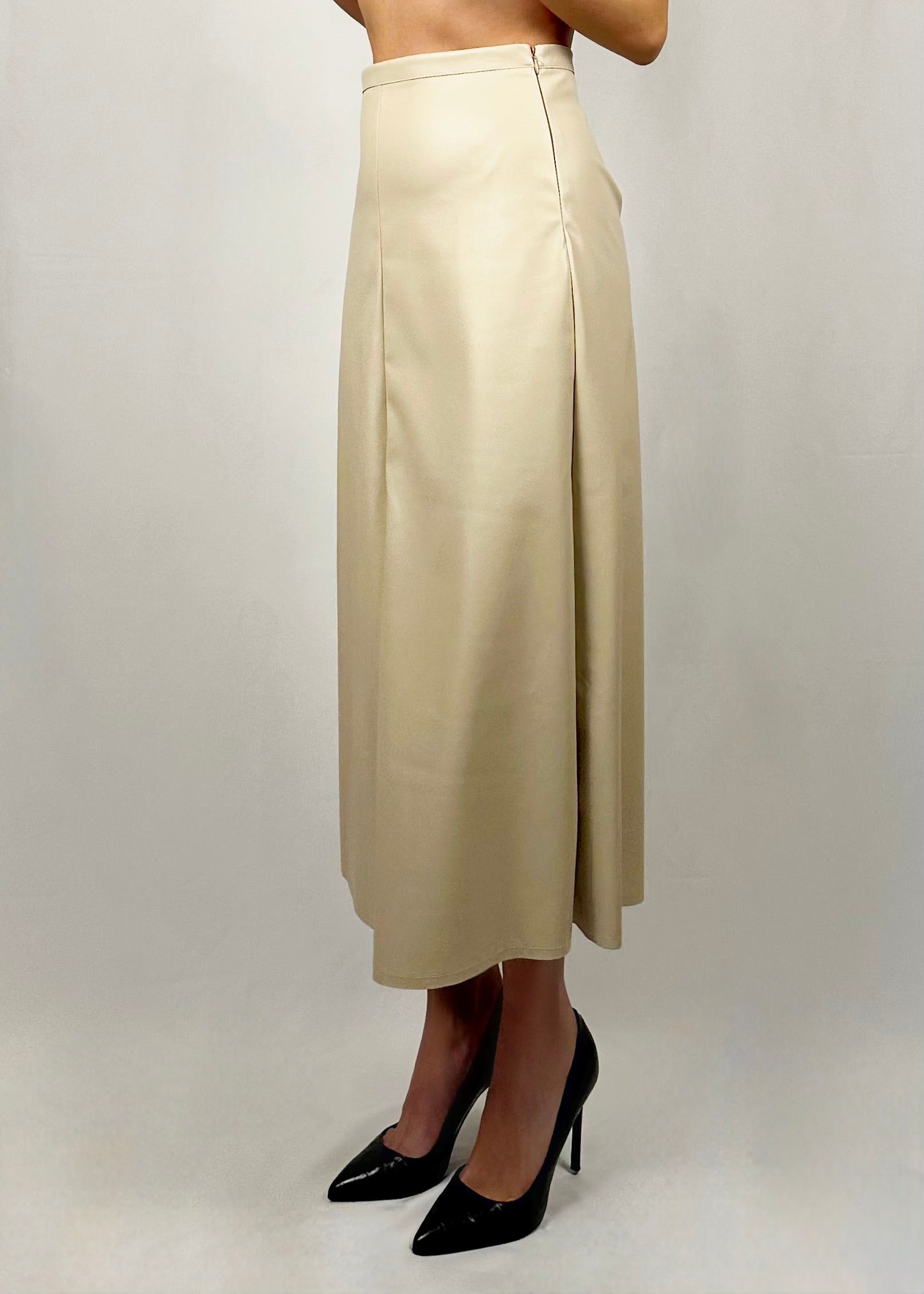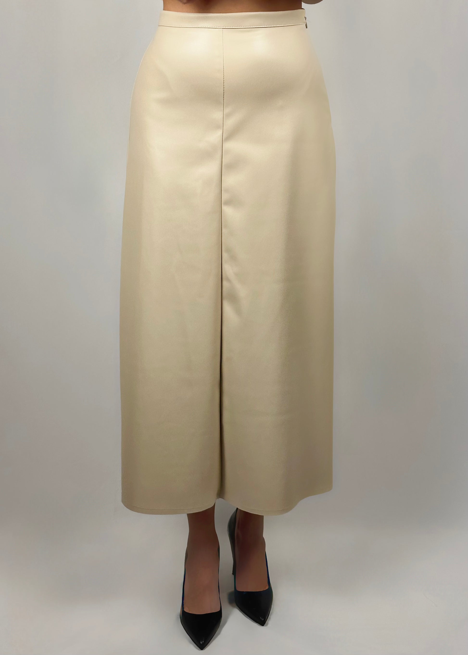 Aggiungi un tocco di eleganza e versatilità al tuo guardaroba con questa splendida gonna di eco pelle