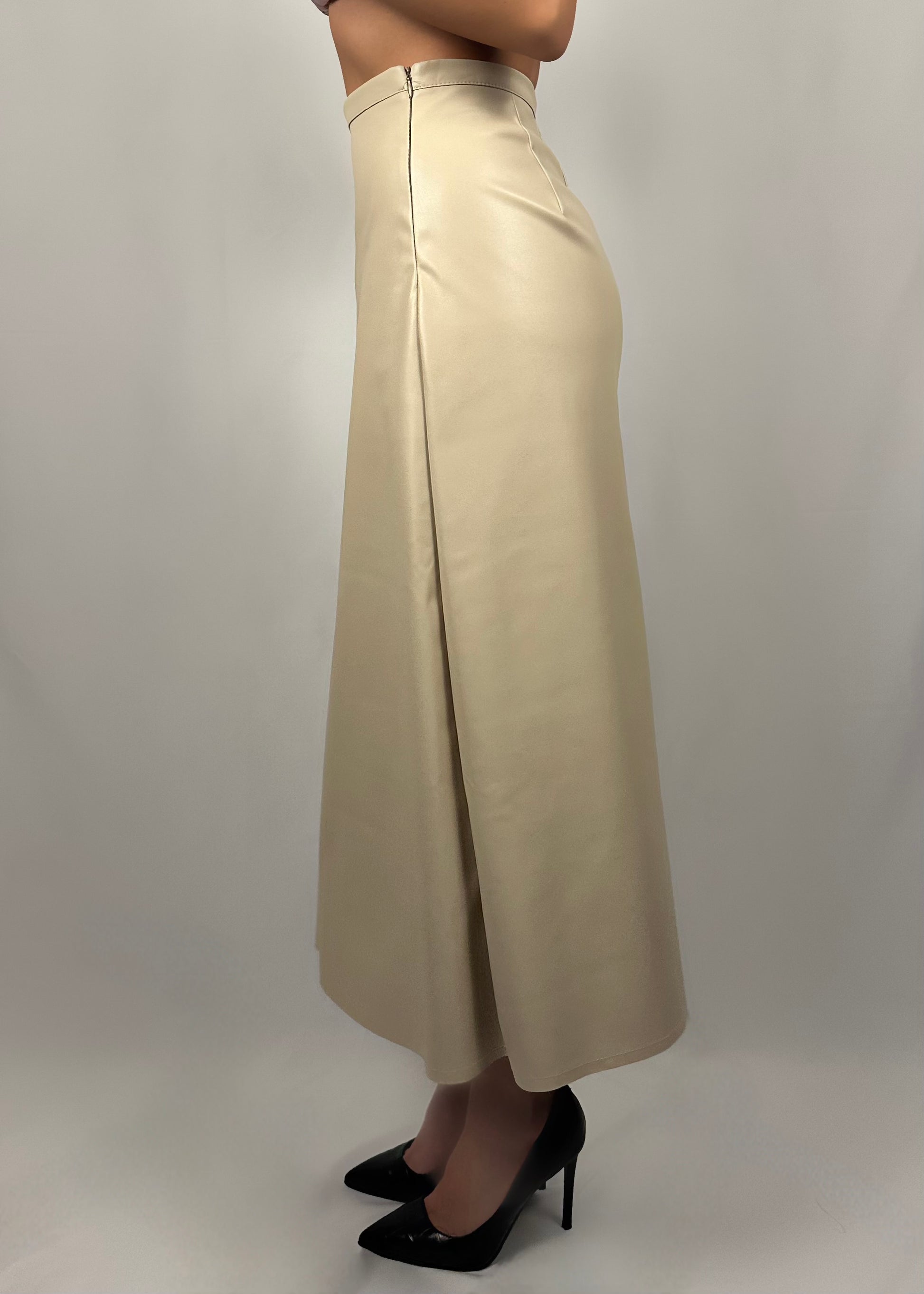 Realizzata in un delicato tono beige chiaro, questa gonna lunga fino alla caviglia offre un look sofisticato e contemporaneo.