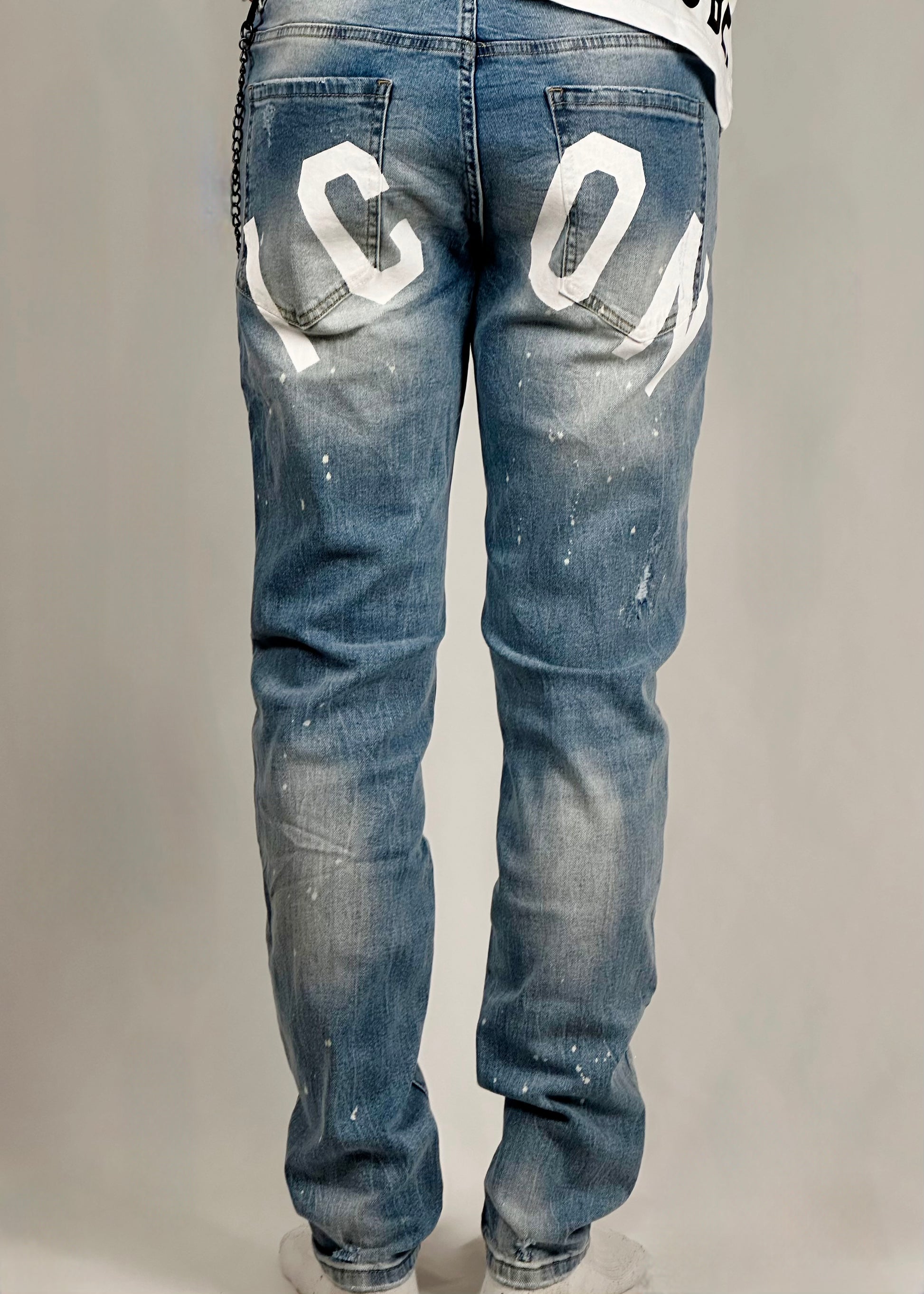 Questi jeans Denim dal design unico sono caratterizzati dalla scritta "icon" sul retro, conferendo un tocco di personalità al classico stile denim a cinque tasche.