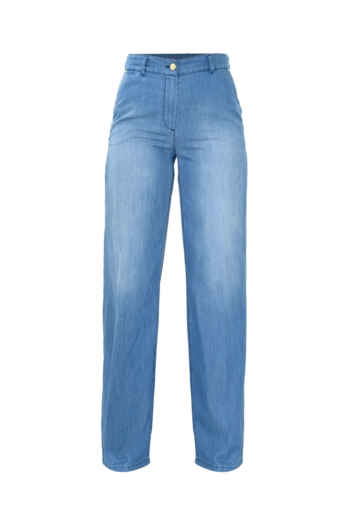 Jeans da donna in cotone misto viscosa con effetto used firmati Kocca. Taglio dritto, vita alta e vestibilità confortevole.