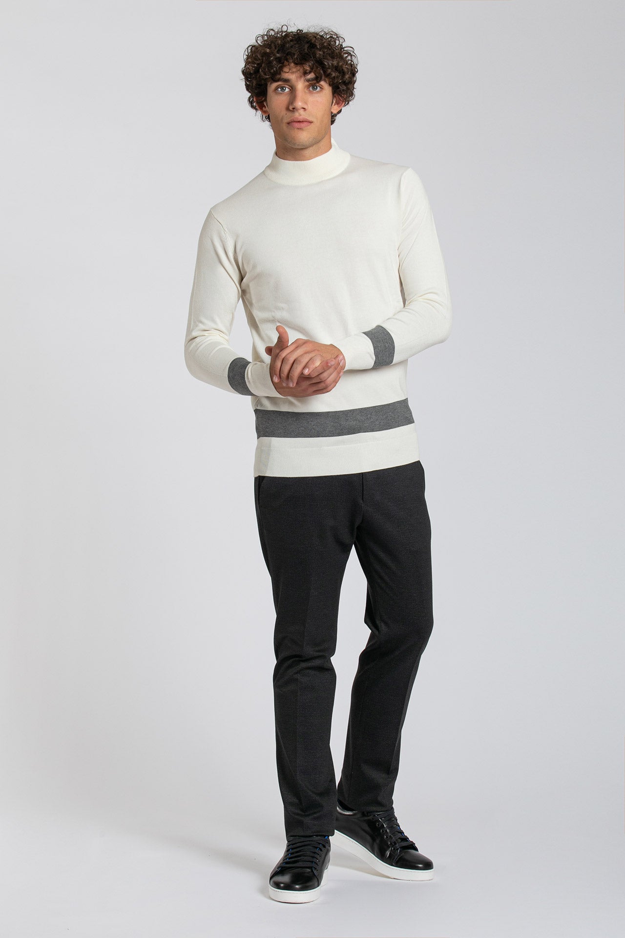 Il maglione a lupetto da uomo presenta un'elegante combinazione di colori grigio e panna, creando un design raffinato e accattivante. Realizzato con una morbida e calda miscela di tessuti, offre un comfort avvolgente nelle giornate più fresche. Il colore grigio conferisce al maglione una sobria versatilità, mentre il panna aggiunge un tocco di luminosità ed eleganza. Il collo a lupetto fornisce un'ulteriore protezione contro il freddo, mentre i dettagli rifiniti con cura contribuiscono a un look sofisticato. Un capo d'abbigliamento versatile, perfetto per aggiungere stile e calore al tuo guardaroba invernale.