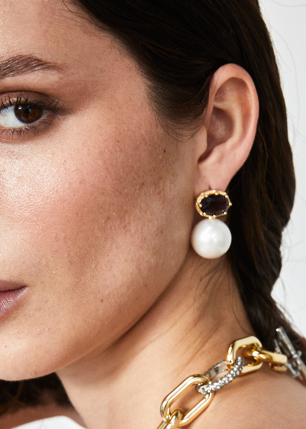 Orecchini pendenti con combinazione di materiali pregiati e design distintivo. Un accessorio raffinato e senza tempo, adatto sia per eventi formali che per aggiungere un tocco di eleganza al look quotidiano.