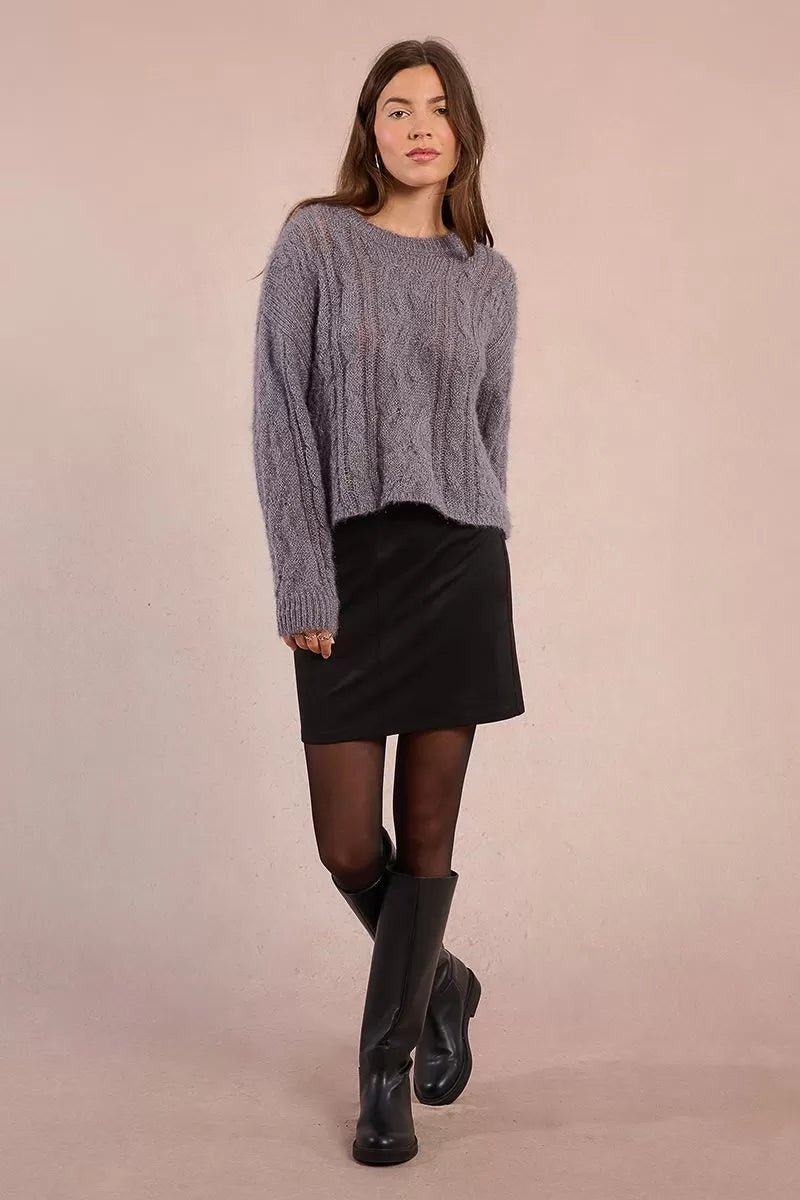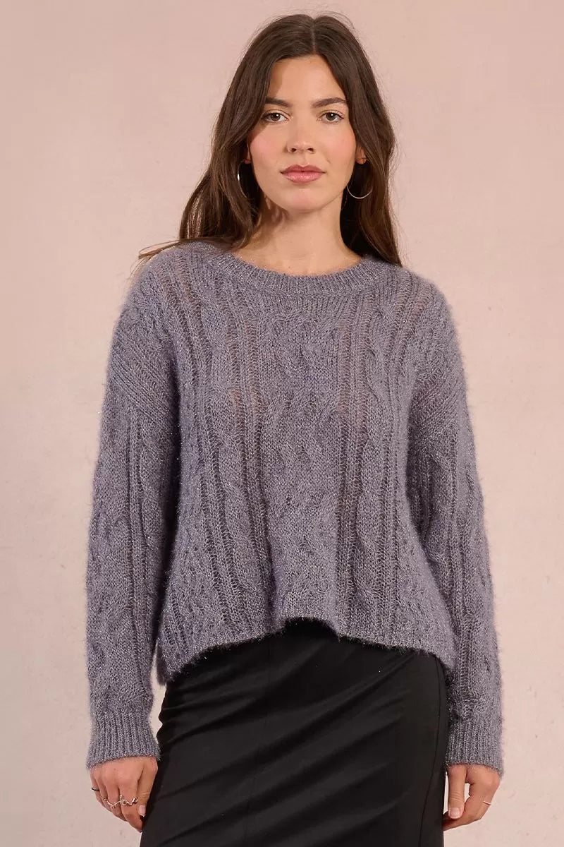 Maglione sottile in maglia a trecce -Leggermente traforato -Giromanica basso -Maniche lunghe -Scollo rotondo -Vestibilità dritta -Lunghezza dalla spalla 55 cm per la taglia S