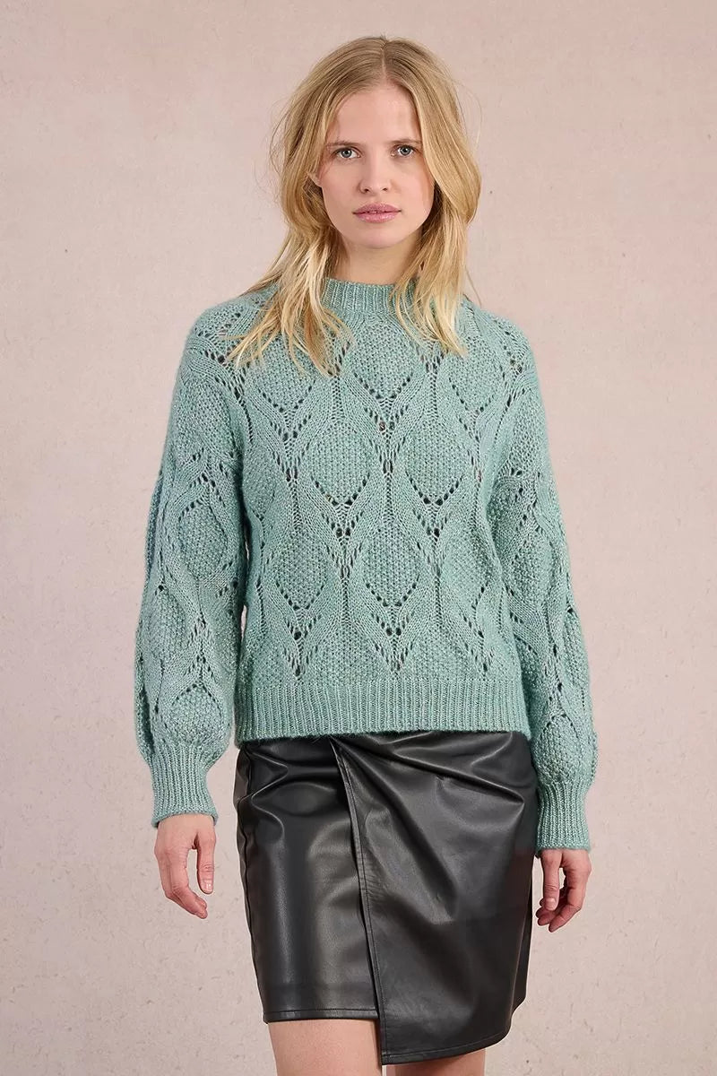Maglione lavorato a maglia traforato con motivo -Maniche lunghe leggermente a palloncino -Scollo rotondo aderente al collo -Vestibilità dritta -Finitura a coste -Lunghezza dalla spalla 55 cm per la taglia S