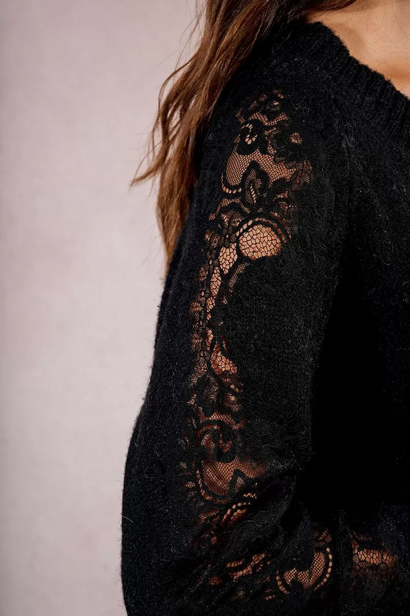 - Maniche lunghe traforate con inserto in pizzo