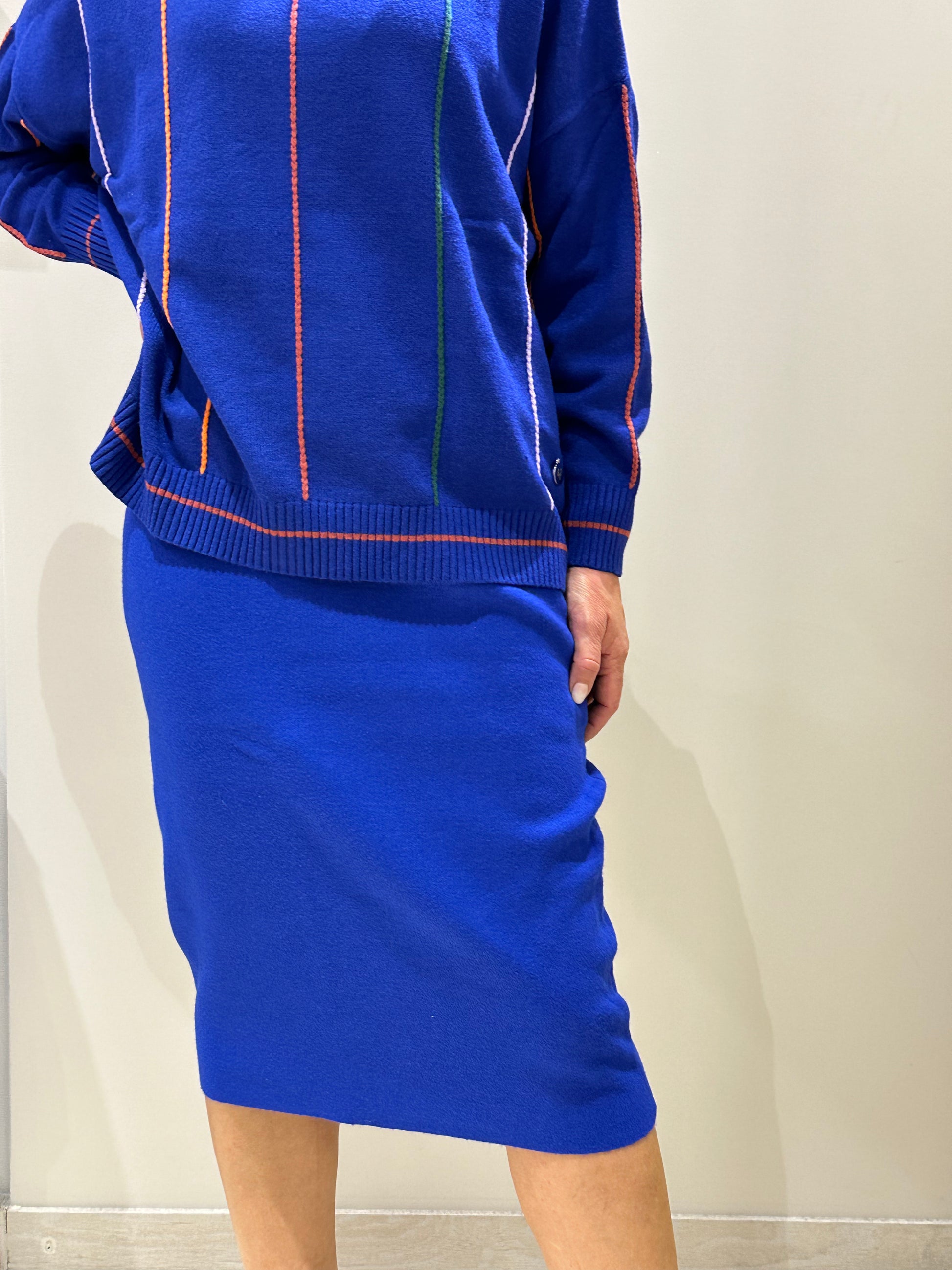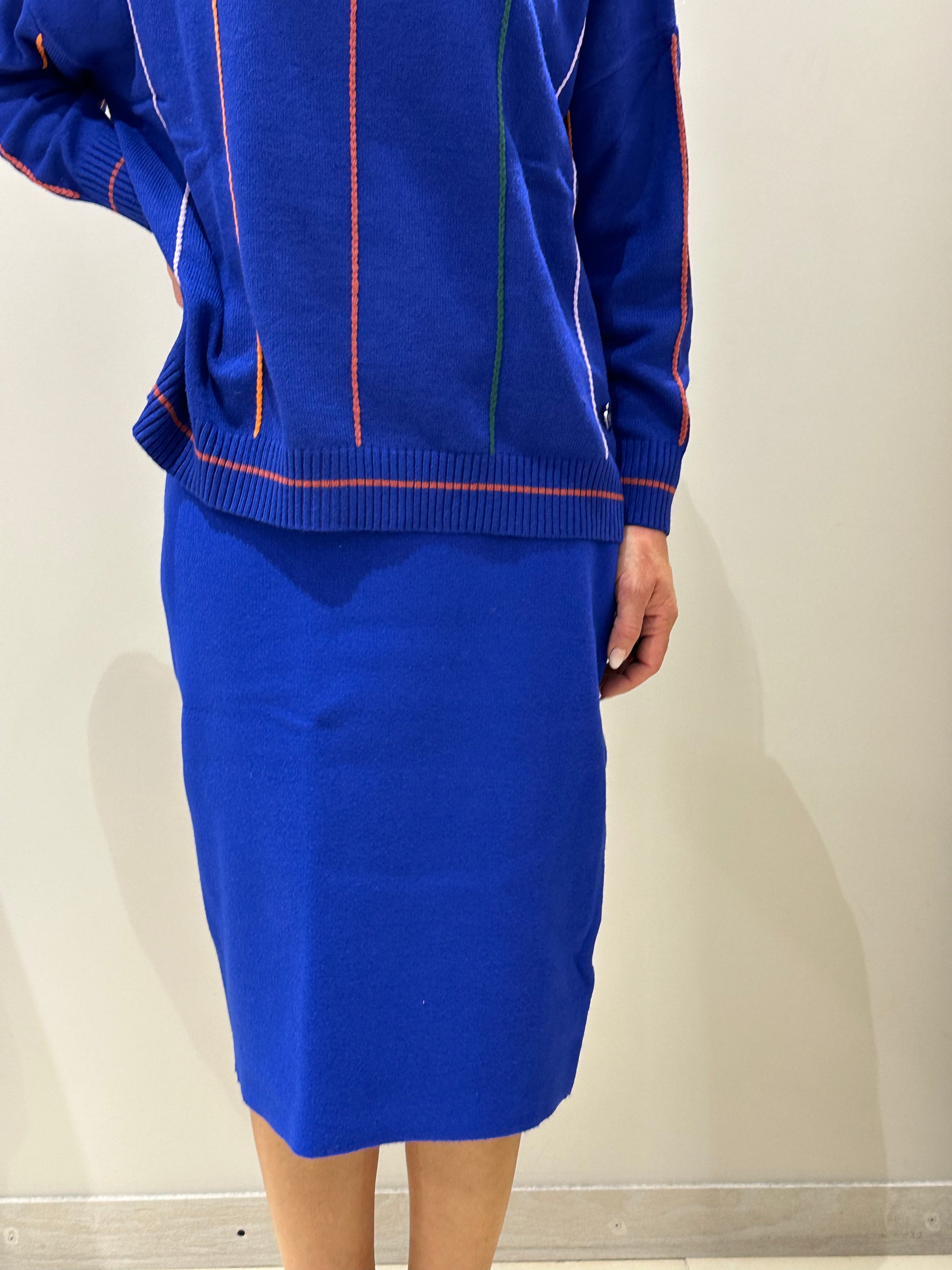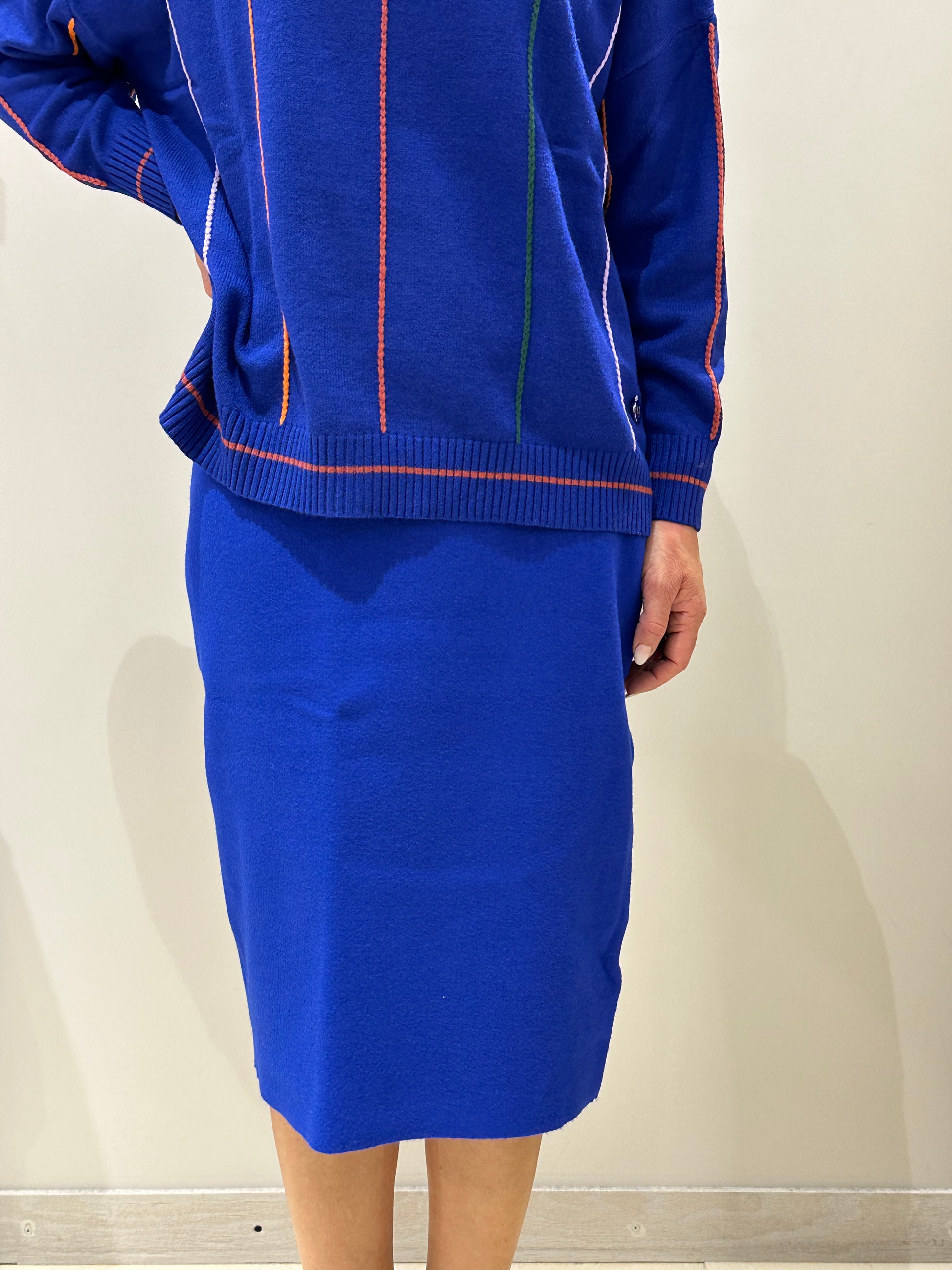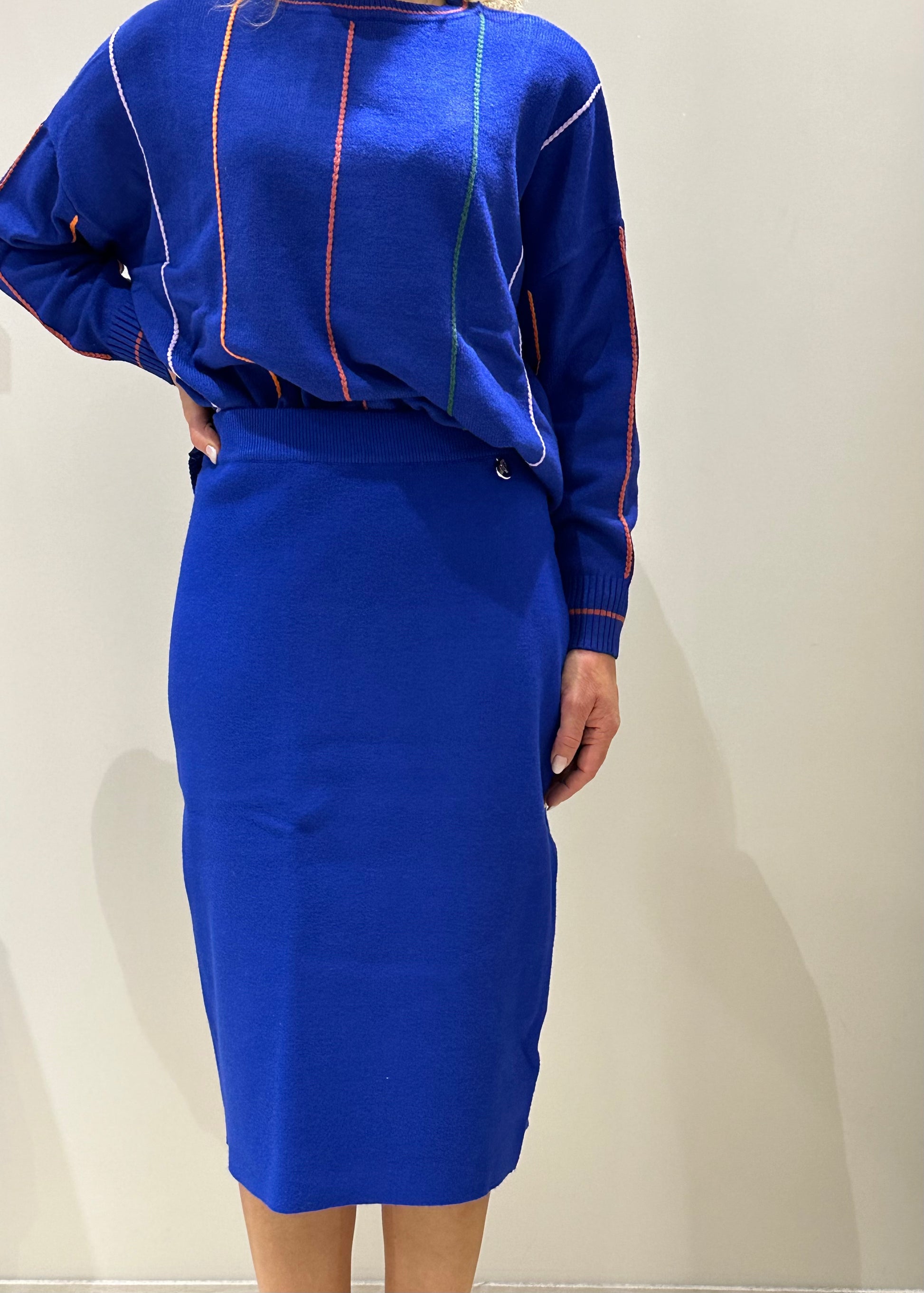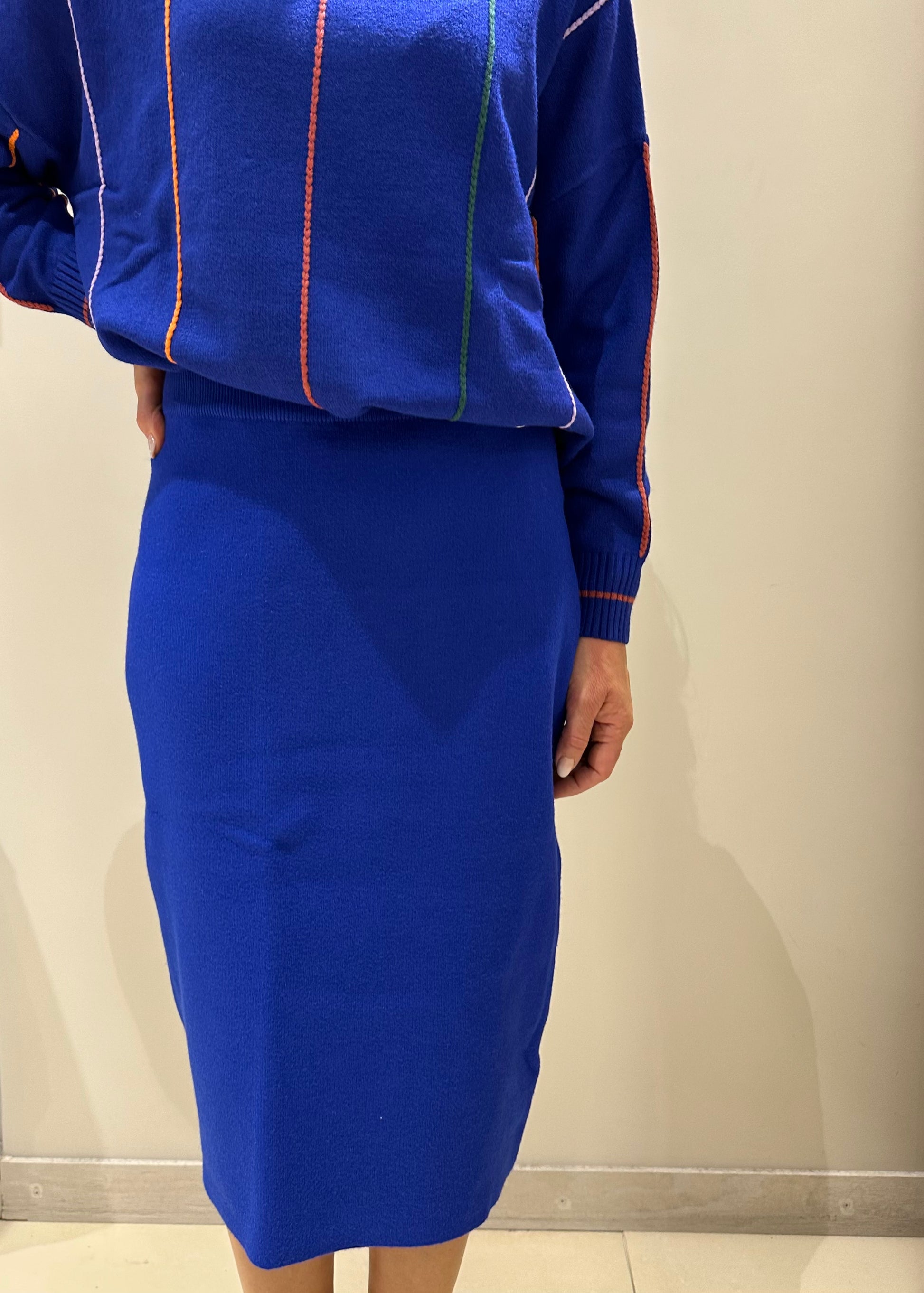 Gonna in maglia dalla vibrante tonalità cobalto, un'esplosione di colore che cattura l'attenzione.