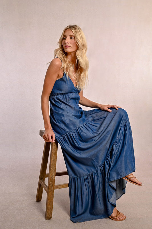 Abito Molly Bracken blu con spallinee scollatura dietro