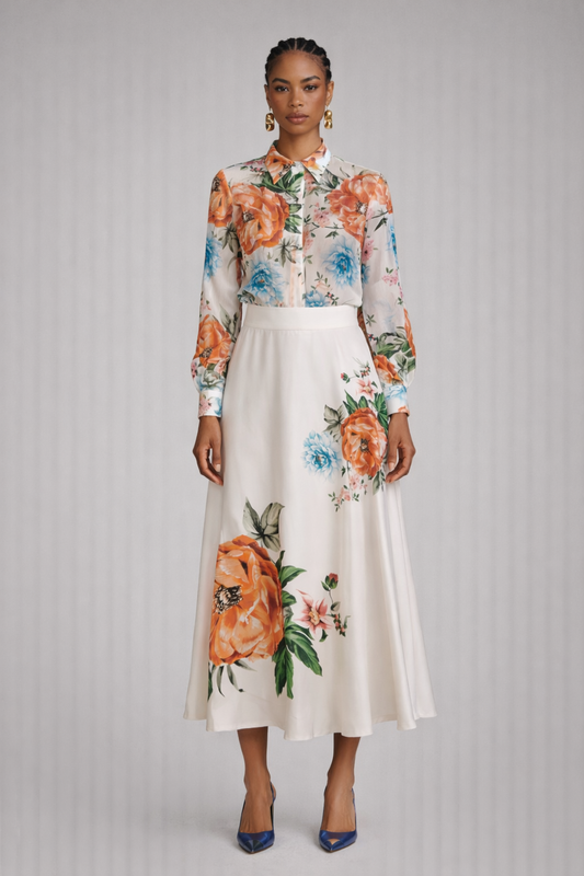 En venteGonna in raso stampato
