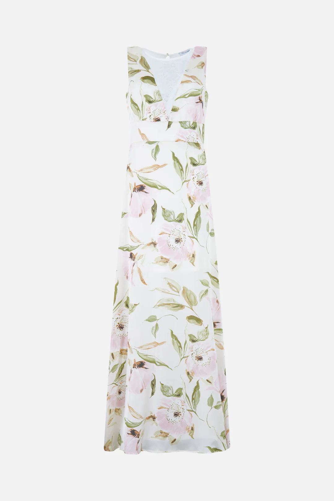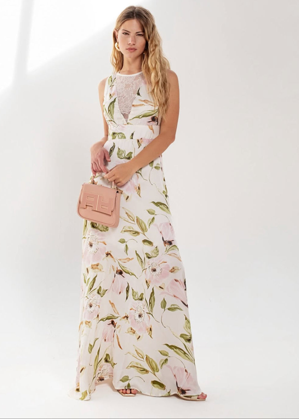 Abito a fantasia coQuesto abito lungo è perfetto per un look elegante e raffinato. Con fantasie di colori neutri e un dettaglio in pizzo trasparente sul seno, si adatta a qualsiasi occasione. Realizzato con tessuti di alta qualità, garantisce comfort e stile. Riempi il tuo guardaroba con questo capo versatile e di tendenza.