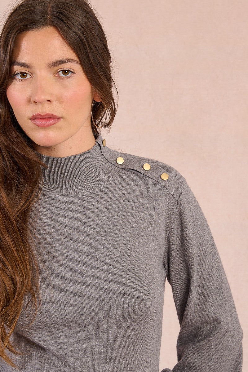 Abito in maglia -Maniche a palloncino, polsini elasticizzati -Colletto semi-in piedi -Abbottonatura sulla spalla -Vestibilità aderente -Lunghezza dalla spalla 90 cm per la taglia S
