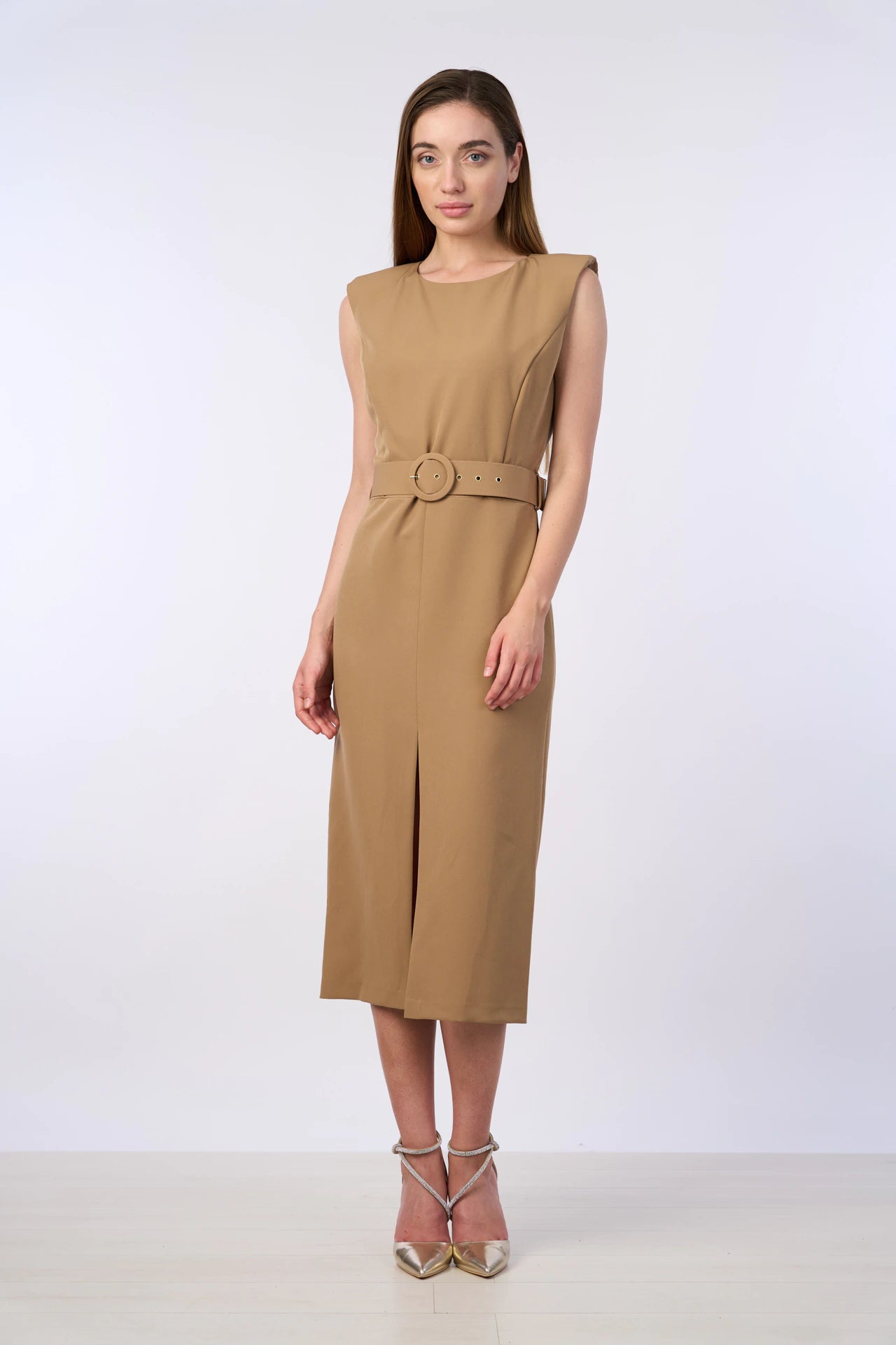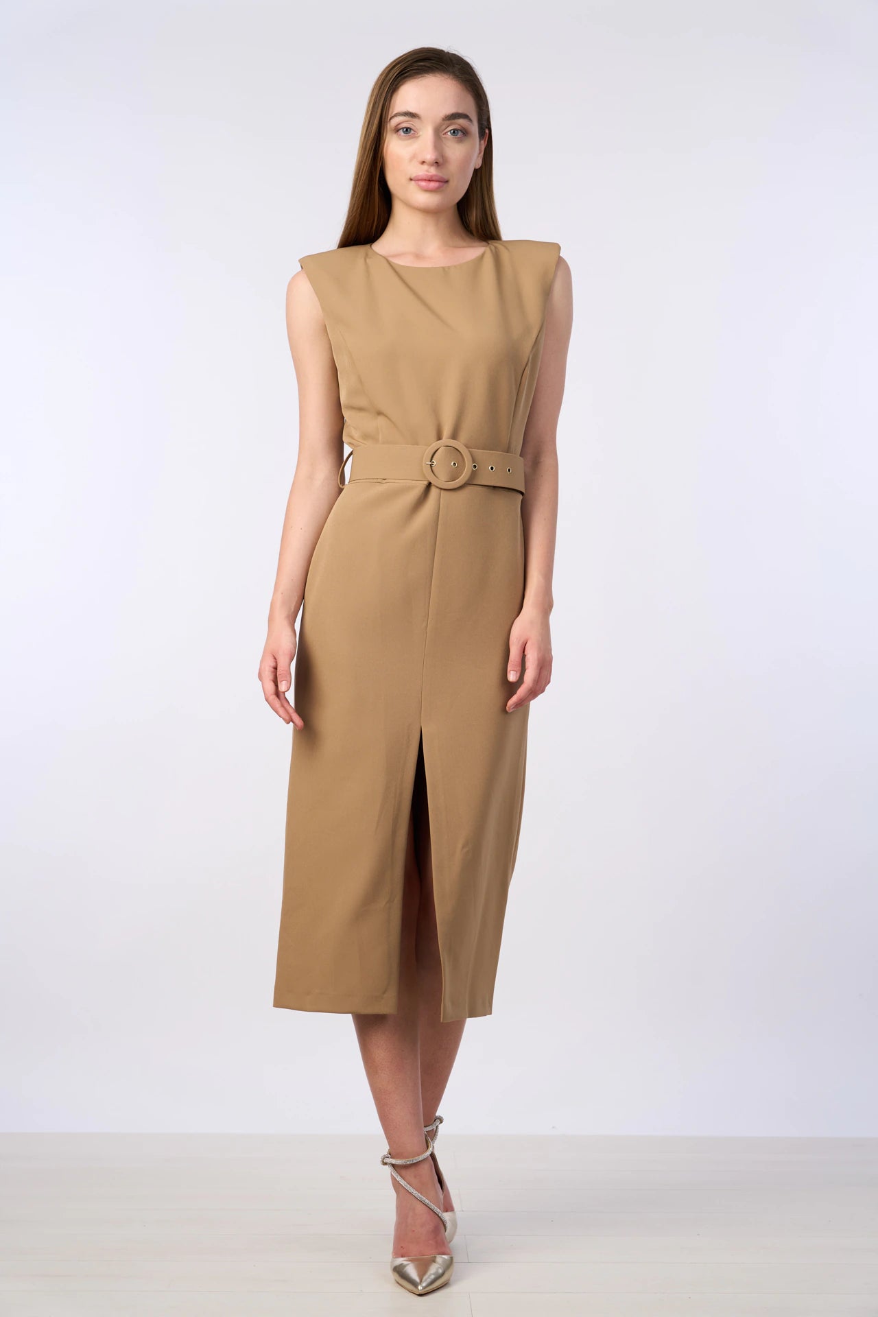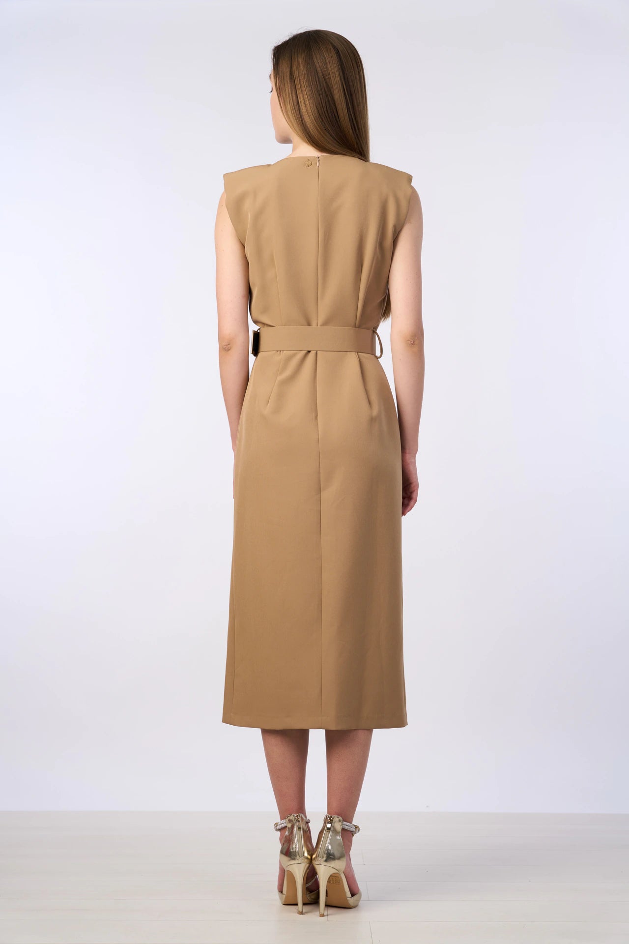 Abito smanicato con cintura