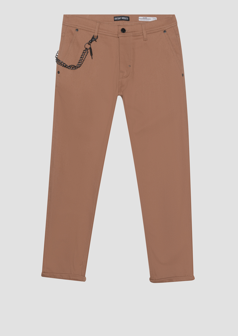 PANTALONI SLIM FIT “OLIVER” ALLA CAVIGLIA IN MORBIDO TWILL DI COTONE STRETCH