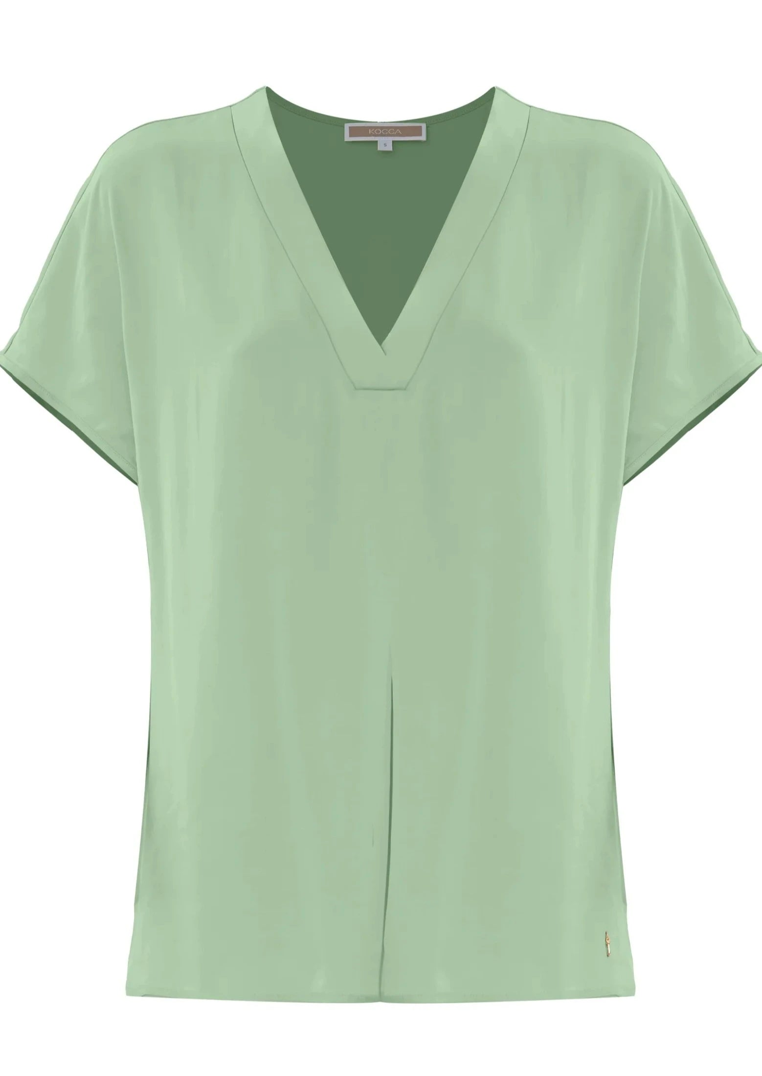 Blusa in viscosa a maniche corte dallo stile minimal firmata Kocca, con scollo a V e piega sul davanti.
