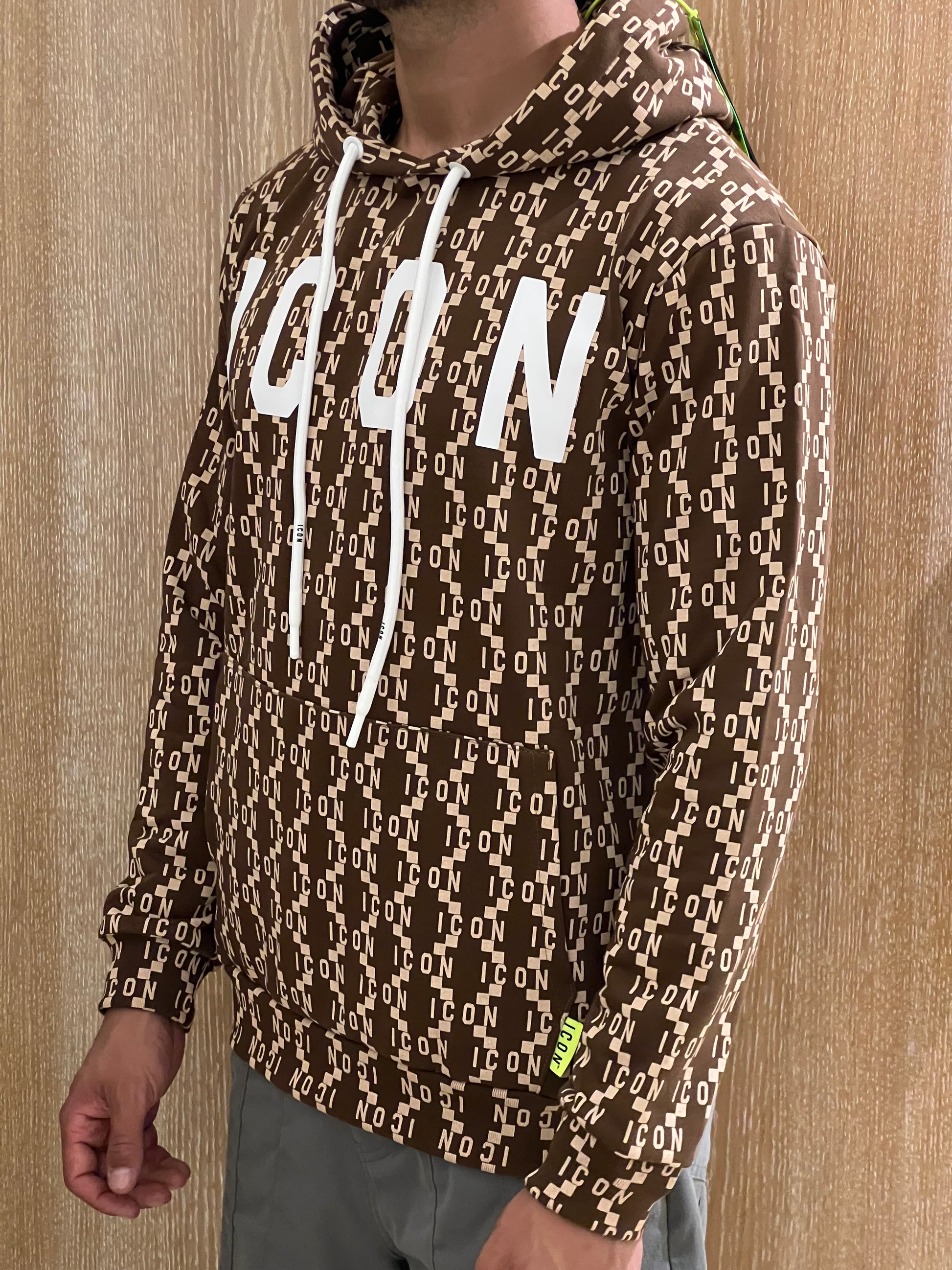 Questa felpa icon è un capo di grande impatto, perfetto per chi ama distinguersi con stile. Il design presenta un elegante monogramma marrone su tutta la superficie, impreziosito da dettagli beige che creano un contrasto sofisticato e di tendenza. Al centro spicca la scritta “ICON” in bianco, che aggiunge un tocco moderno e audace al look. Realizzata in morbido cotone, la felpa offre comfort e versatilità, ideale per outfit casual o streetwear. È disponibile anche nella variante bianca e nera, per un’opzione più classica e contemporanea. Un capo iconico che unisce lusso e praticità.
