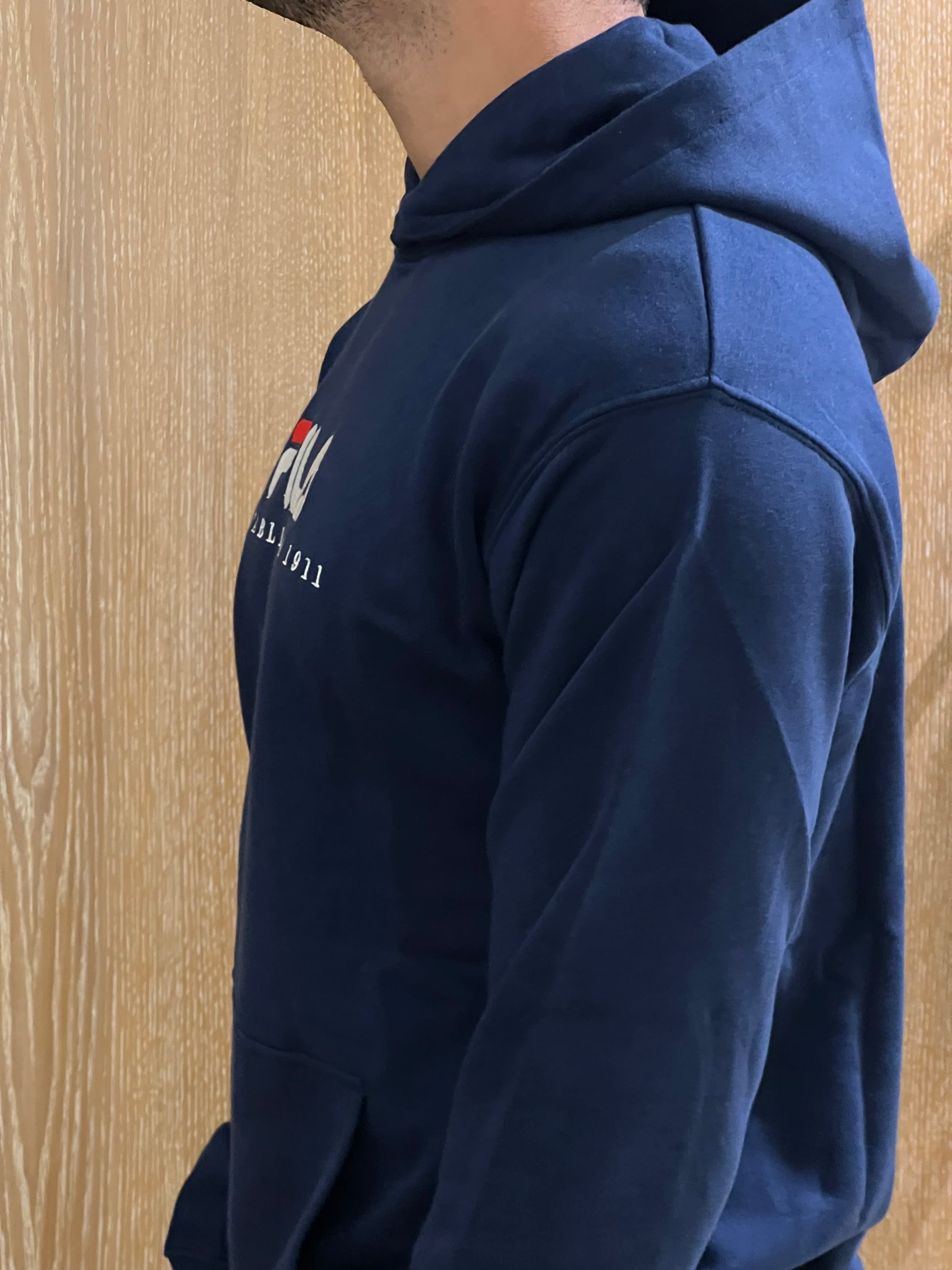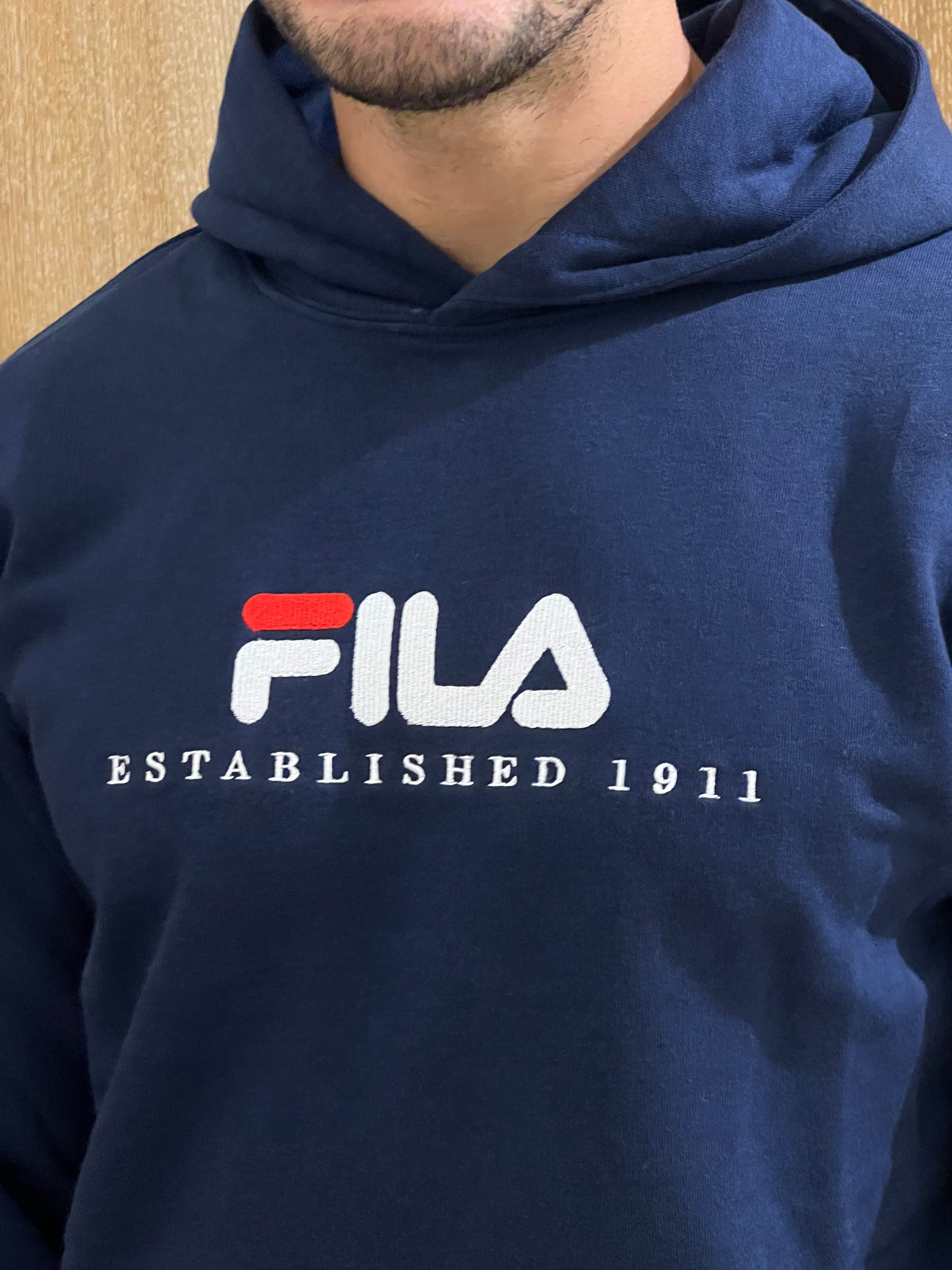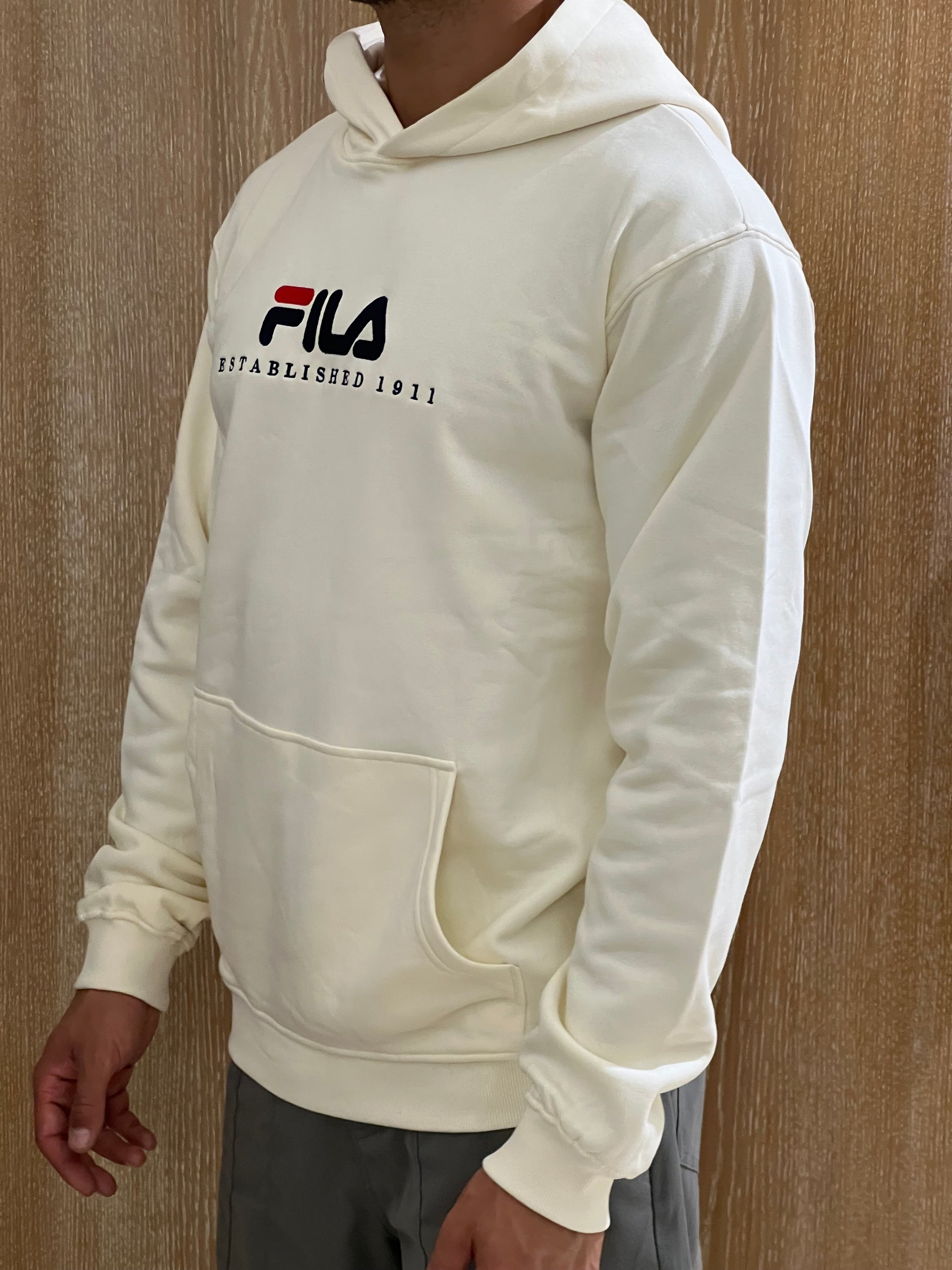 Classica felpa con cappuccio Fila, realizzata in morbido cotone misto per offrire comfort e uno stile casual impeccabile. Il logo Fila “Established 1911” è stampato sul petto, evidenziando il design iconico del brand. Presenta un tascone frontale e polsini a costine, perfetti per mantenere il calore nelle giornate più fresche. Disponibile nei colori blu navy e bianco panna, è l’ideale per uno stile sportivo e casual.