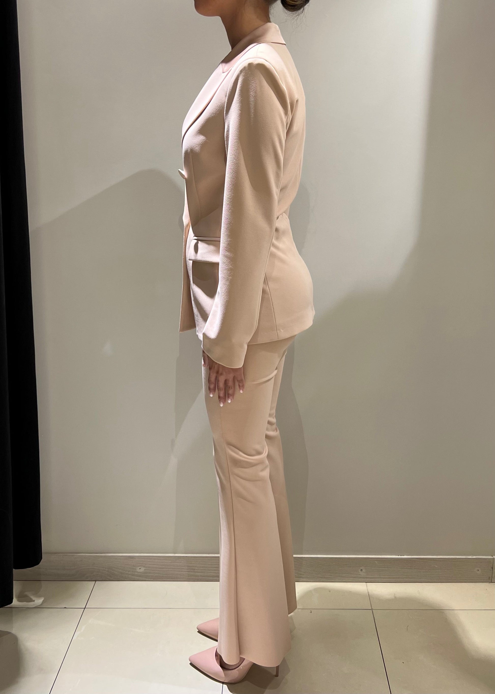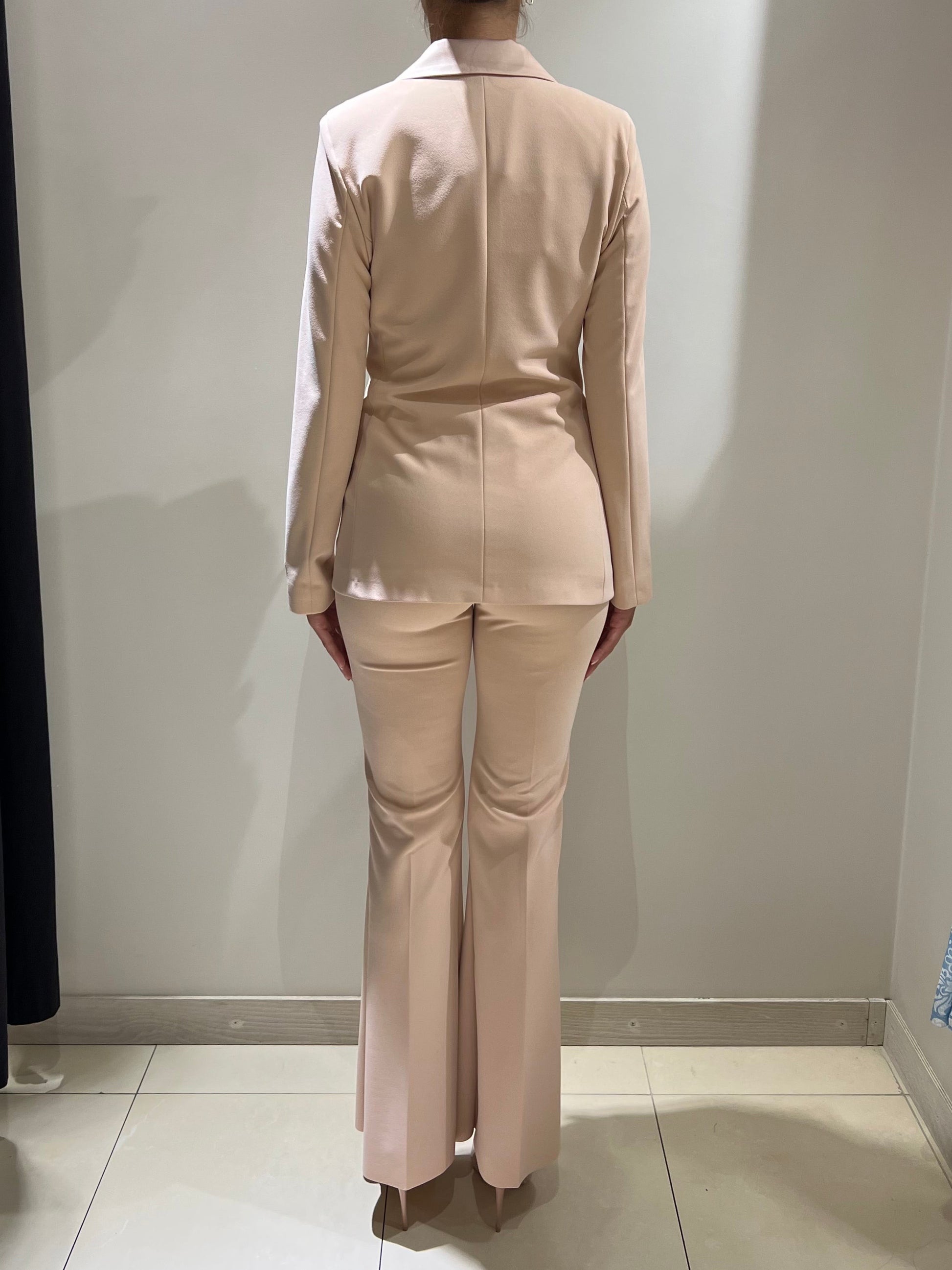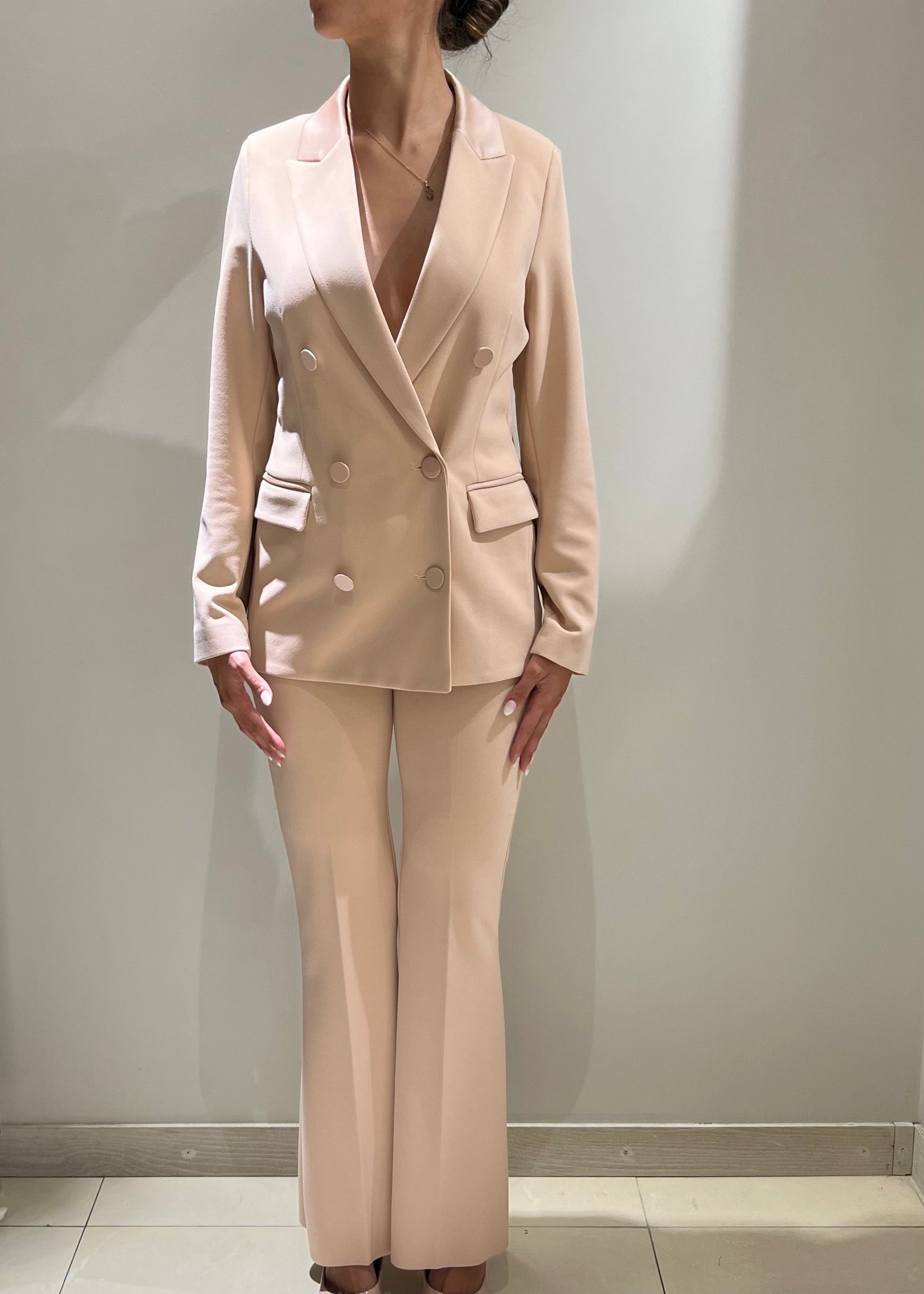 Blazer con colletto a revers in raso. Maniche lunghe e tasche con patta con dettaglio in raso frontali. Chiusura frontale a doppiopetto con bottoni.