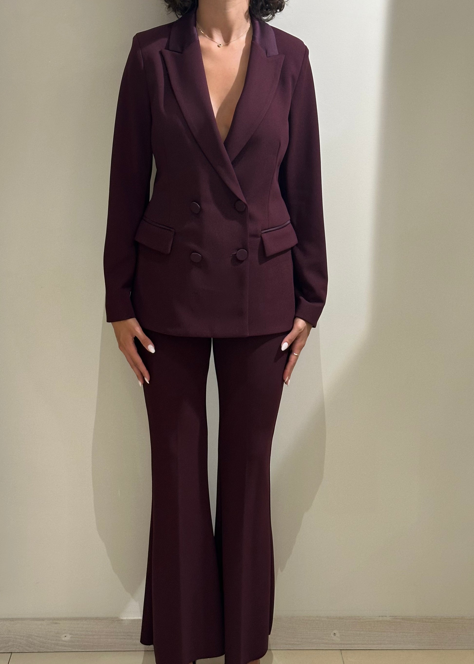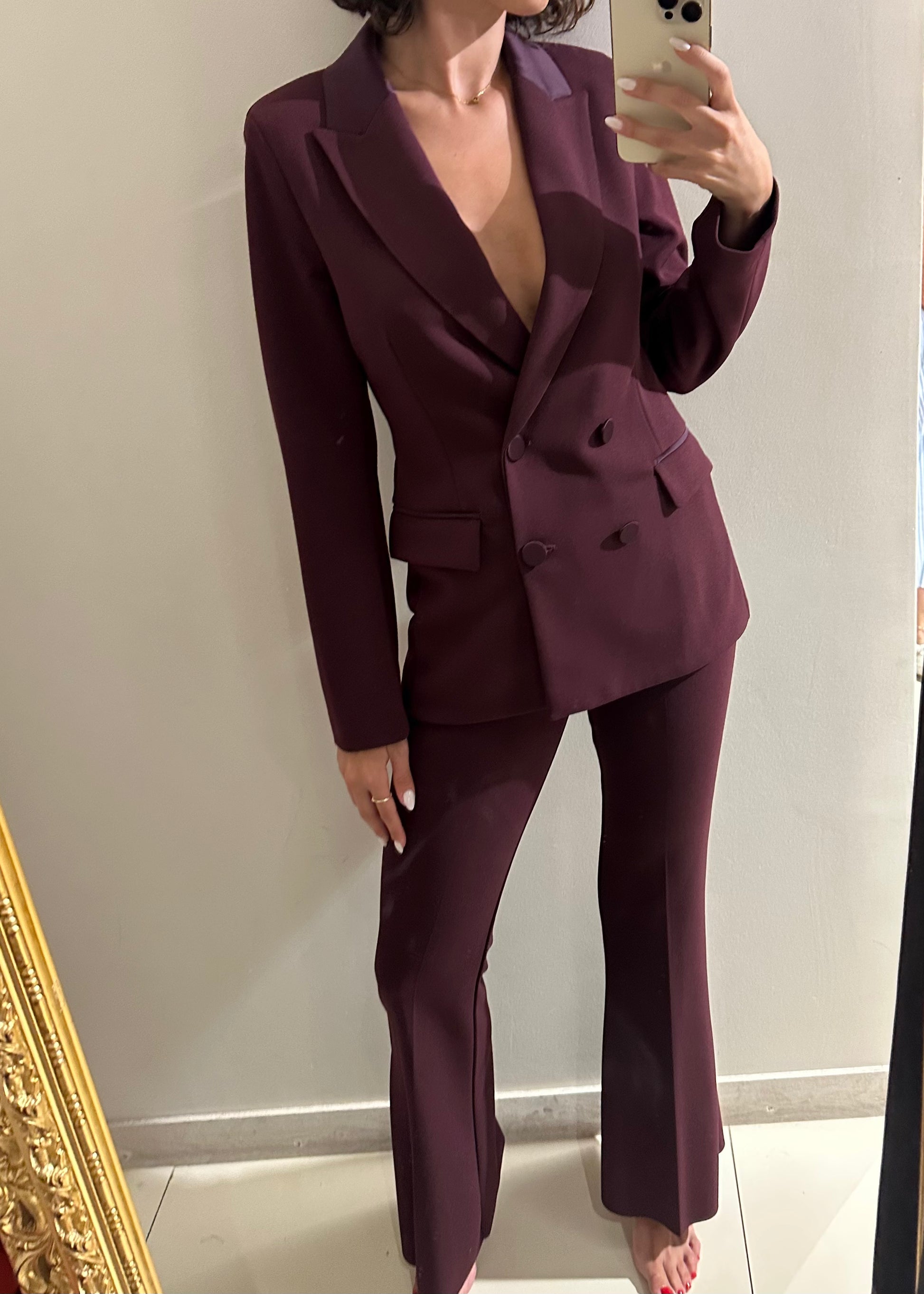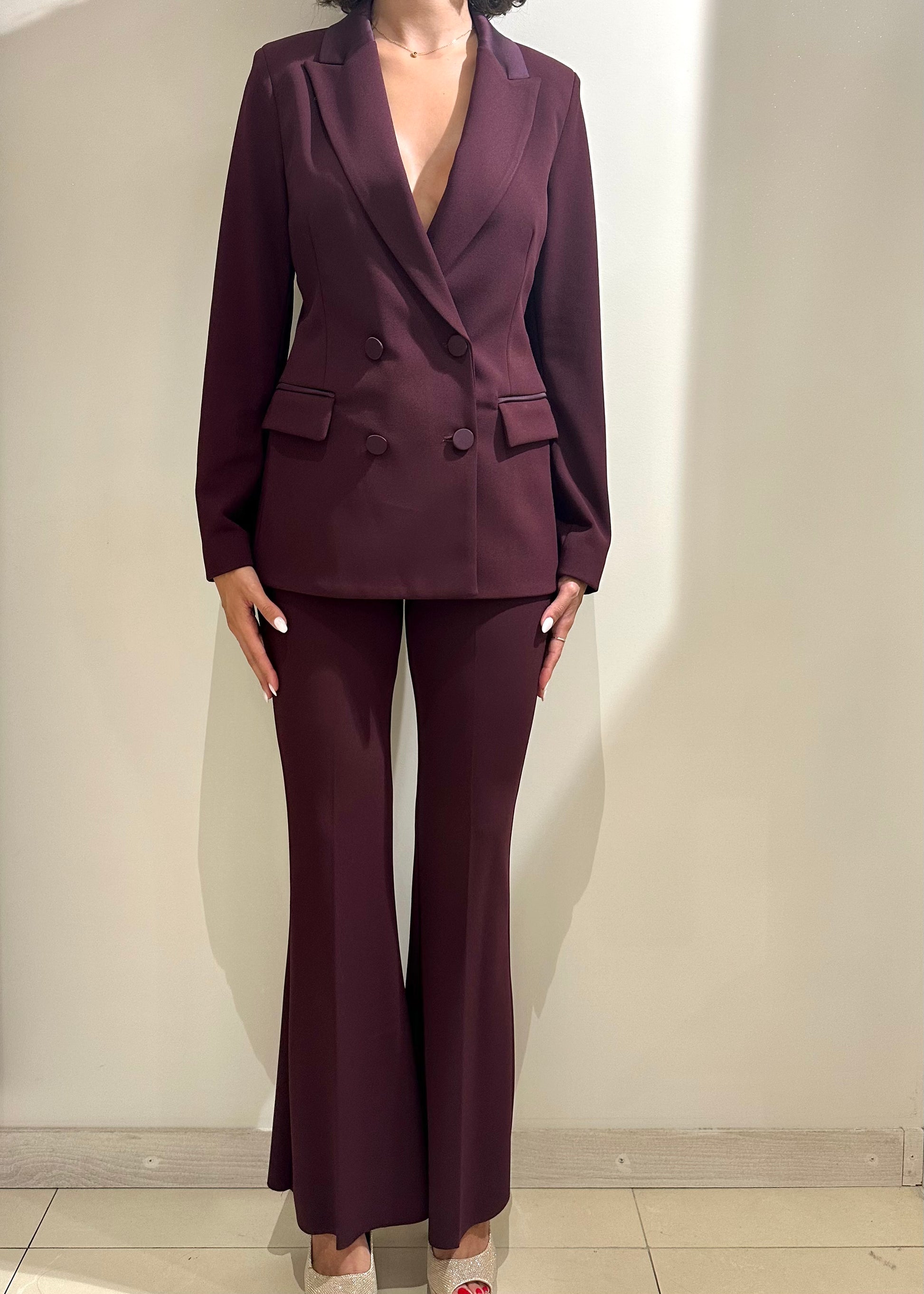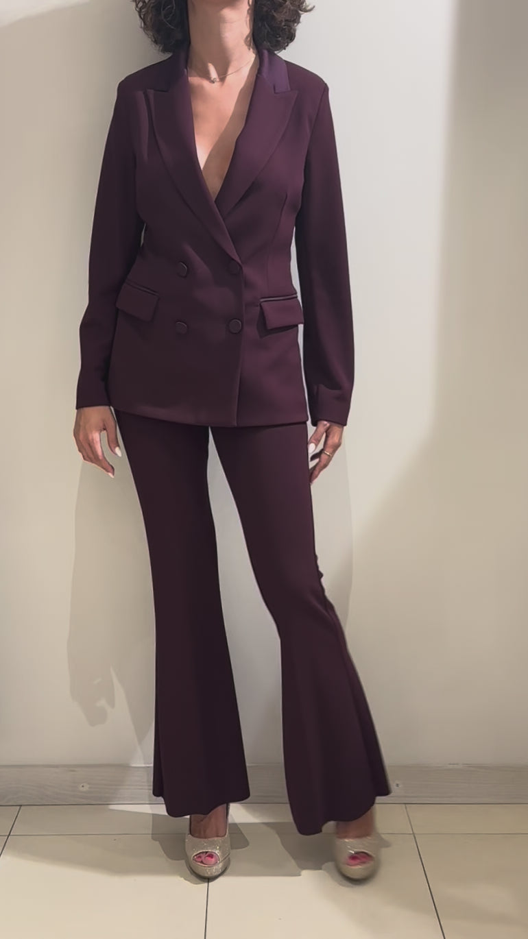 VICOLO Giacca doppiopetto. Ha un taglio sartoriale con rever in raso e chiusura doppiopetto a sei bottoni tono su tono, che donano un effetto raffinato e minimal. Presenta tasche laterali a pattina e maniche lunghe dal design lineare. La vestibilità è dritta e leggermente strutturata, perfetta sia in coordinato con i pantaloni abbinati, sia per look sofisticati da giorno o da sera. La modella indossa una taglia S ed è alta 170cm. Si consiglia una stiratura a media temperatura. Stagione autunno inverno.