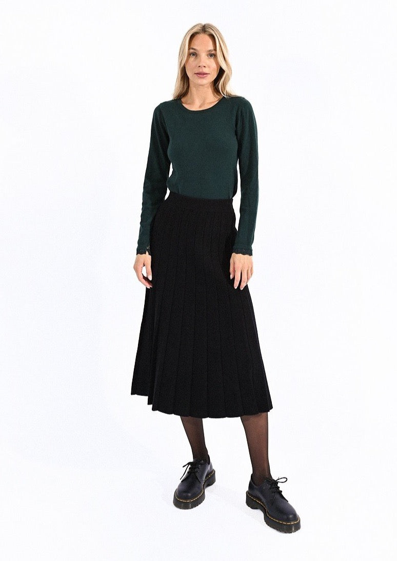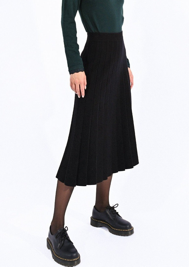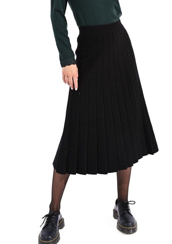 Gonna lunga a pieghe in maglia a vita alta