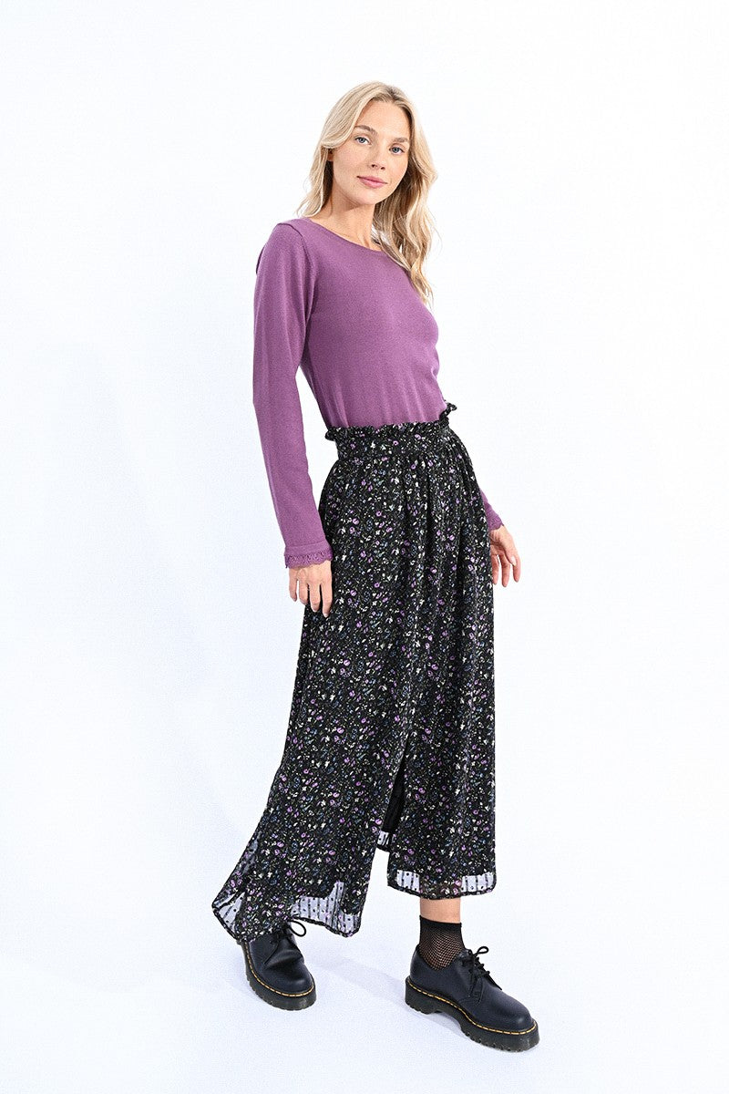 Maglione in maglia fine e morbida, polsini a fessura con fascia di pizzo.