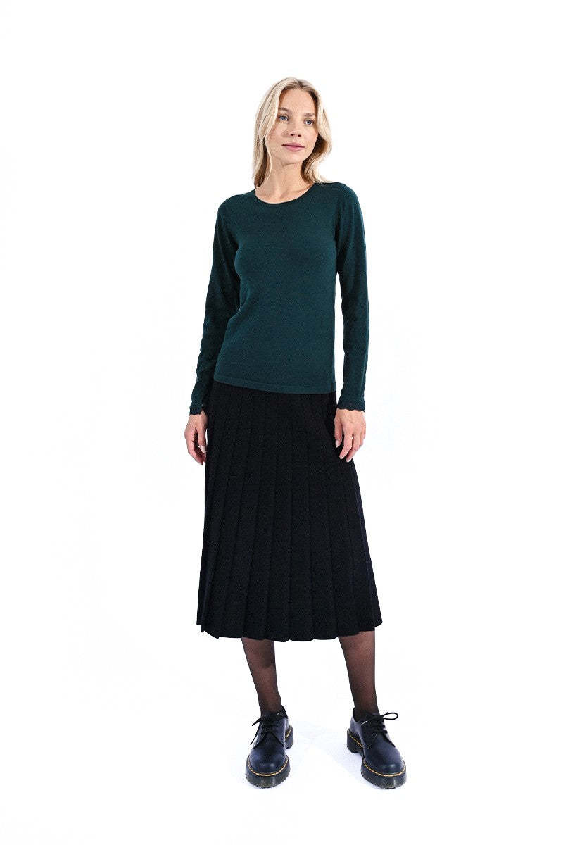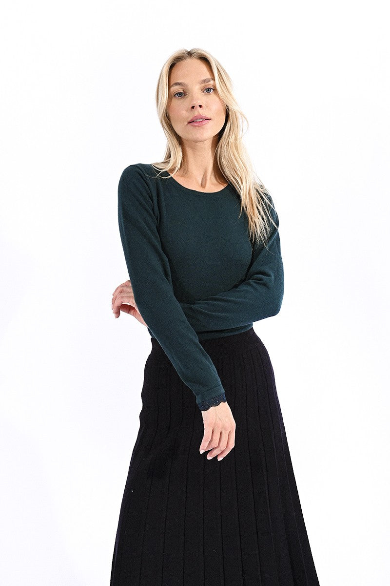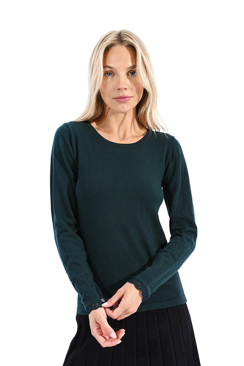 Maglione in maglia fine e morbida, polsini a fessura con fascia di pizzo.