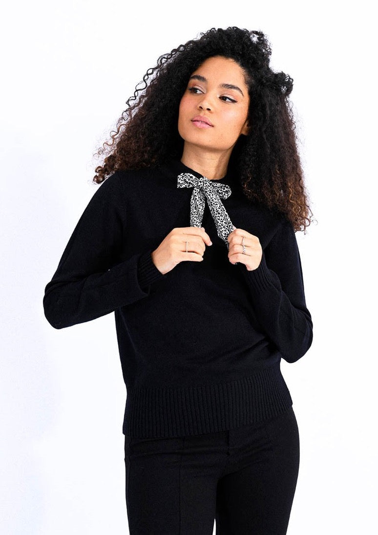 Maglione classico in maglia morbida, ampio bordo a coste e maniche lunghe, Foulard da legare