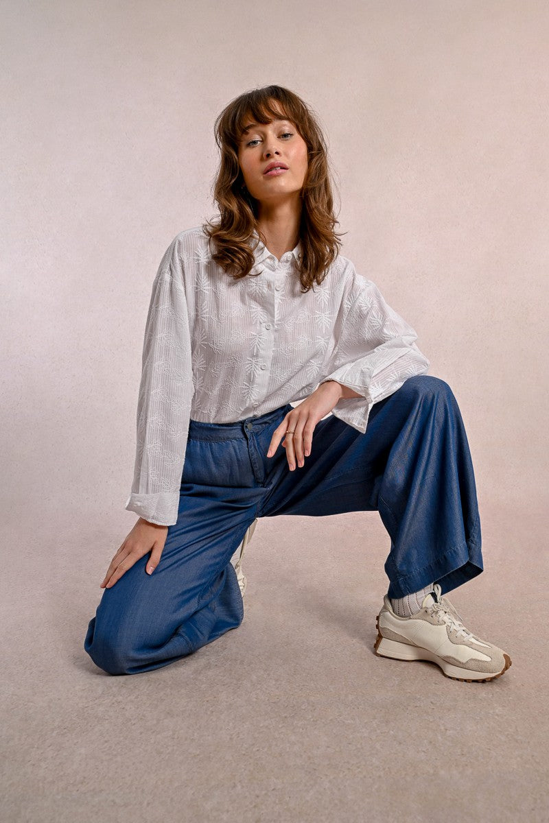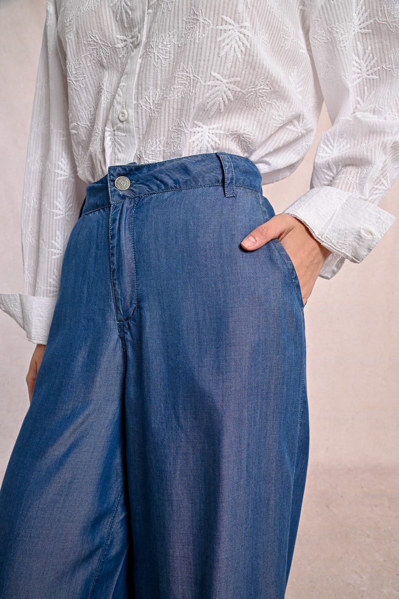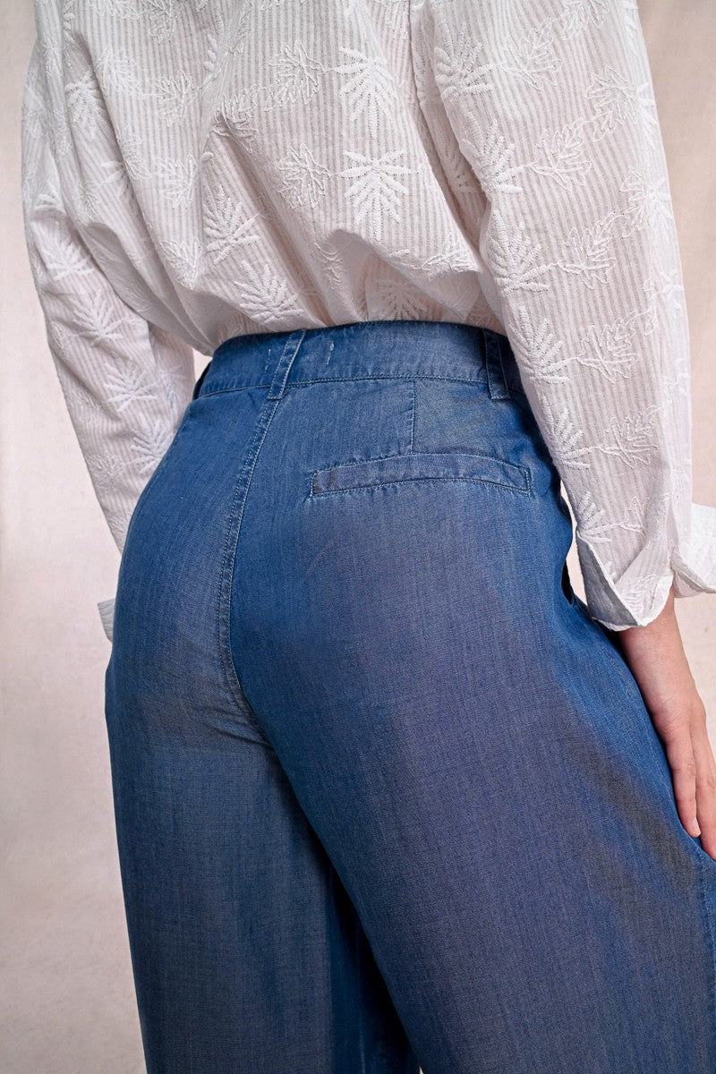 Pantaloni larghi e fluidi in lyocell - Vita alta - Tasche laterali - Chiusura con cerniera e bottone - Profilo decorativo sul retro - Lunghezza laterale 104 cm per la taglia S