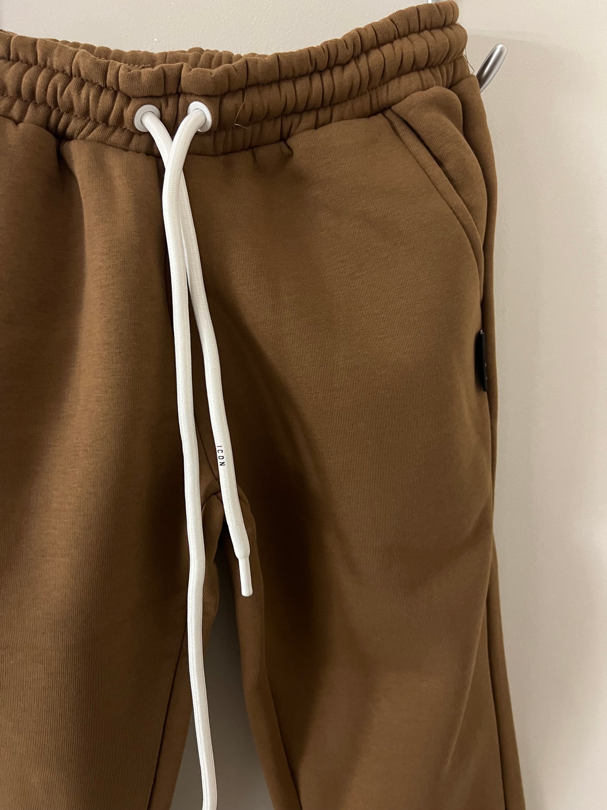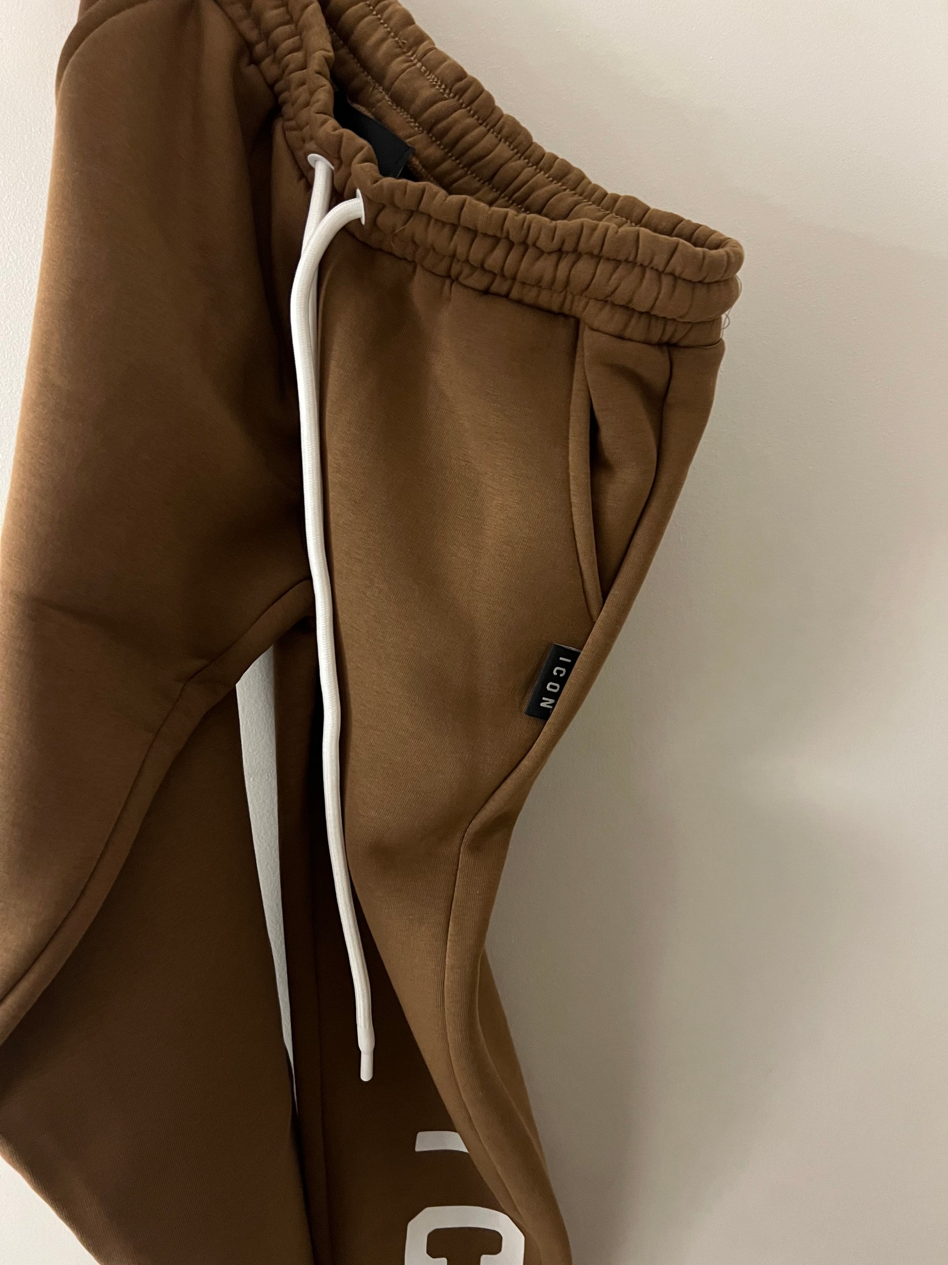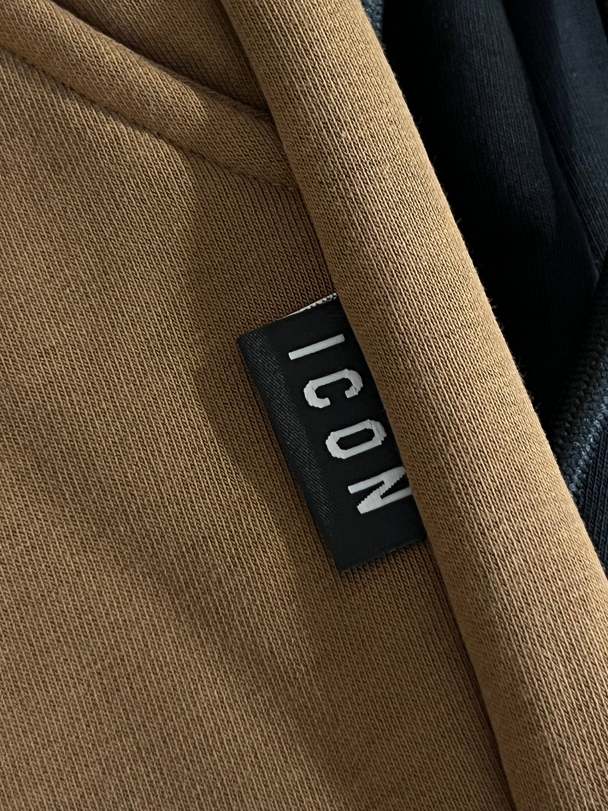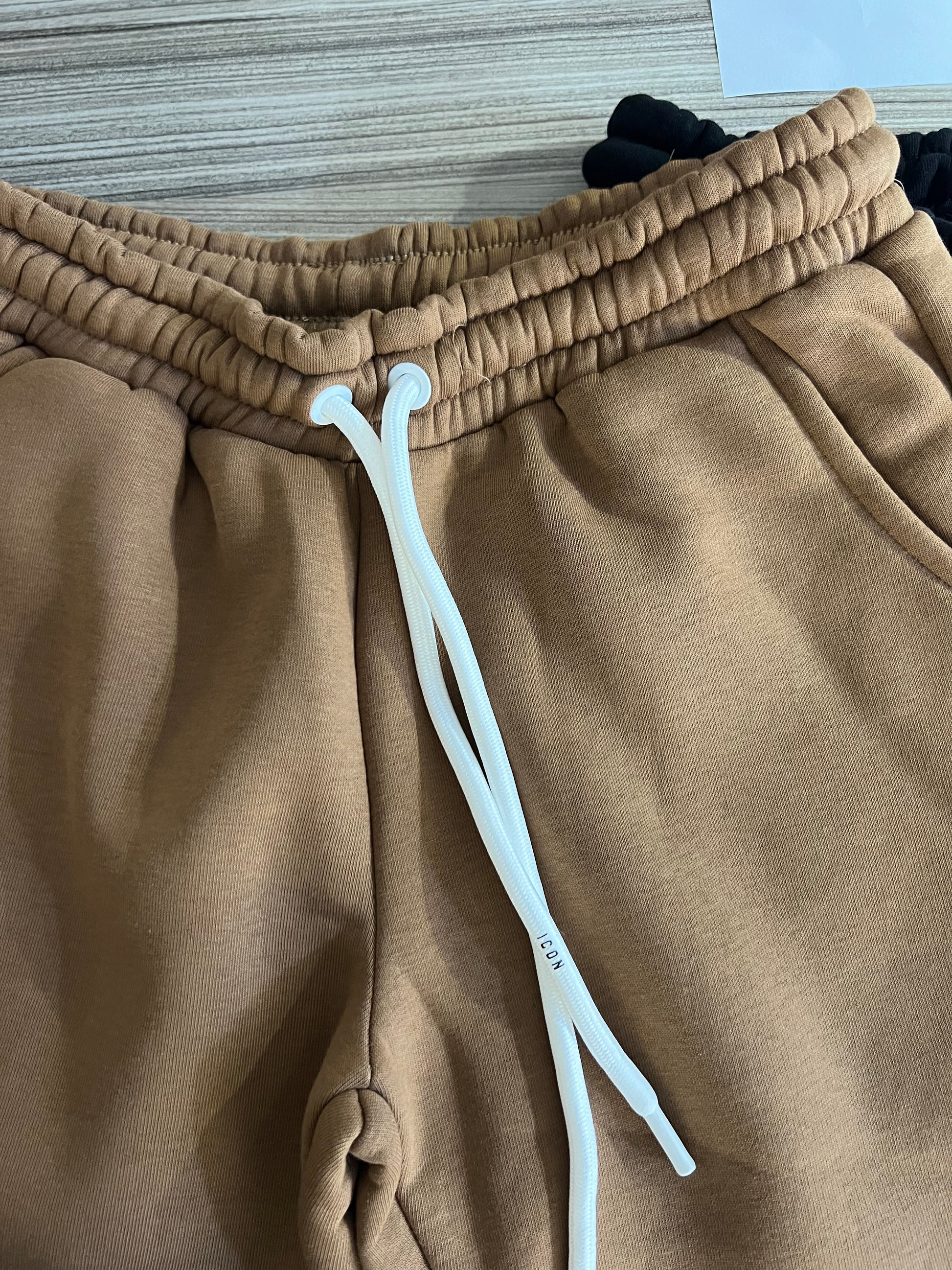 Pantalone in felpa dallo stile casual e versatile, disponibile in due varianti di colore: nero e marrone. Realizzato in tessuto morbido e confortevole, ideale per il tempo libero e le attività quotidiane. La vestibilità è regolare, con vita elasticizzata e cordoncino regolabile per un comfort personalizzato. Il dettaglio distintivo è la stampa “ICON” in caratteri grandi e bianchi sul lato, che conferisce un tocco moderno e di tendenza. Le tasche laterali completano il design, rendendolo pratico e funzionale. Perfetto per creare look sportivi o casual.
