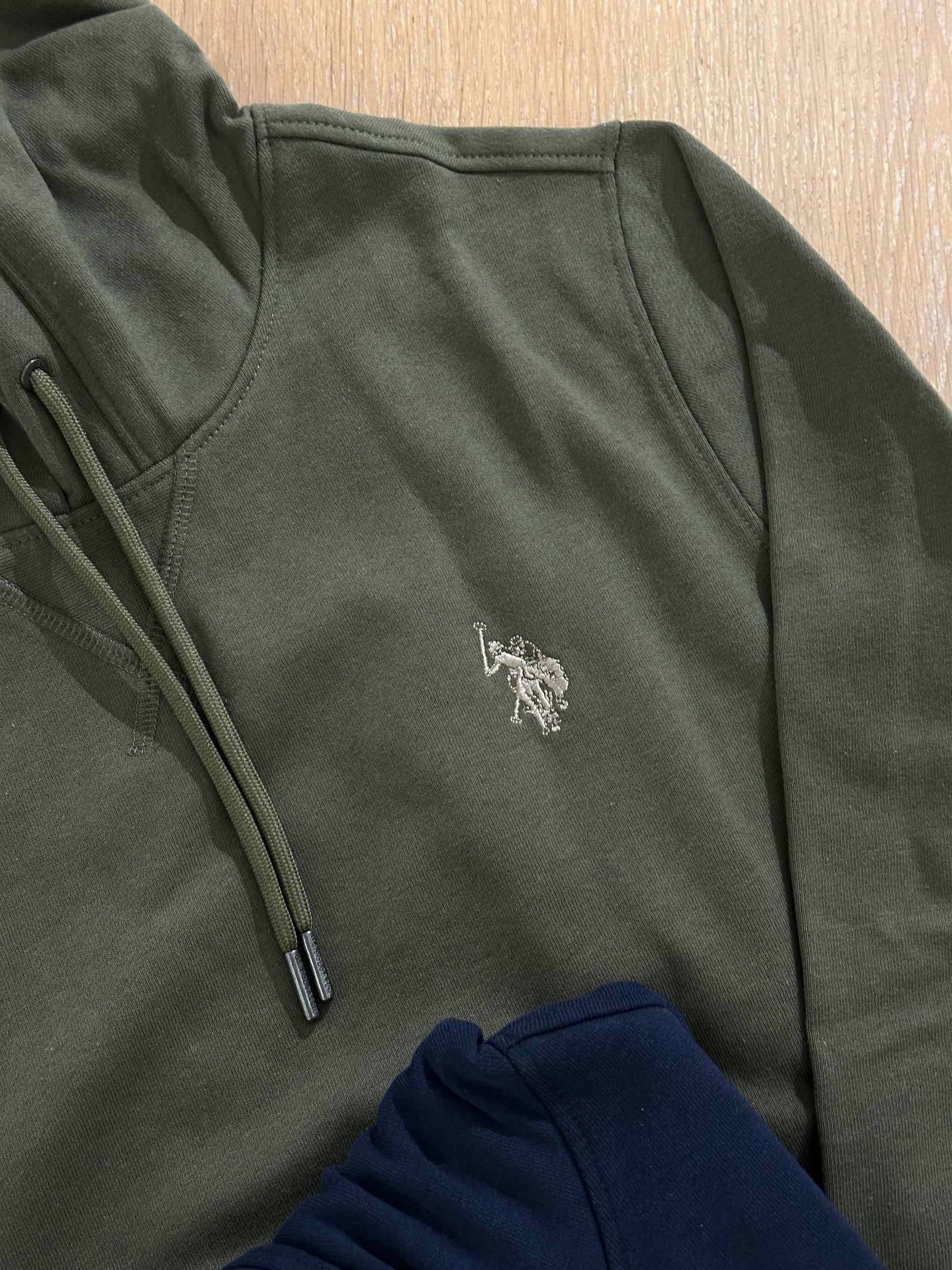 Felpa us Polo assn, disponibile nella variante verde militare e blu.
