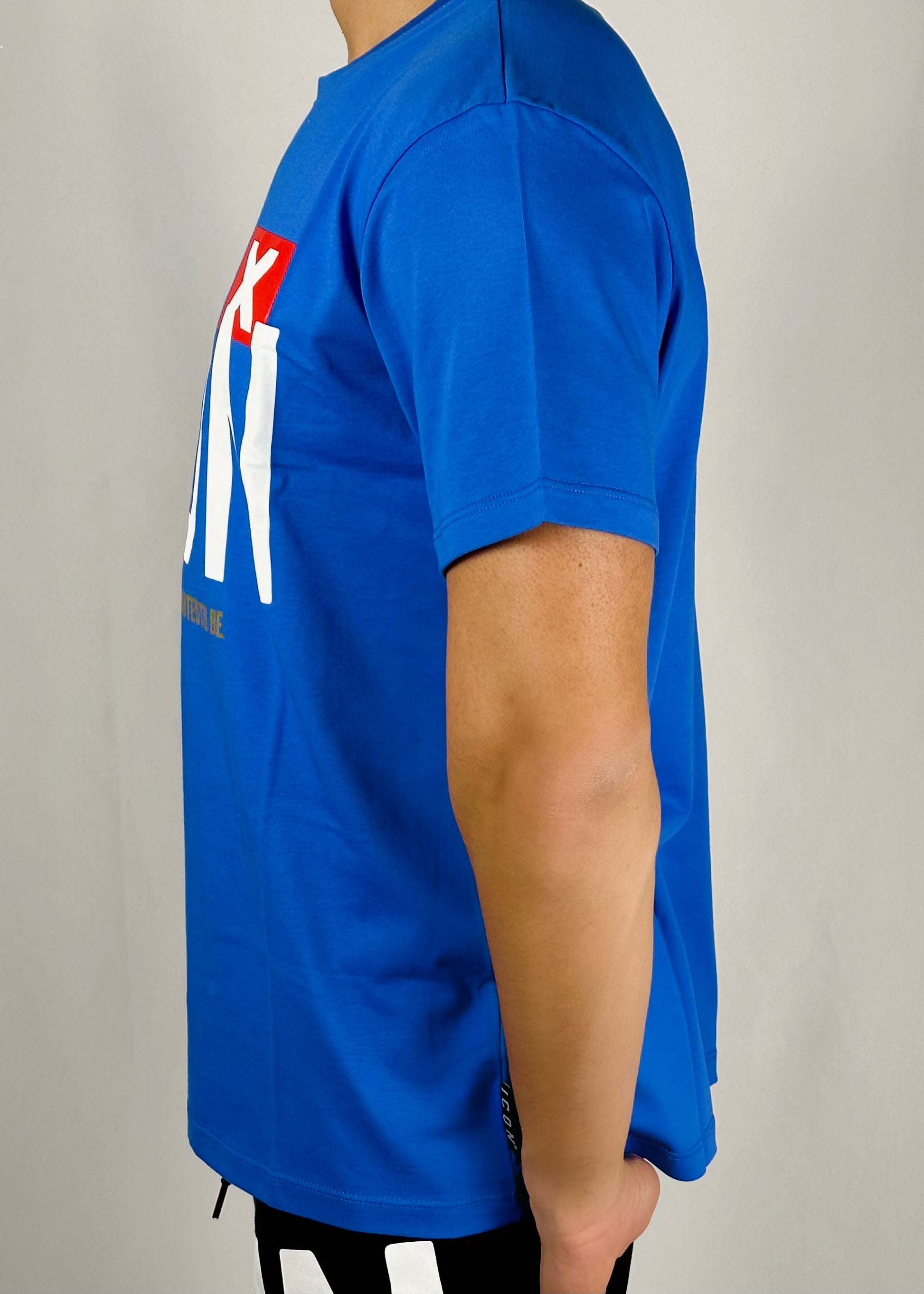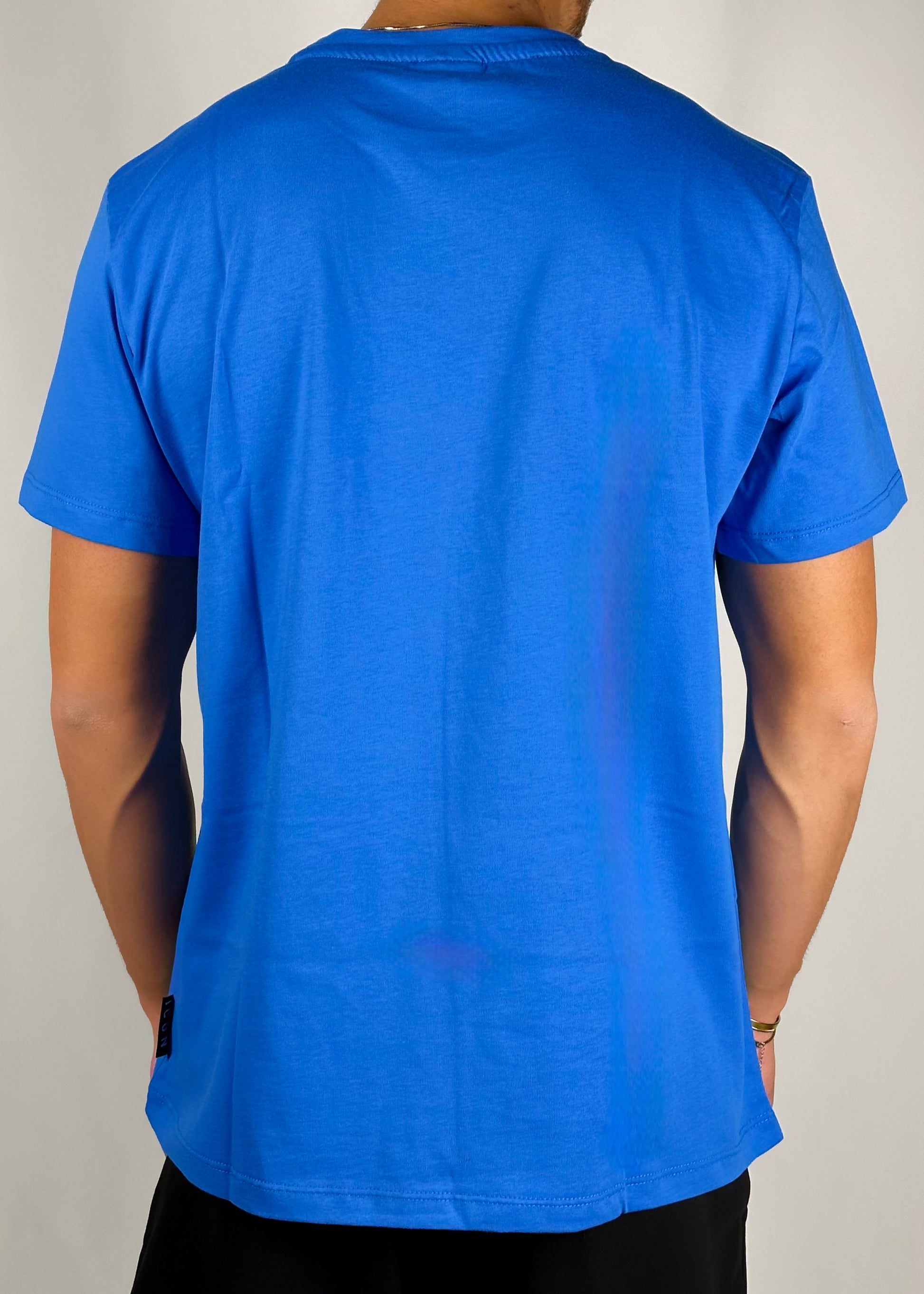 La t-shirt blu Royal con scritta bianca e dettagli rossi è un capo che unisce eleganza e vivacità in modo armonioso. Il colore blu Royal conferisce profondità e regalità al capo, mentre la scritta bianca, posizionata con cura, aggiunge un tocco di contrasto e chiarezza al design complessivo. I dettagli rossi, distribuiti strategicamente sulla maglietta, creano un effetto visivo dinamico e accattivante, catturando l'attenzione in modo sottile ma deciso. Questa combinazione di colori e dettagli rende la t-shirt adatta a molteplici occasioni, dall'abbigliamento casual al look più sofisticato. Indossarla significa abbracciare lo spirito della moda con stile e personalità.