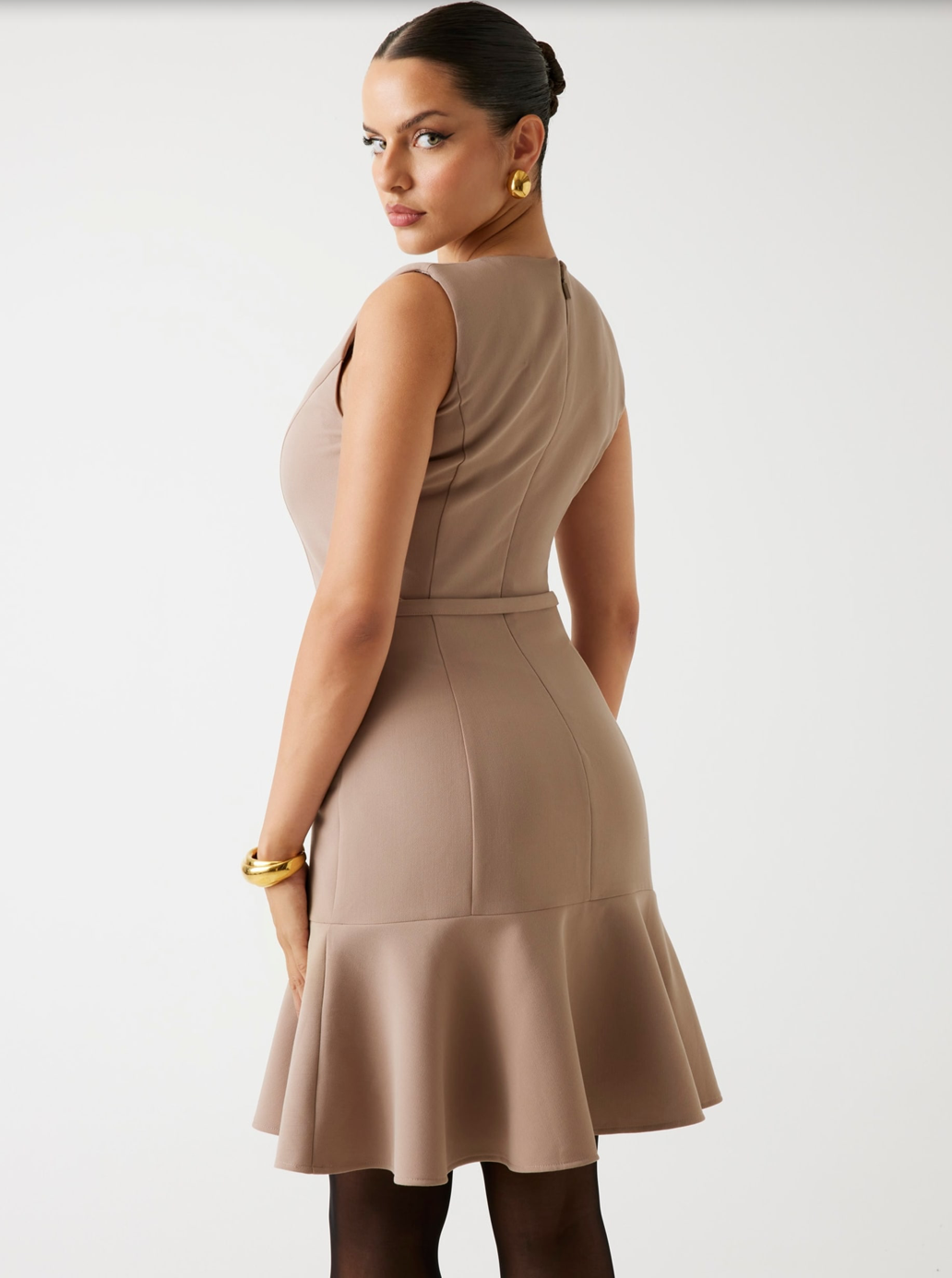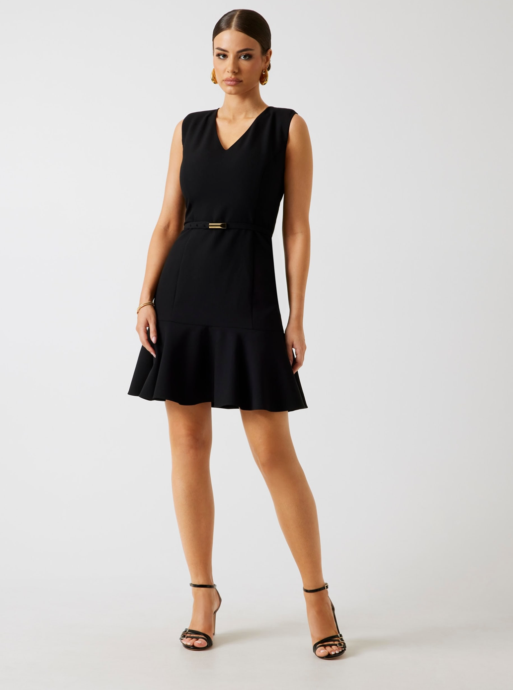 - Silhouette fit and flare con orlo a balze.