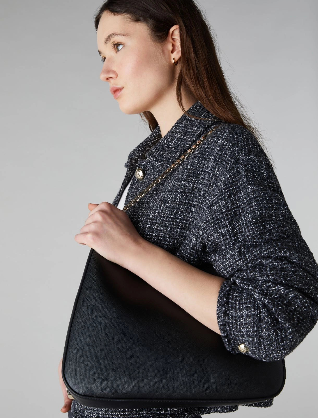 La risposta funzionale a una vita dai mille impegni. Con la tracolla coordinata e il manico in catena metallica, le possibilità di styling sono infinite.